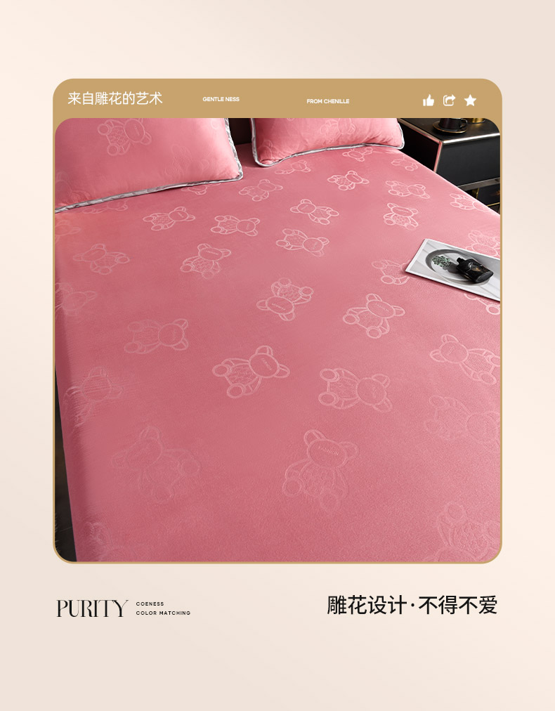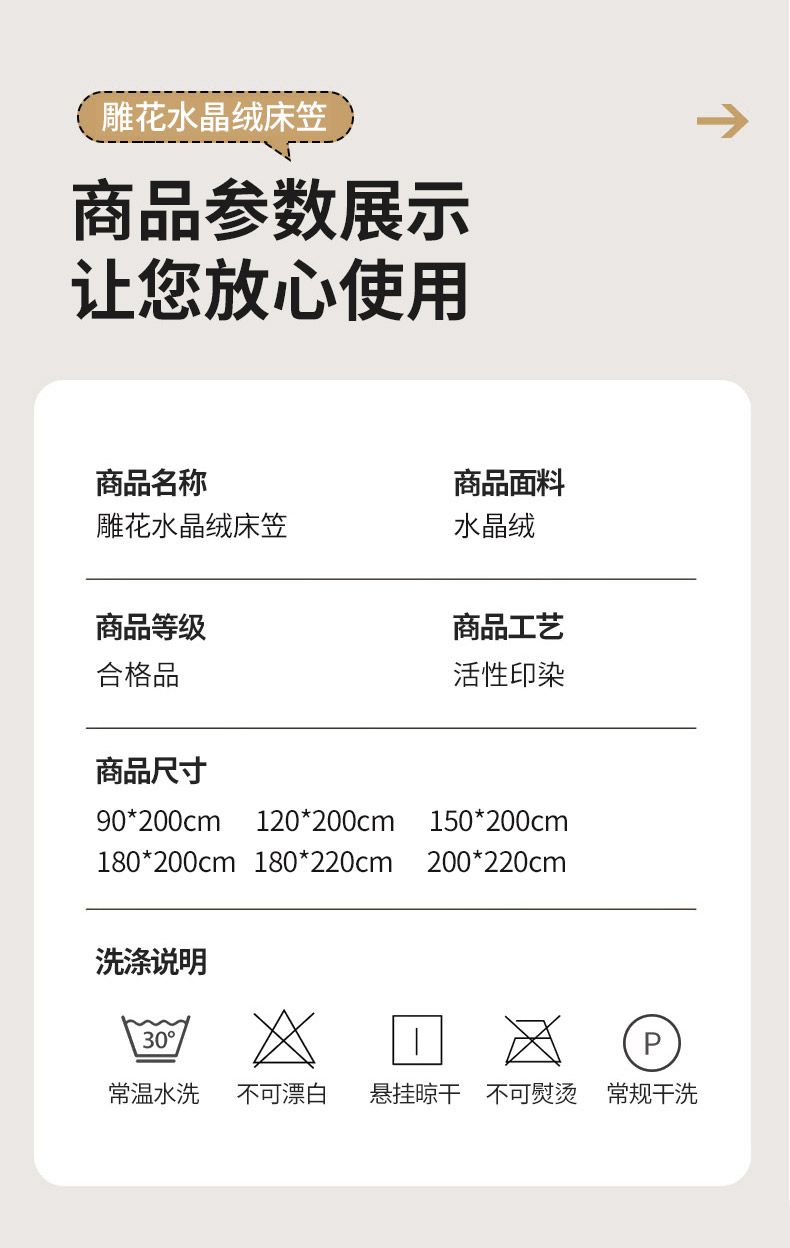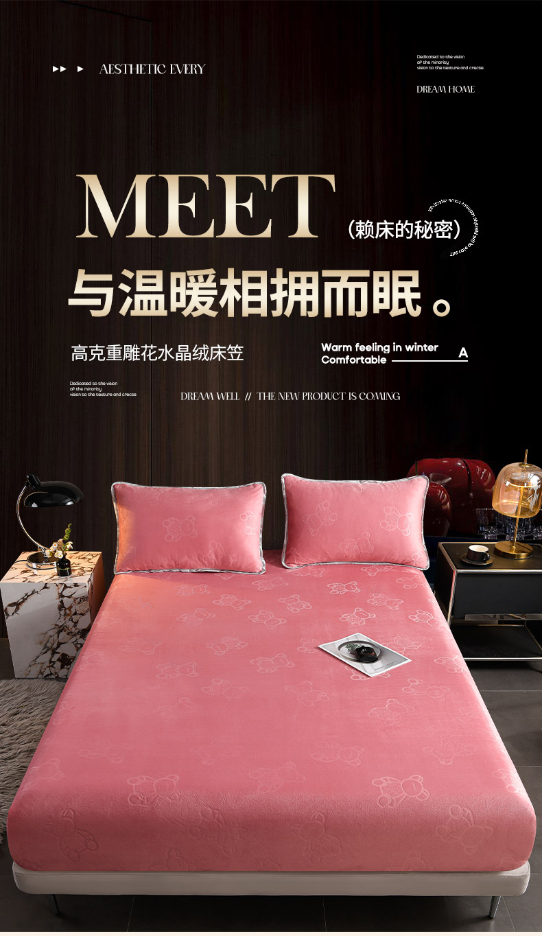 商品名称:(总)推推家纺 2025新款高克重雕花水晶绒压花床笠外贸