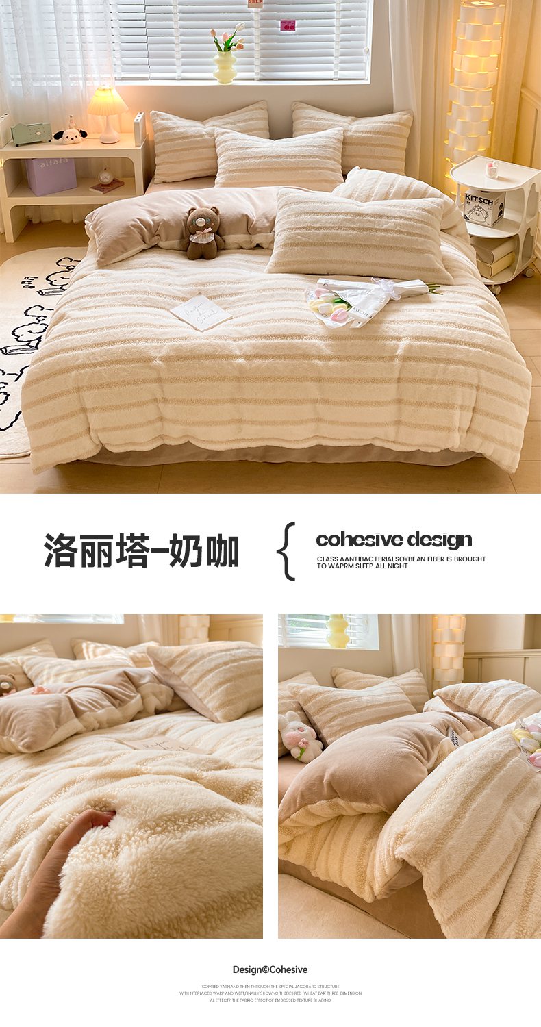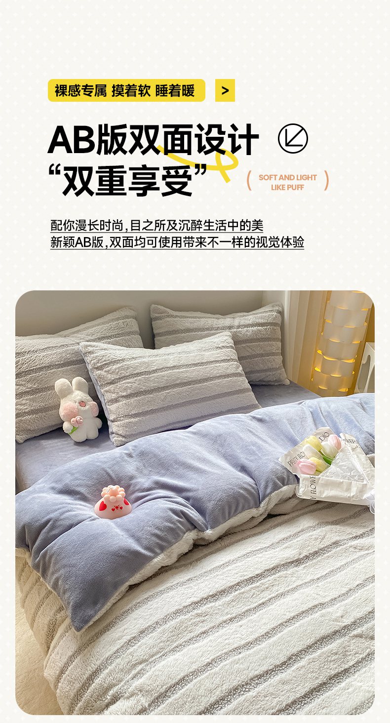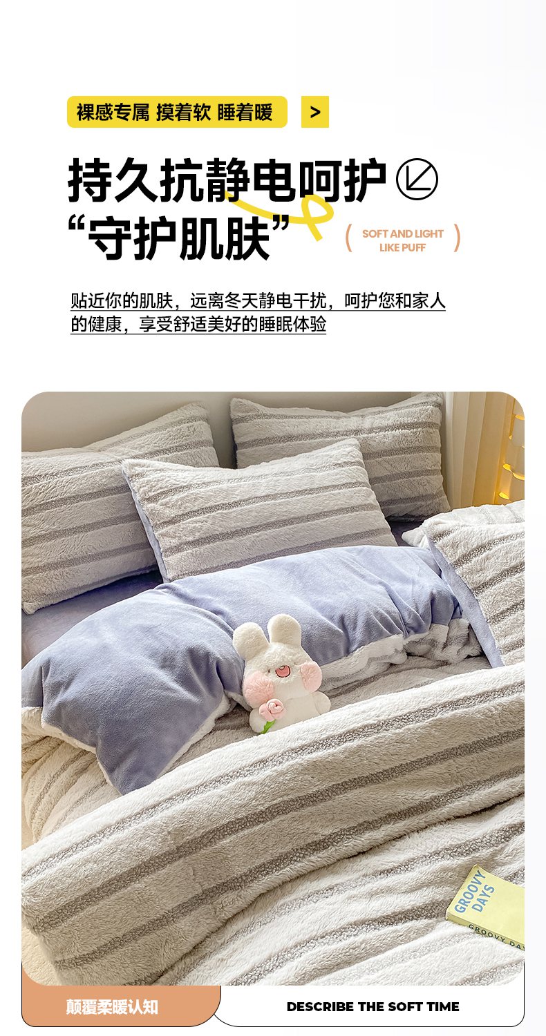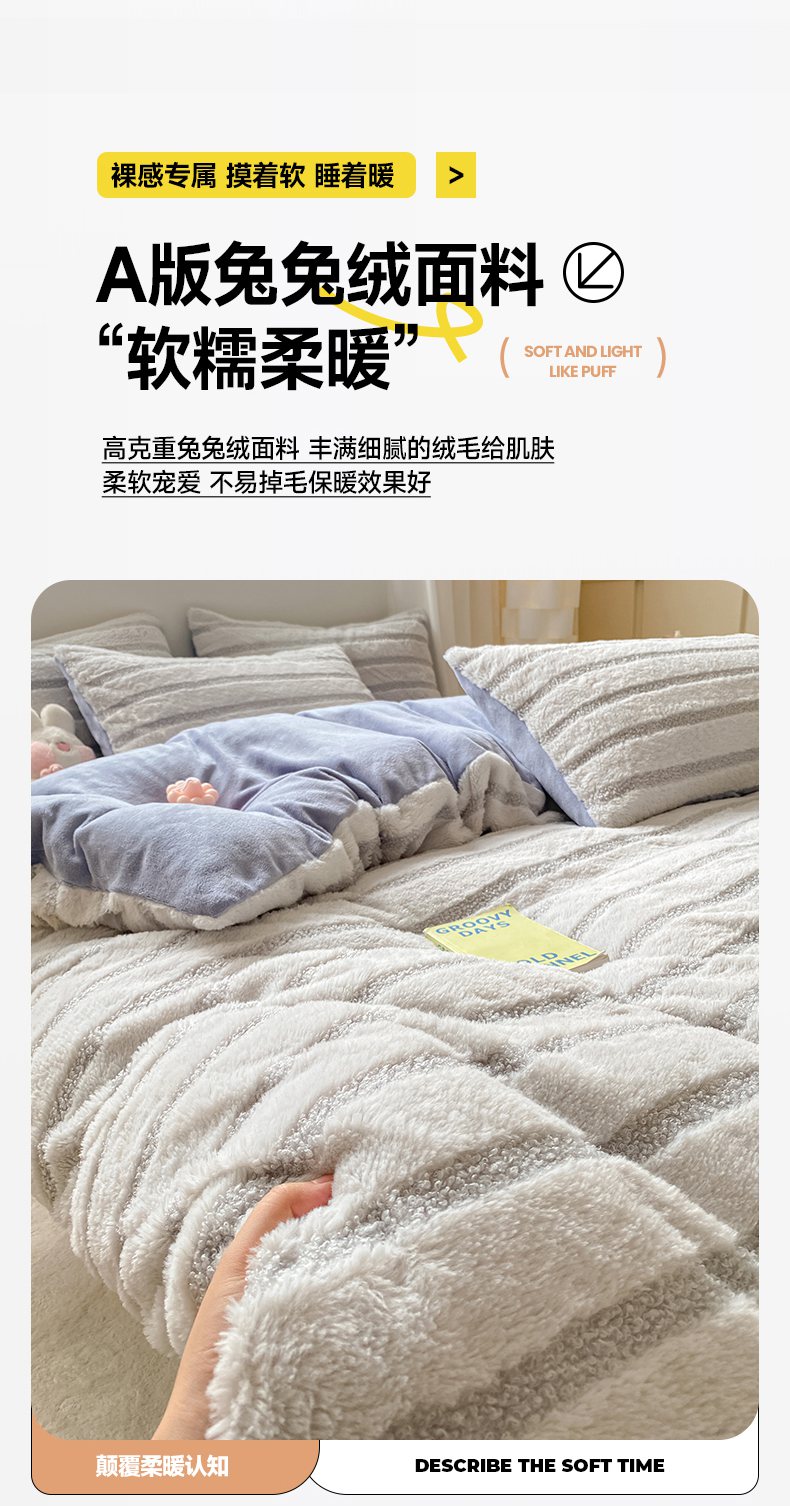 商品名称:摩妮卡 2025新款加厚兔兔绒牛奶绒四件套-洛丽塔系列 洛丽塔-蓝灰