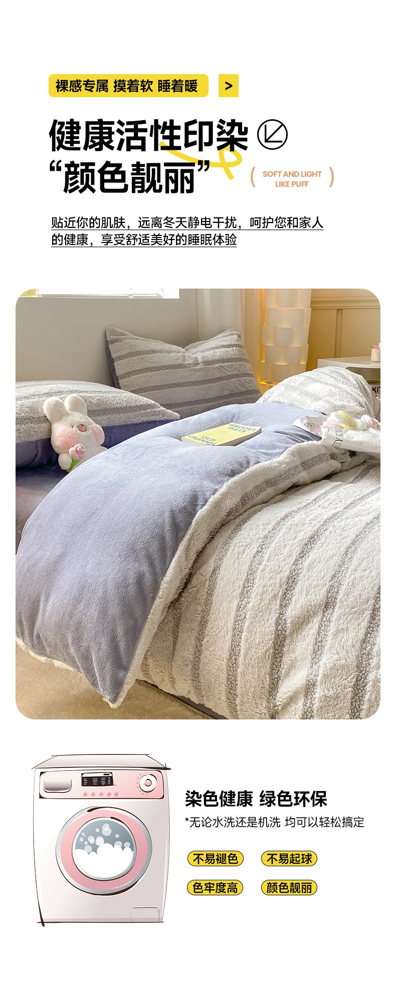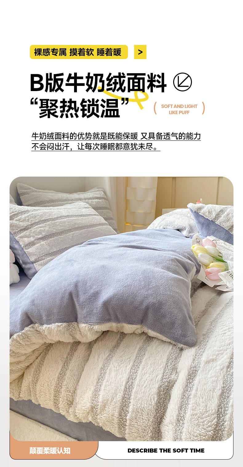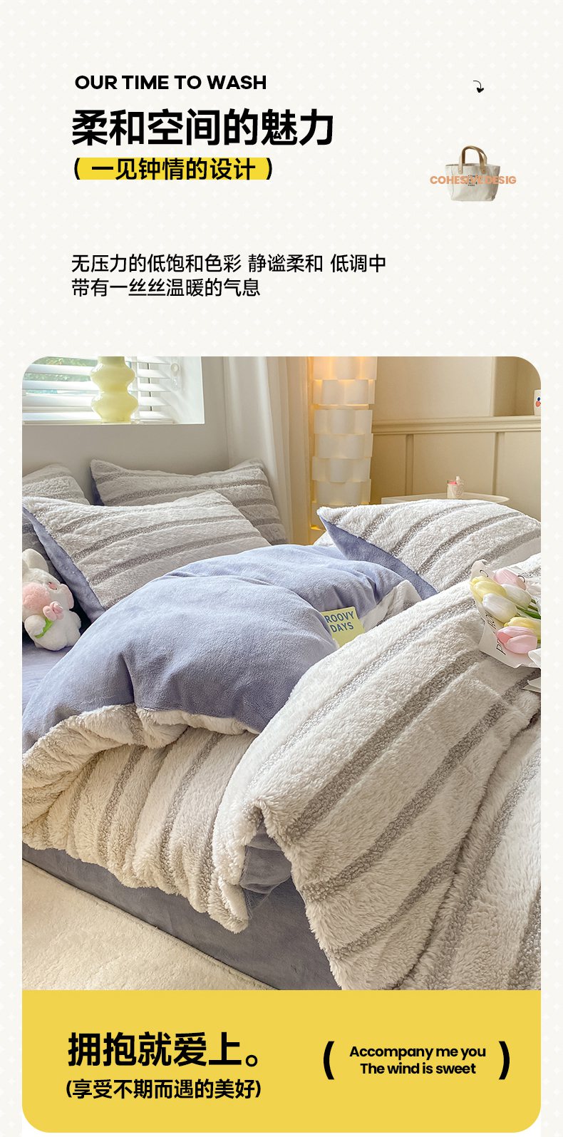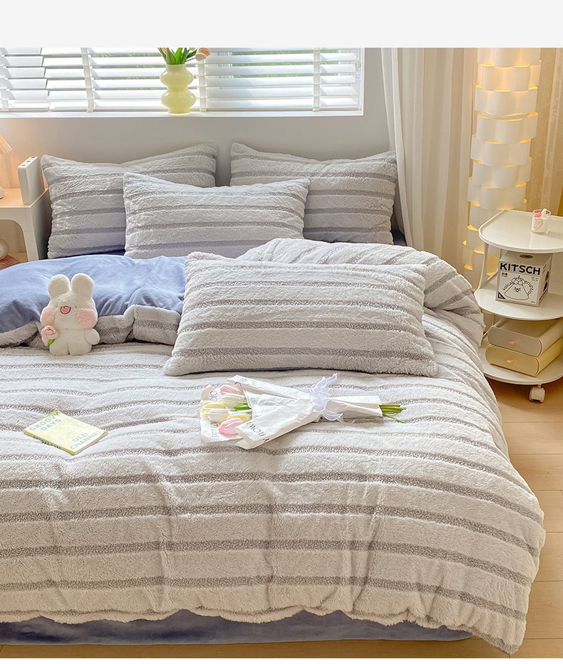 商品名称:摩妮卡 2025新款加厚兔兔绒牛奶绒四件套-洛丽塔系列 洛丽塔-蓝灰