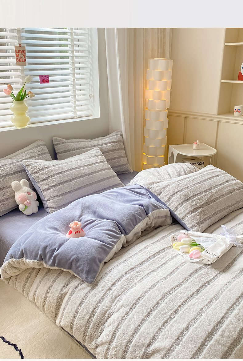 摩妮卡 2025新款加厚兔兔绒牛奶绒四件套-洛丽塔系列 洛丽塔-蓝灰
