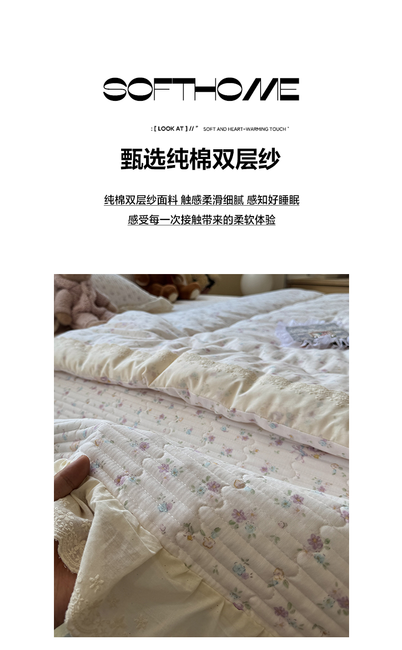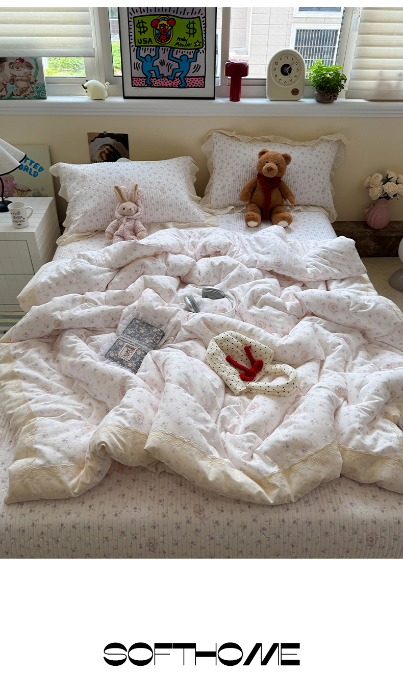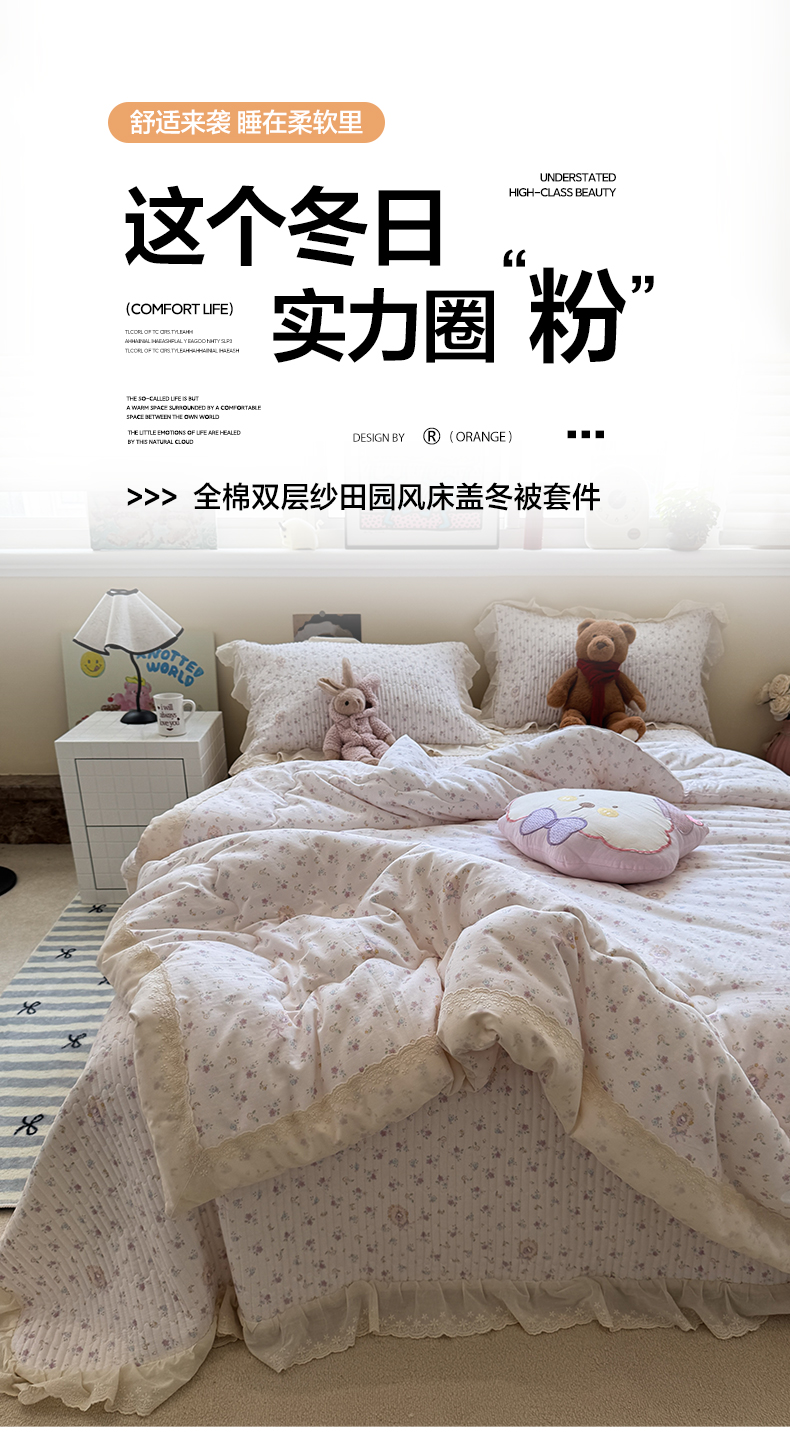 当前位置: 91家纺网 > 商品网购 > 床品套件 > 四件套 > 全棉普通四件套 > 一加一 2025新款田园风全棉纯棉双层纱床盖冬被被子被芯四件套 兰絮-粉