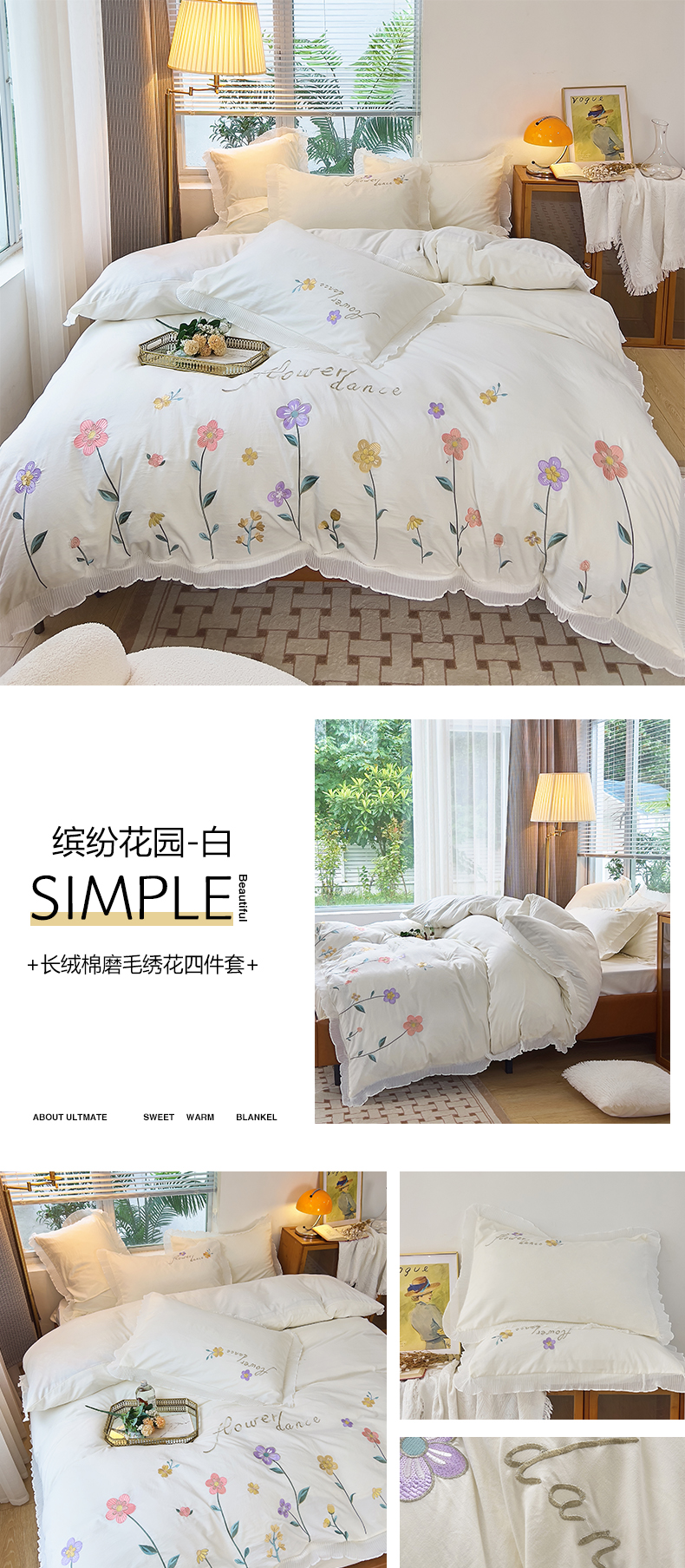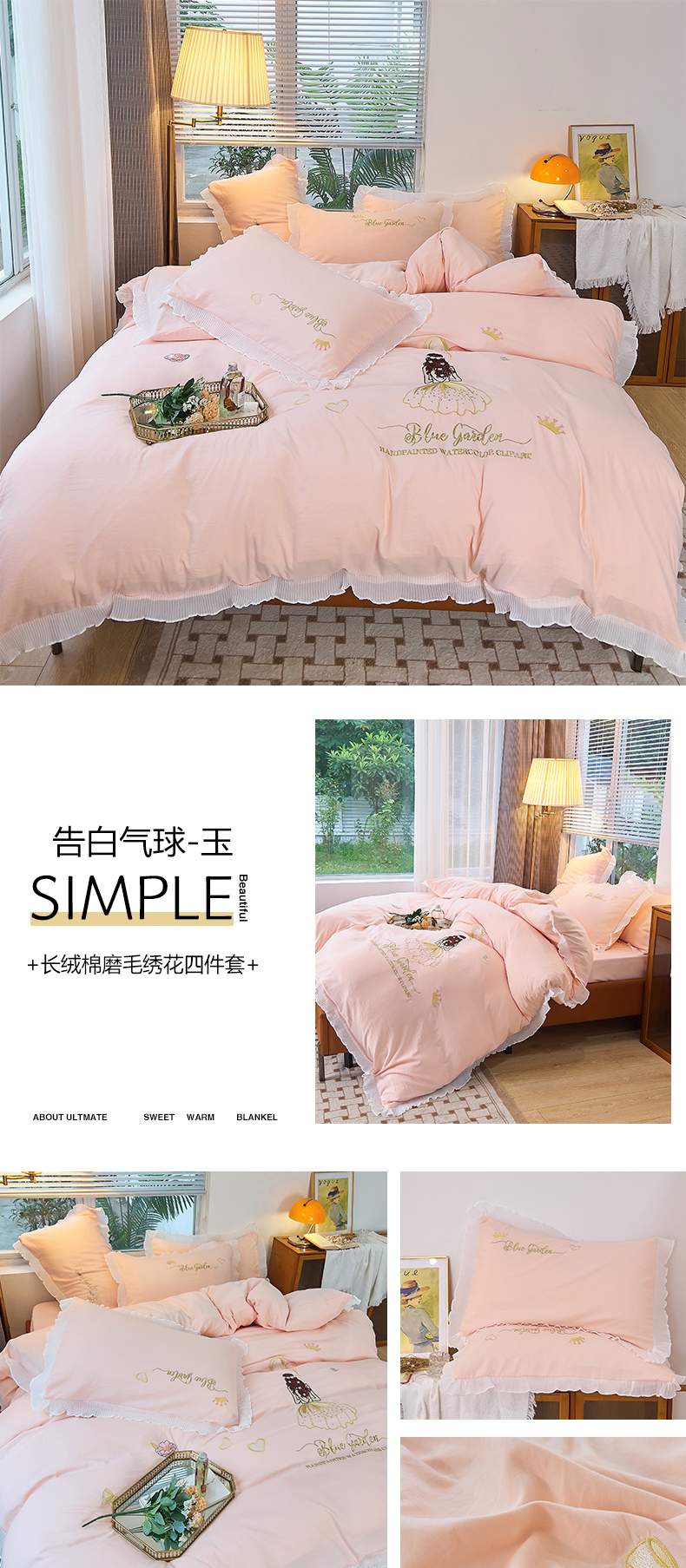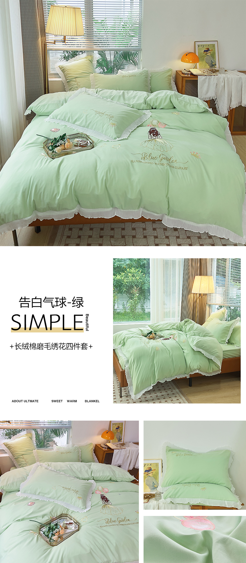 (总)青泽家纺 2025新款母婴级ins风韩版绣花荷叶边水洗棉磨毛四件套,缤纷花园绿,安娜公主蓝,安娜公主绿,安娜公主玉,缤纷花园白,手捧花白色,手捧花蓝,手捧花绿,手捧花玉色,缤纷花园玉色,飞羽-高级灰,蝶舞-白,蝶舞-蓝,蝶舞-玉,花恋 白,花恋-蓝,花恋-绿,花恋-玉