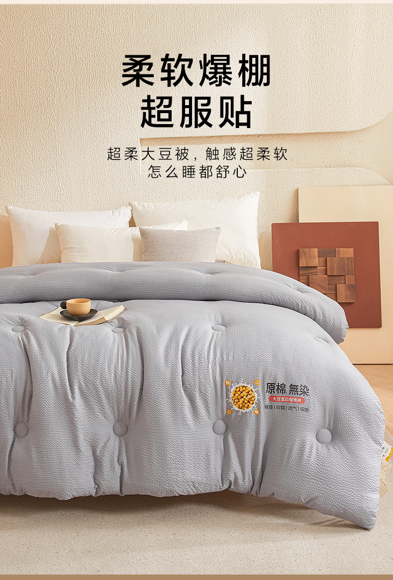 • 91家纺网 家纺一手货源 找家纺 欢乐季2025新款7A抗菌A类提花皱皱纱大豆纤维被四季被+被芯 高级灰