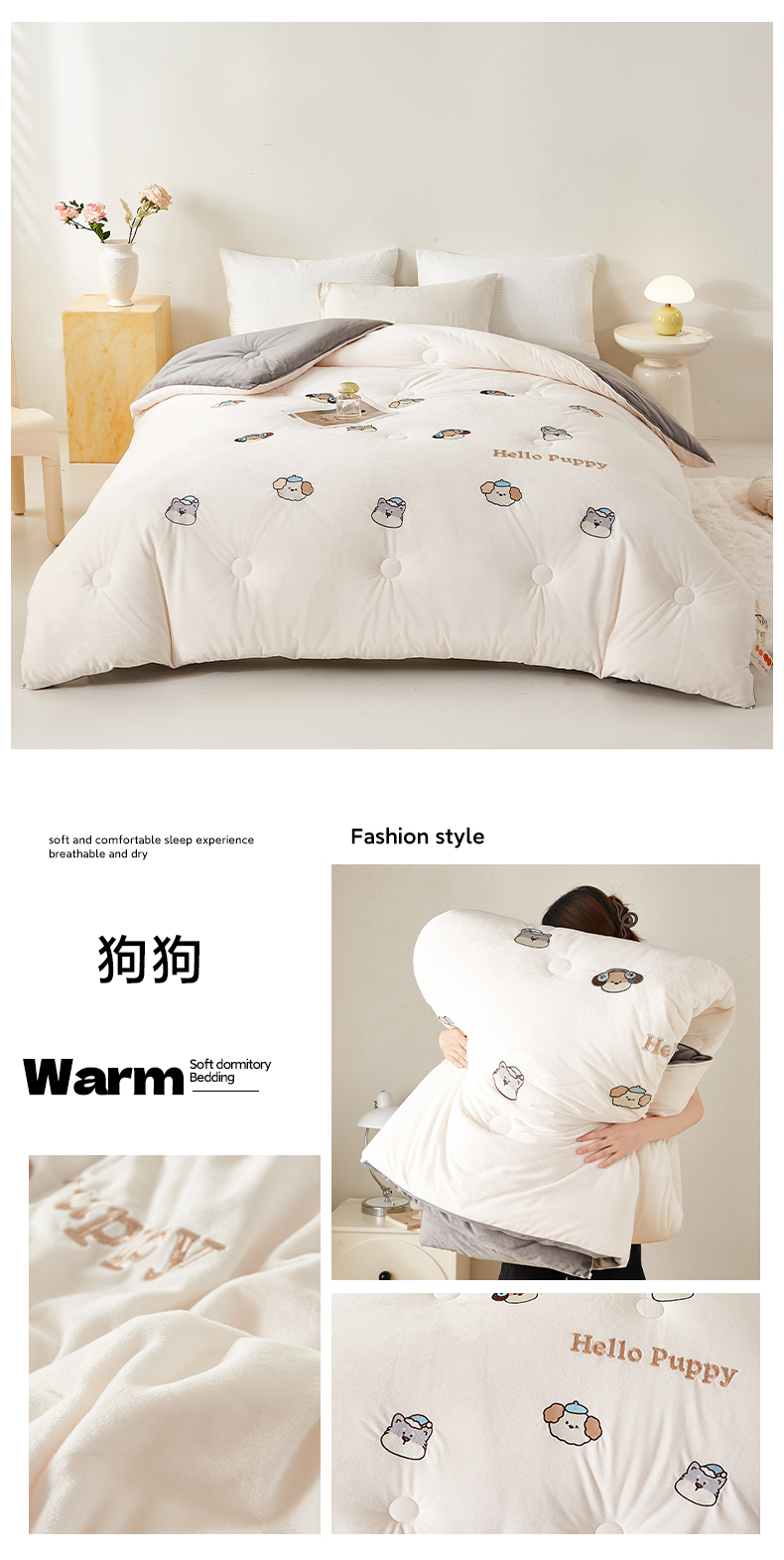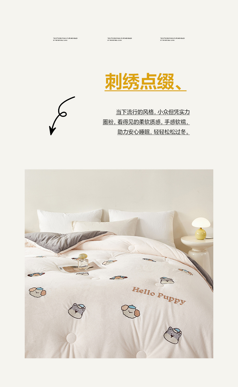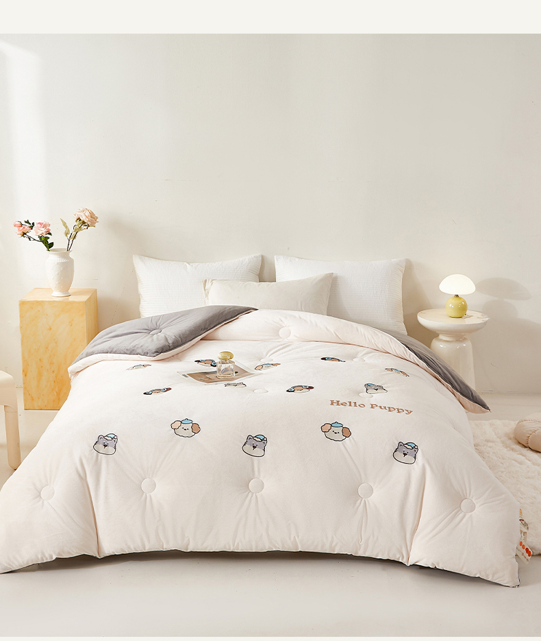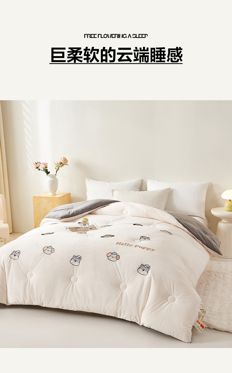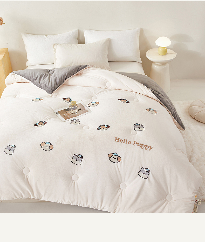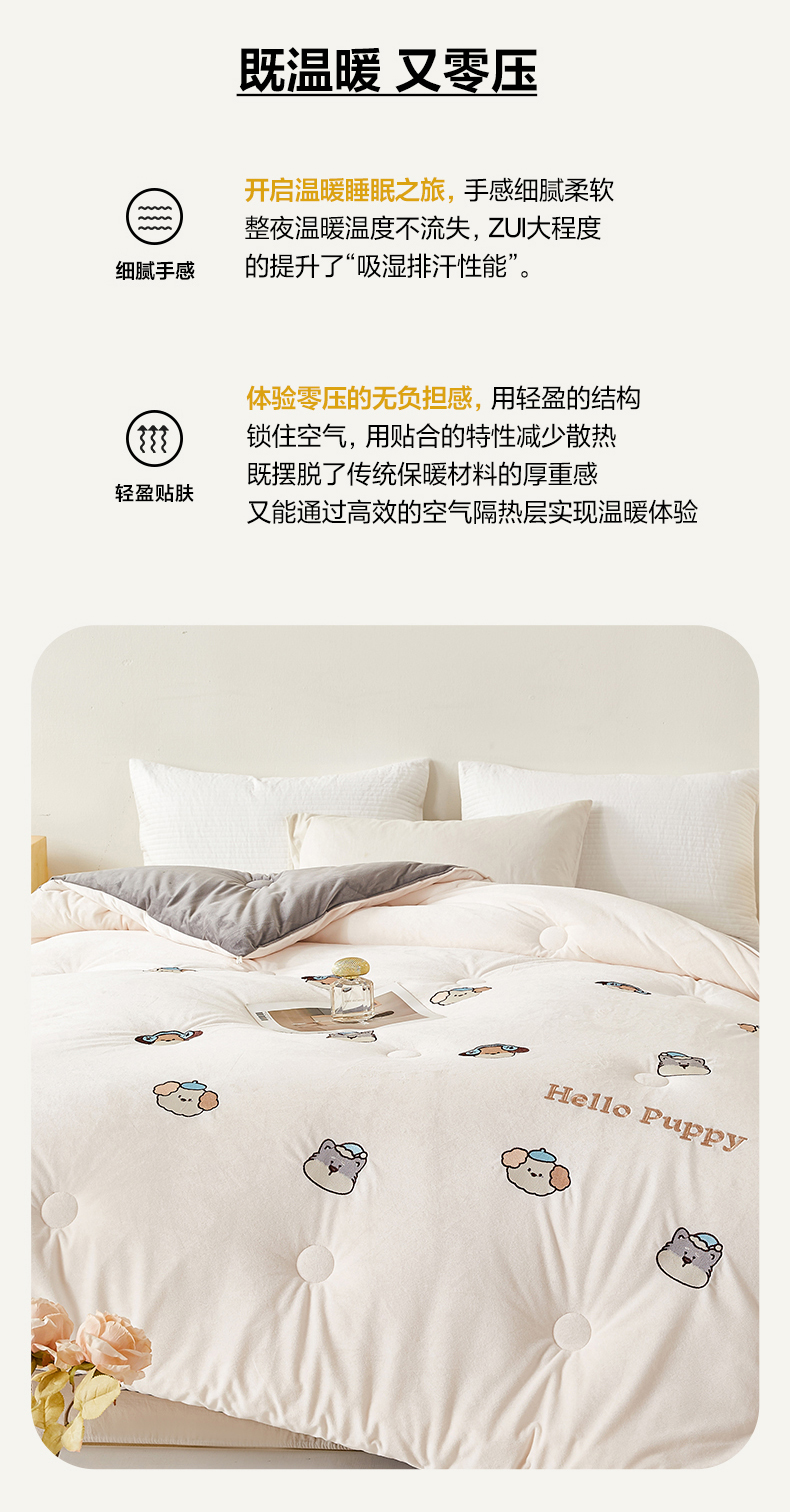 • 91家纺网 家纺一手货源 找家纺 欢乐季2025新款刺绣零压绒恒温大豆被四季被+被芯(可以开发票—专票8个点) 狗狗
