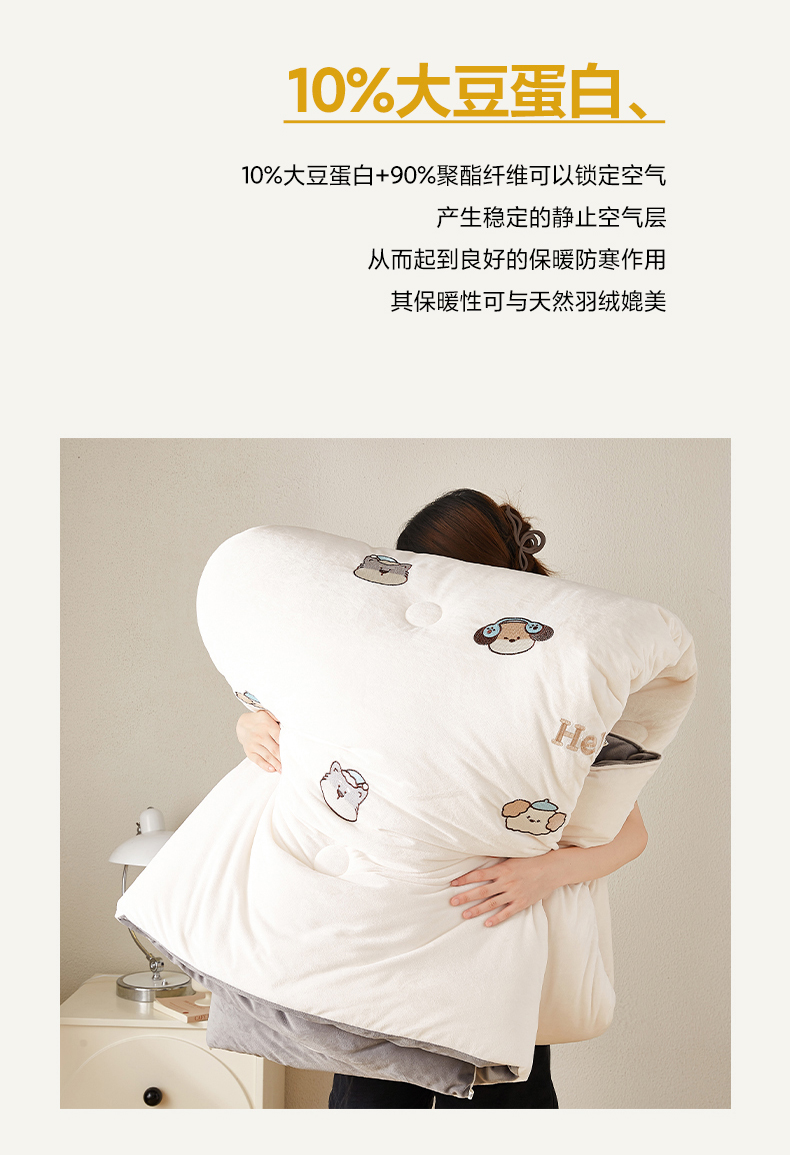 (总)欢乐季2025新款刺绣零压绒恒温大豆被四季被+被芯(可以开发票—专票8个点),狗狗,花朵,猫咪,南瓜,小熊,郁金香