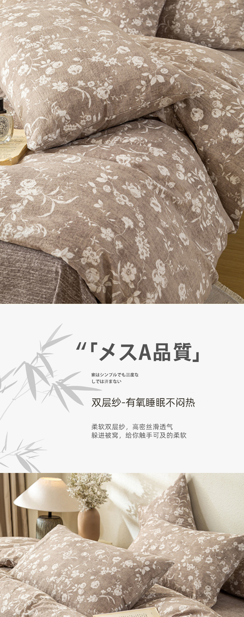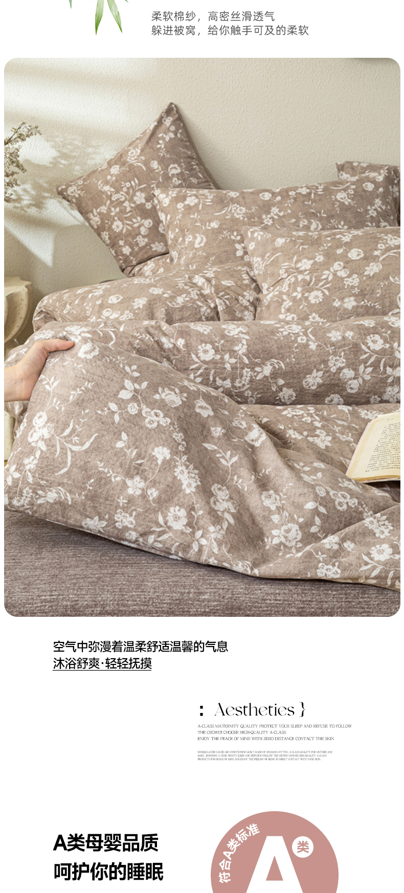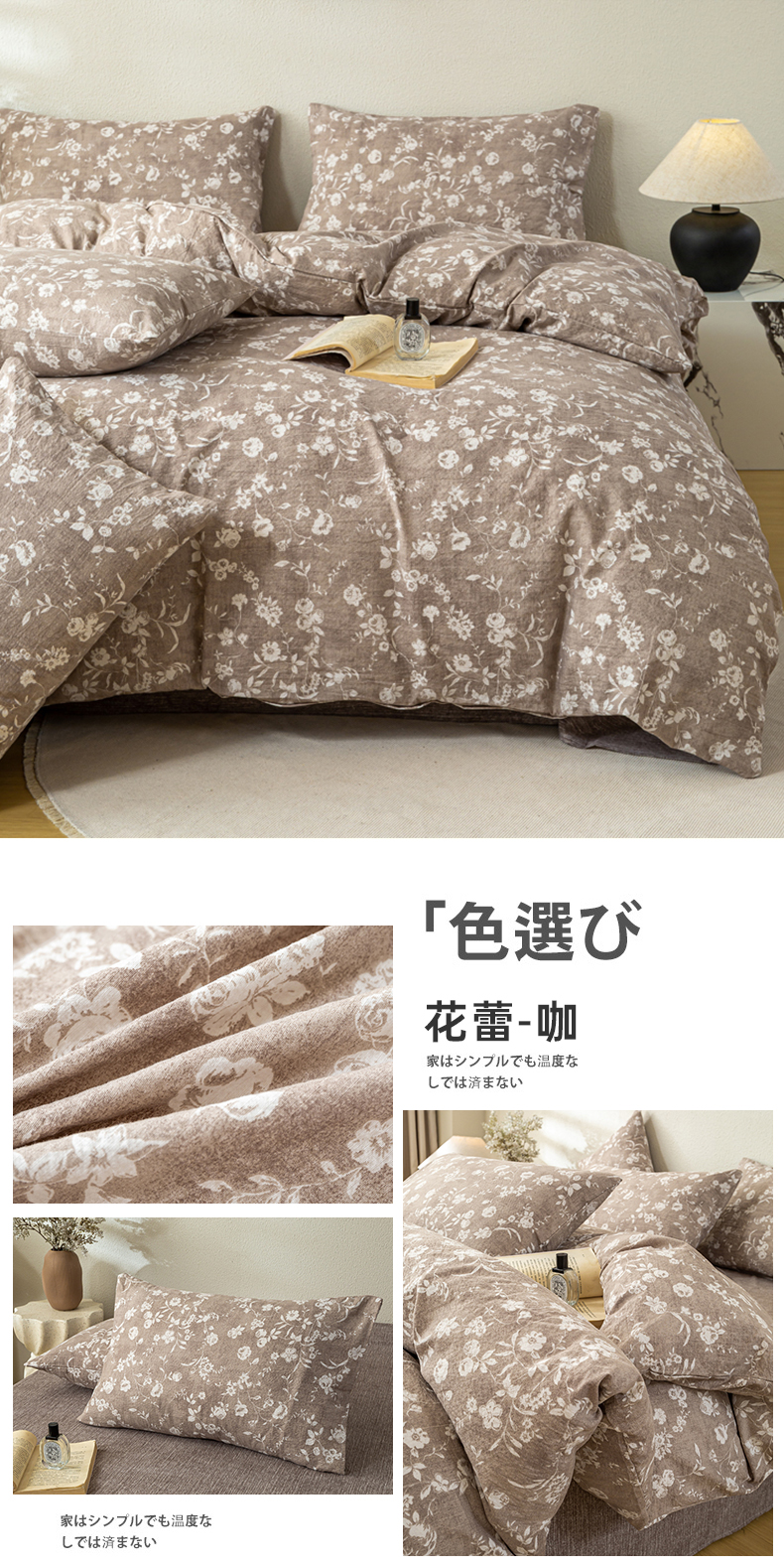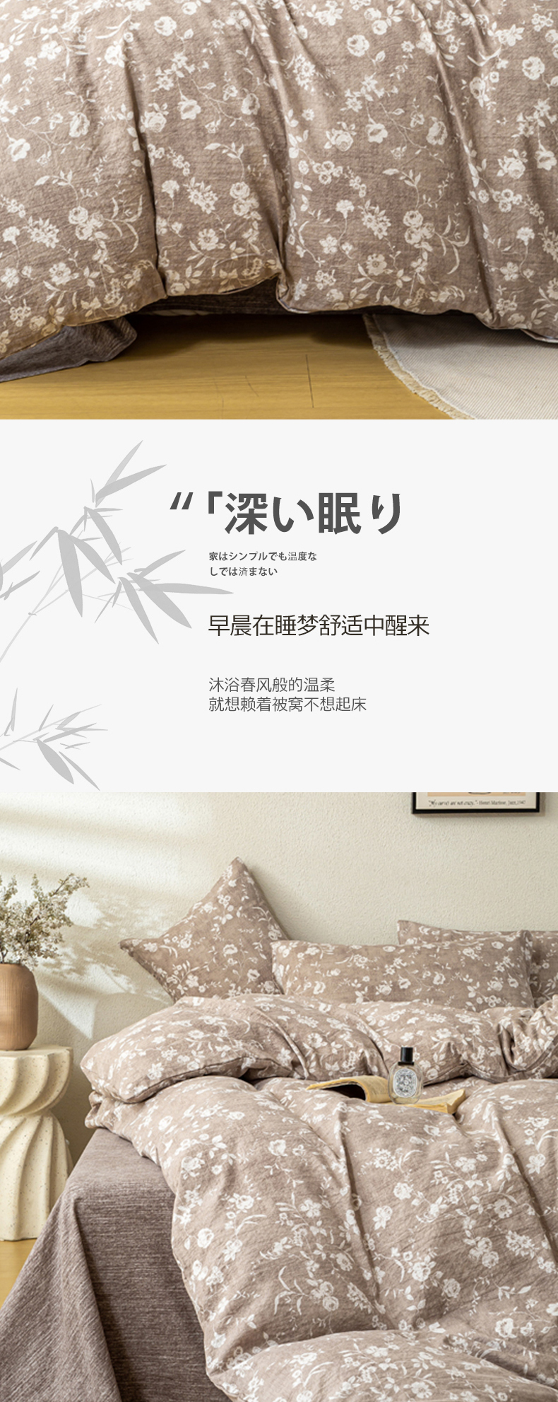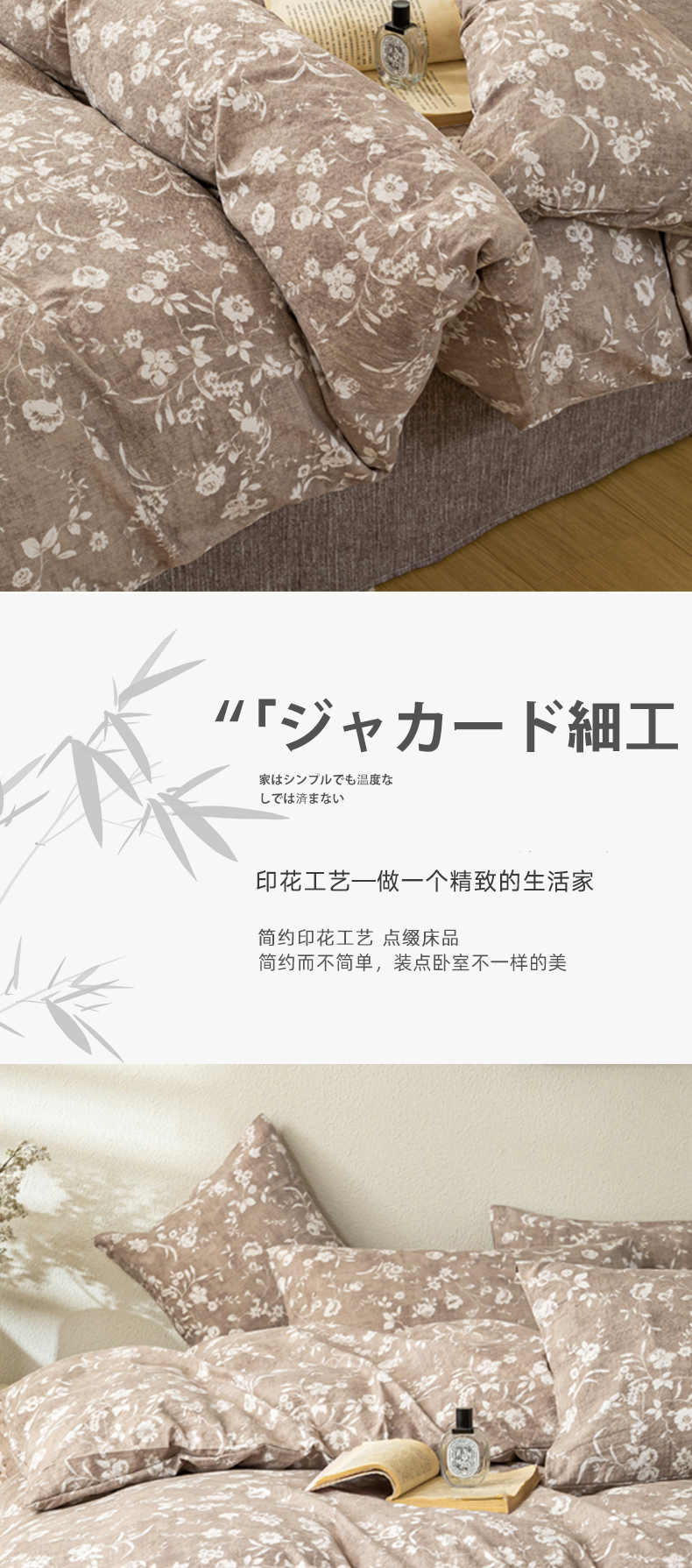 商品名称:漫仙阁家纺 2025新款加厚高克重原麻复古风印花四件套 花蕾-咖