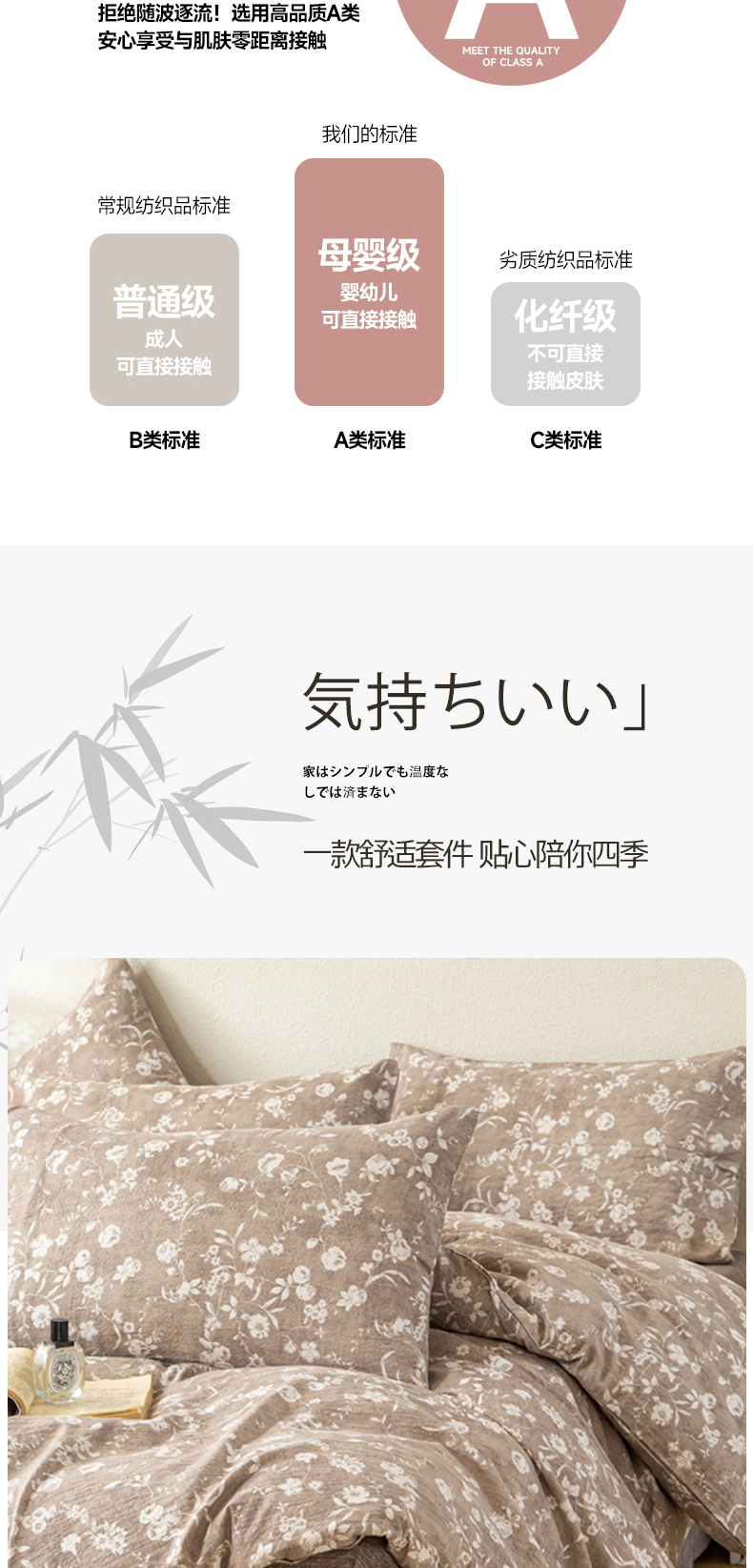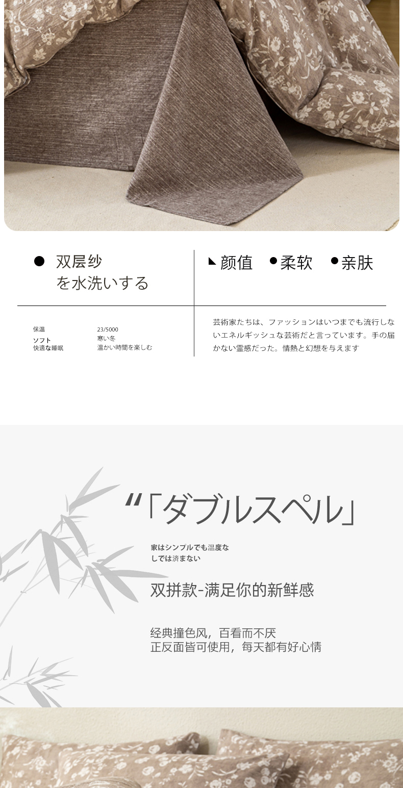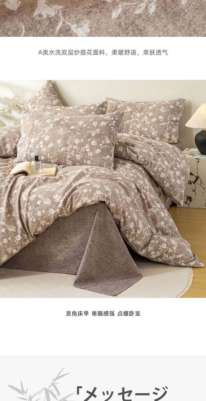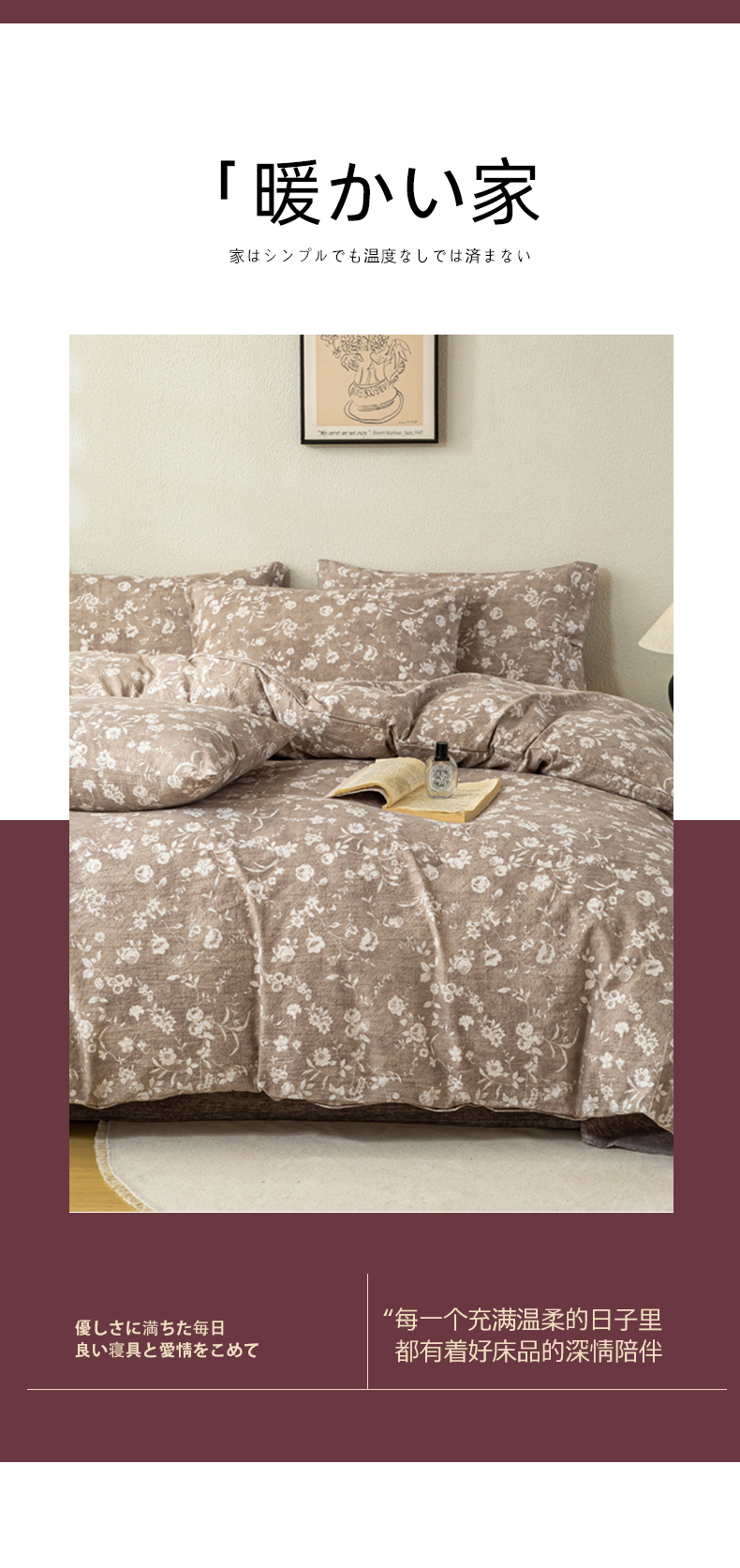 商品名称:漫仙阁家纺 2025新款加厚高克重原麻复古风印花四件套 花蕾-咖