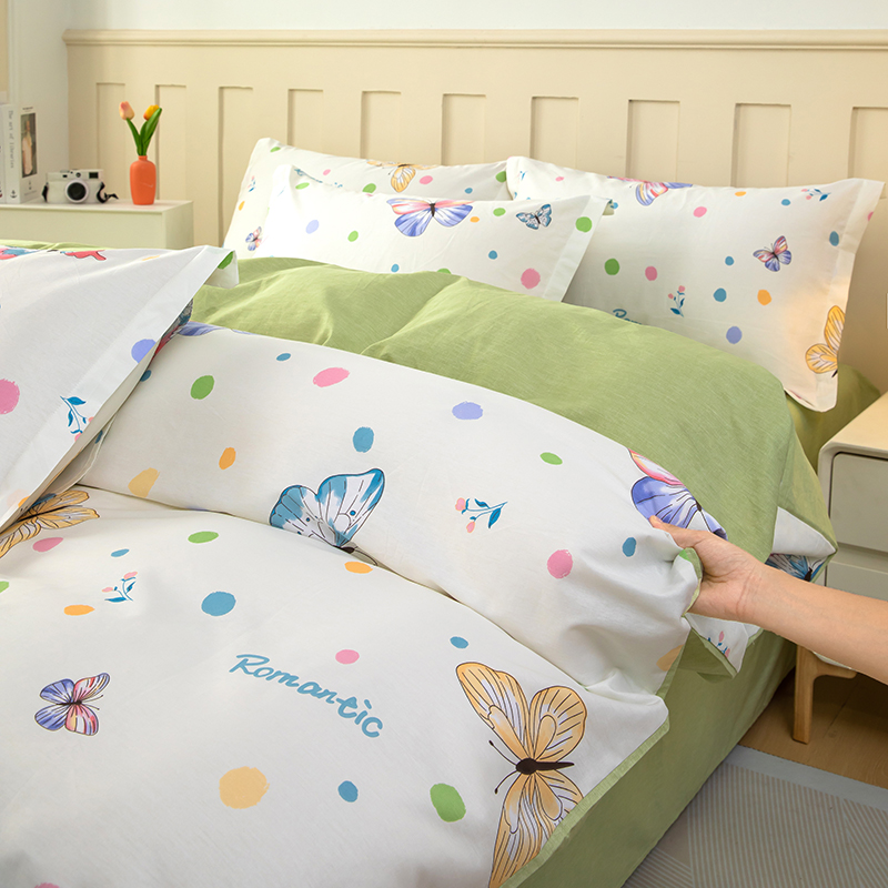 当前位置: 91家纺网 > 商品网购 > 床品套件 > 四件套 > 全棉普通四件套 > 新款12868全棉学生宿舍三件套卡通纯棉四件套 蝶舞-米黄