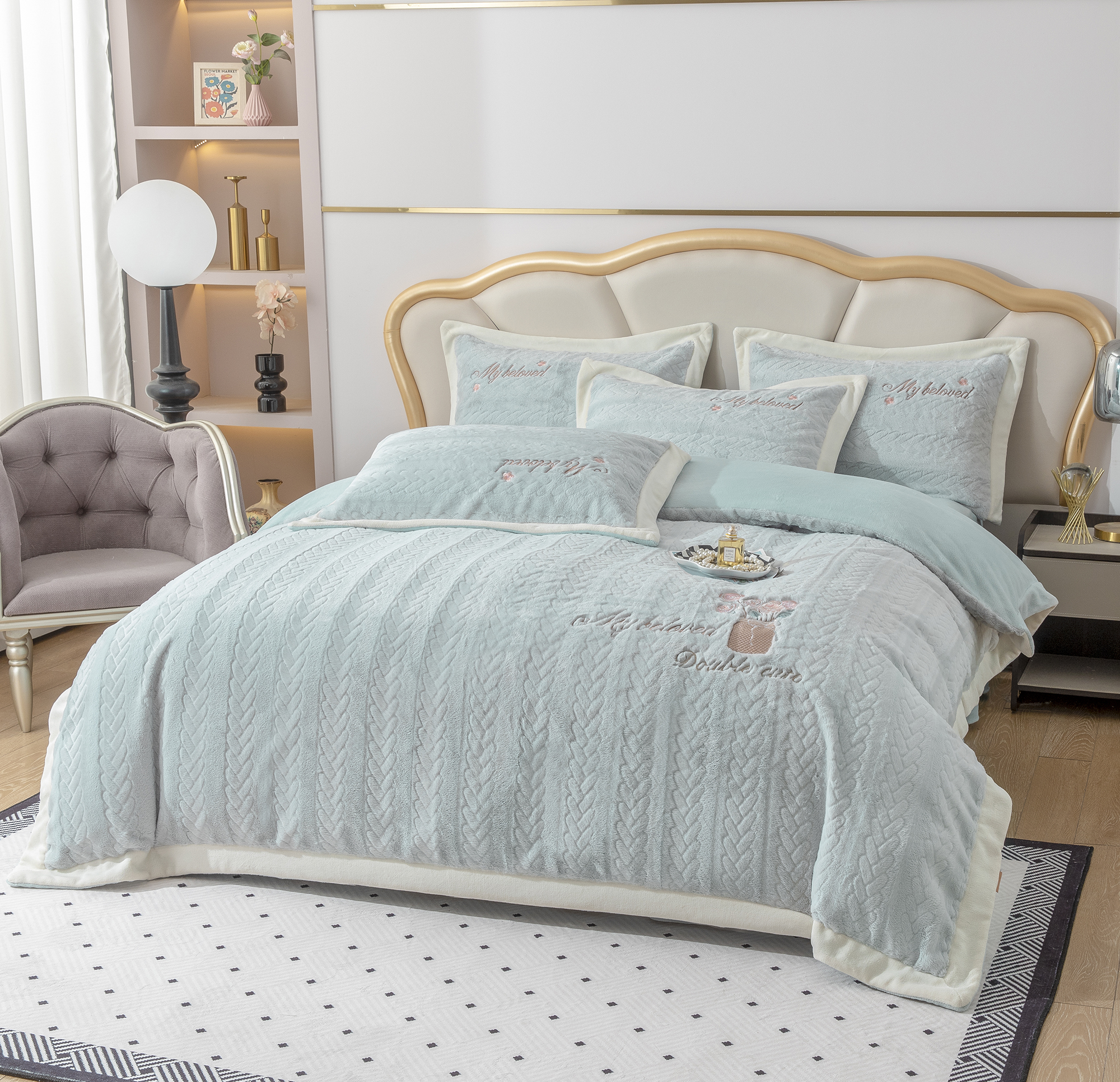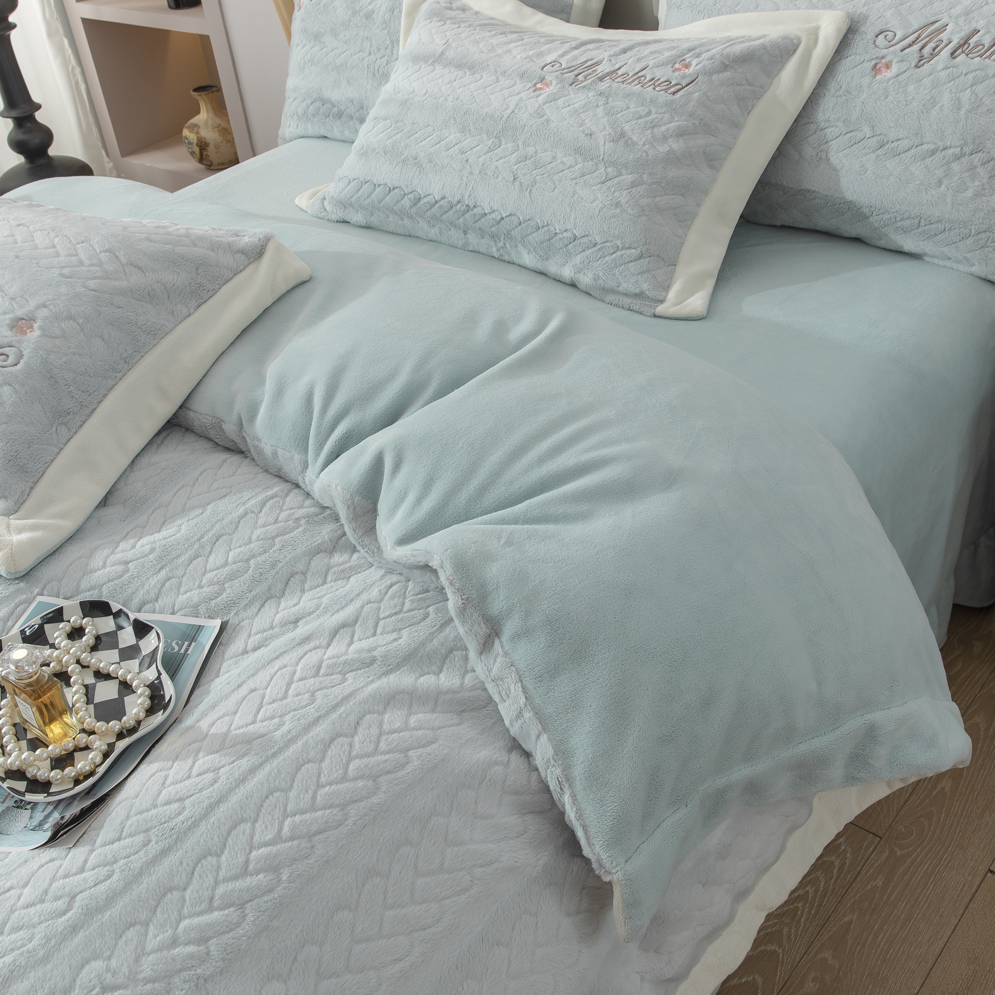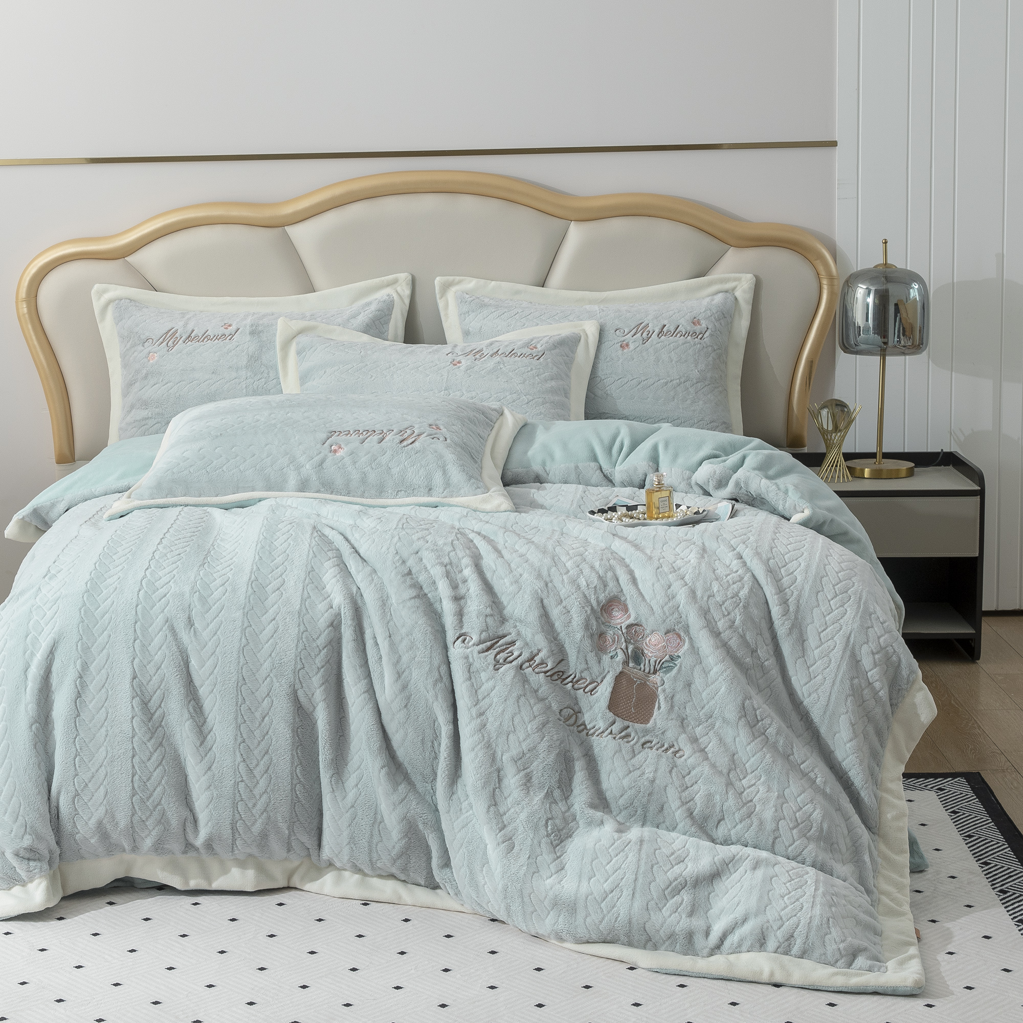 贝尔 2025新款纯色高克重牛奶绒刺绣四件套-羽魅 羽魅-浅绿,羽魅-浅绿