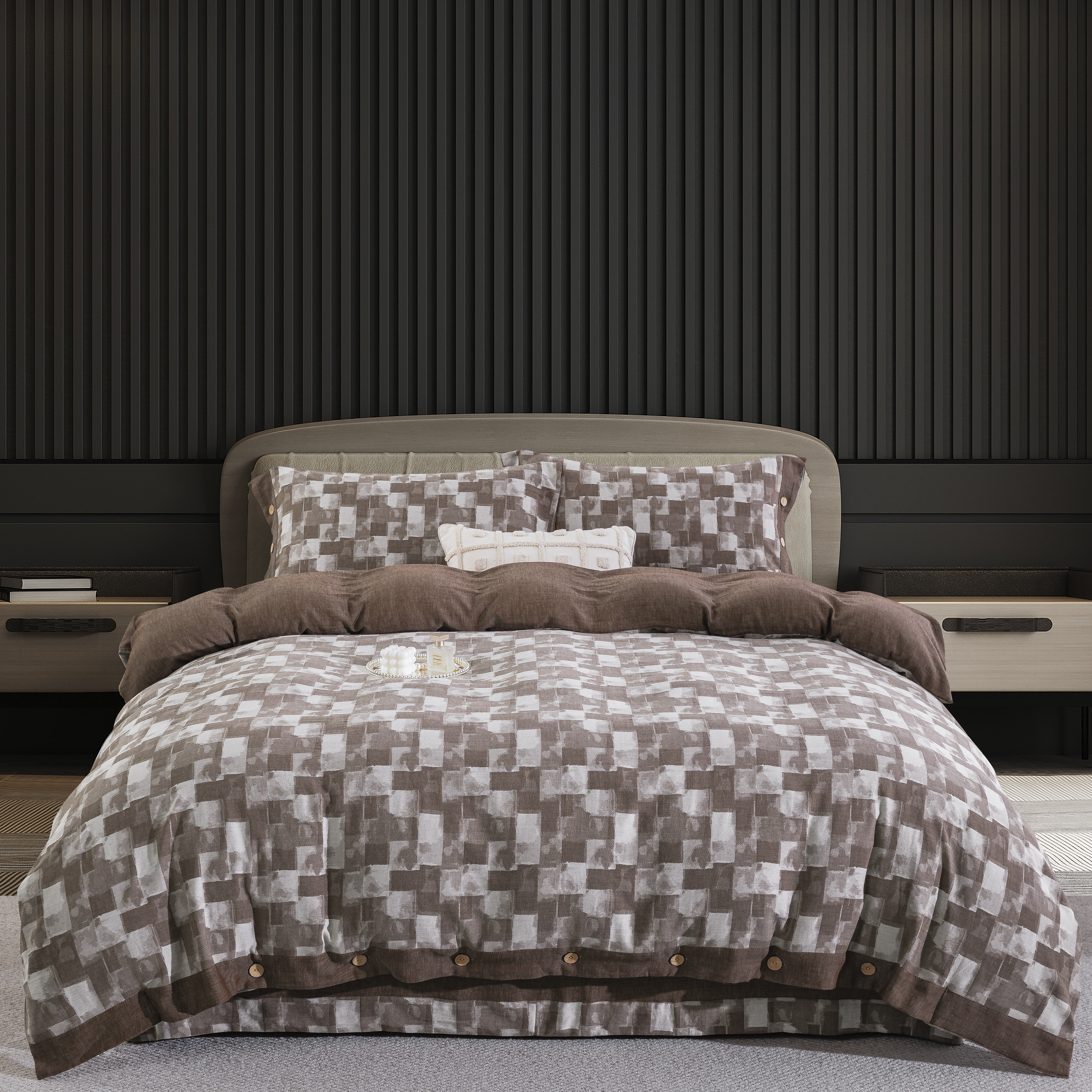 鲁爱家纺供货 2025新款全棉色织提花四件套 都市万象-咖