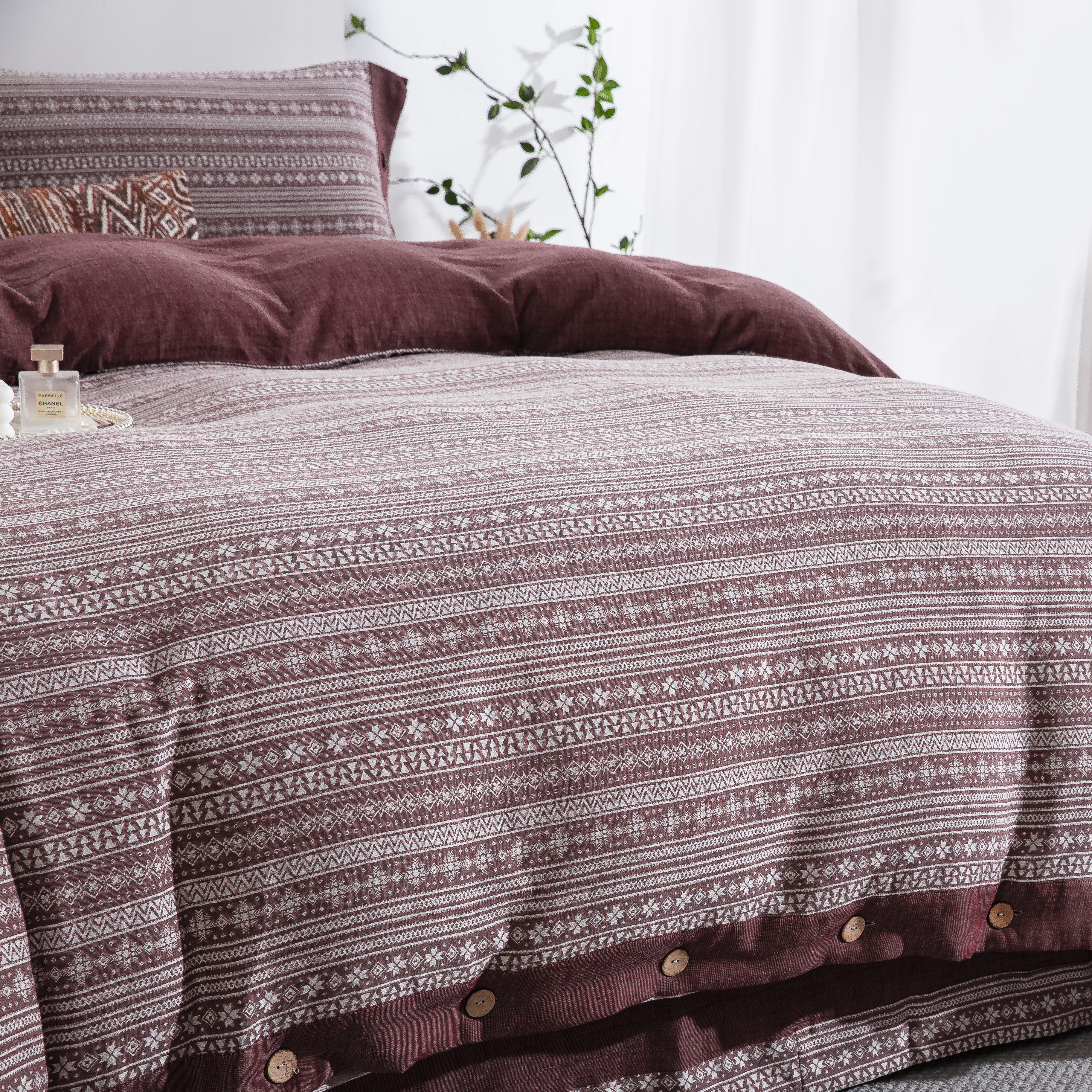 鲁爱家纺供货 2025新款全棉色织提花四件套 布拉格-豆沙