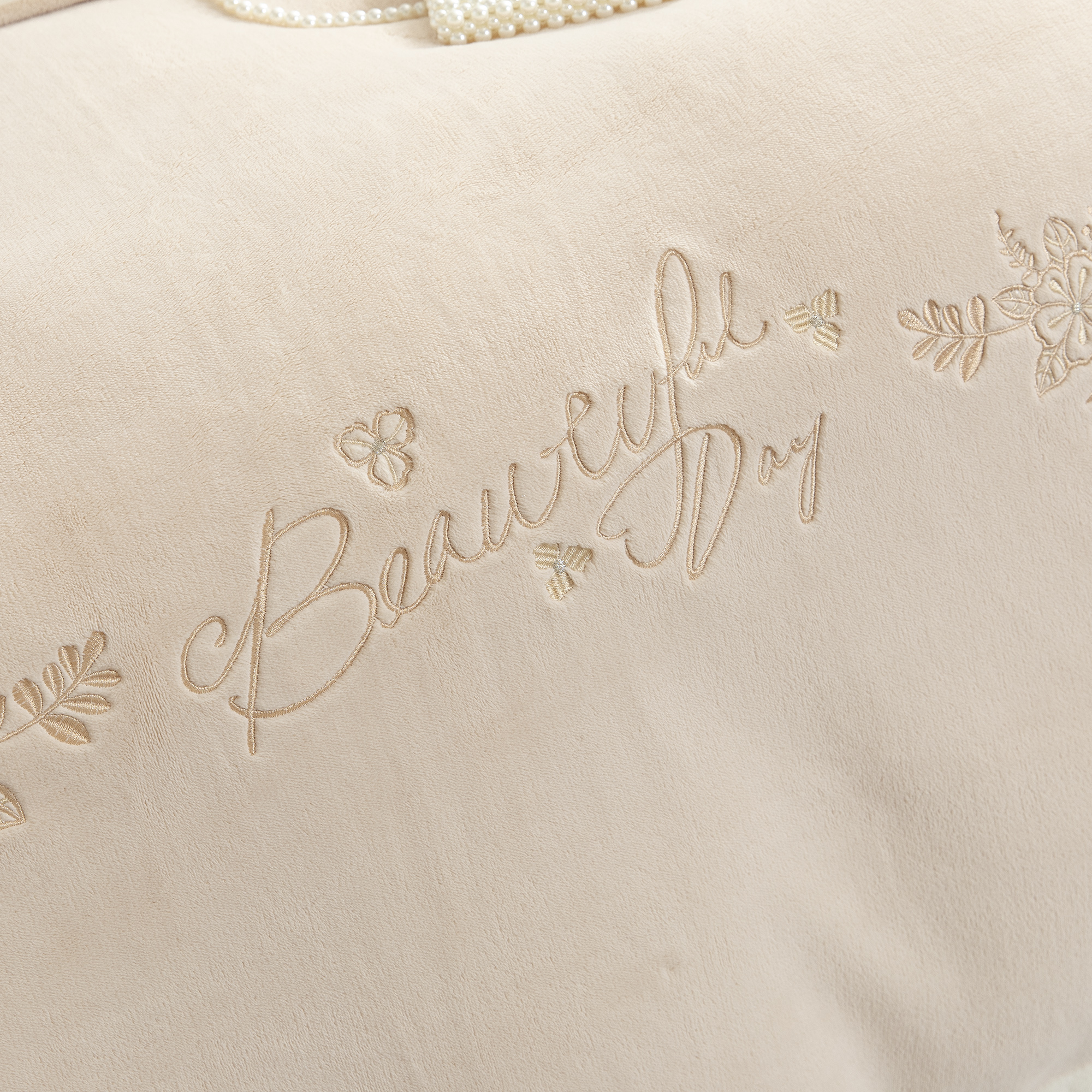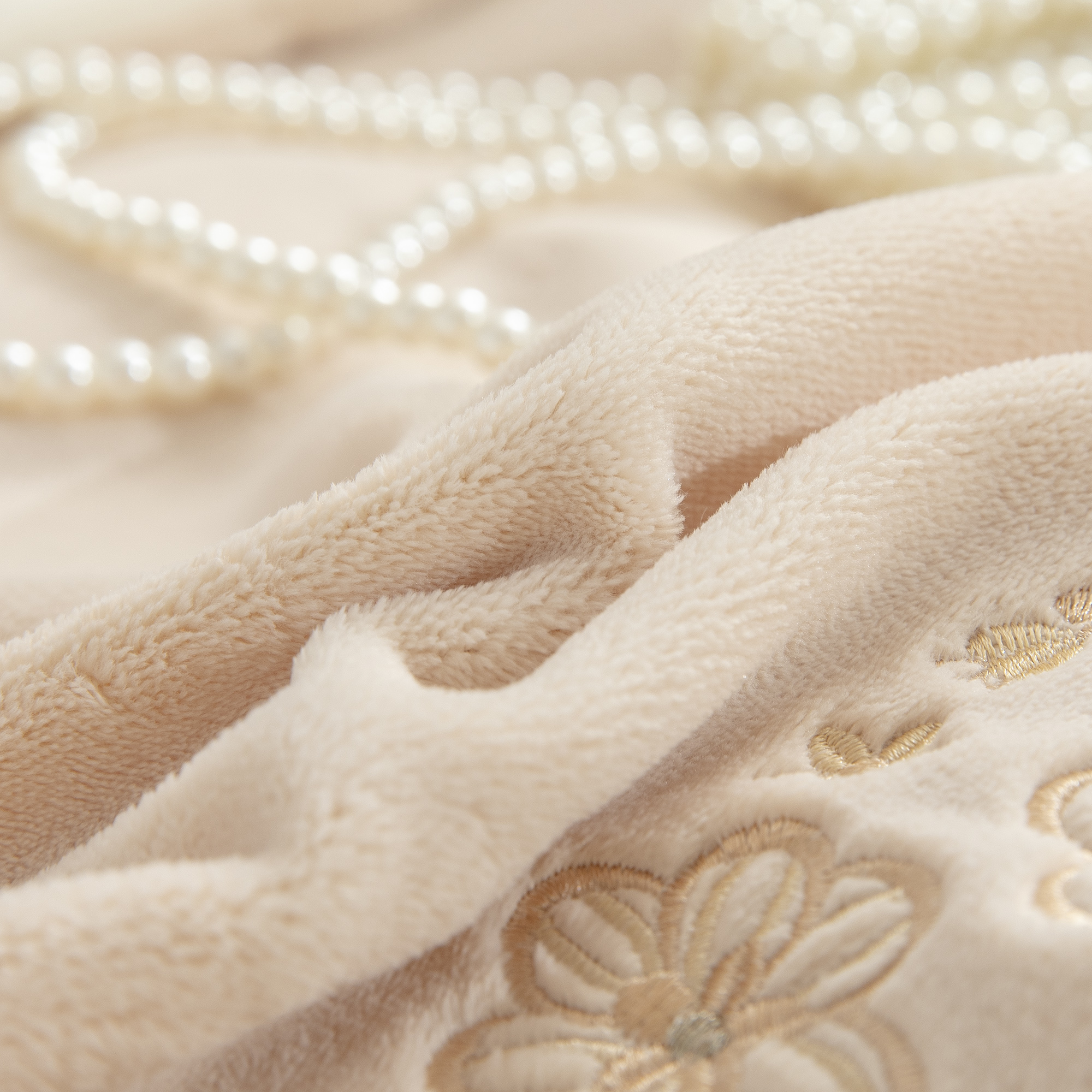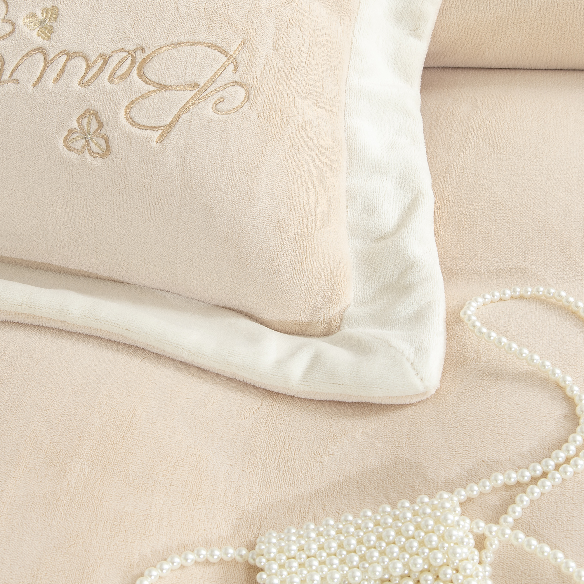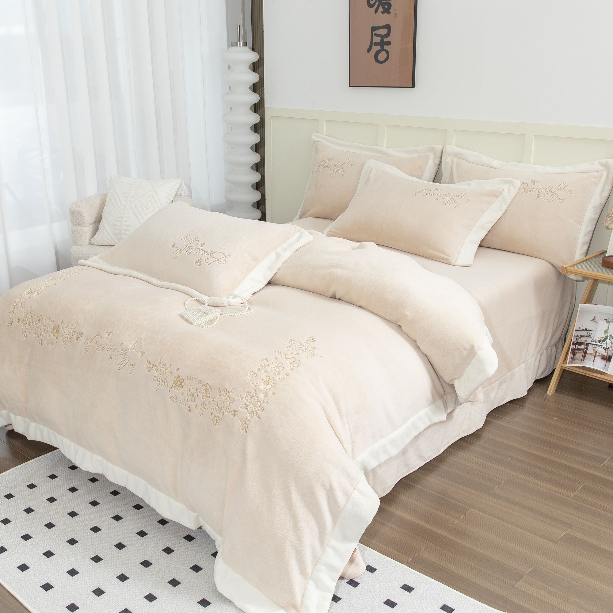 贝尔 2025新款纯色高克重牛奶绒刺绣四件套-羽魅 羽魅-豆沙,羽魅-豆沙