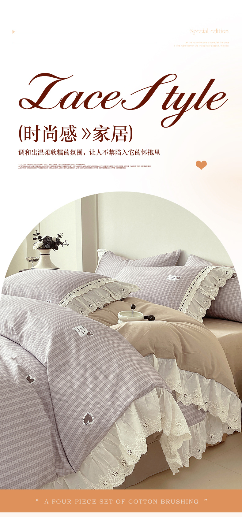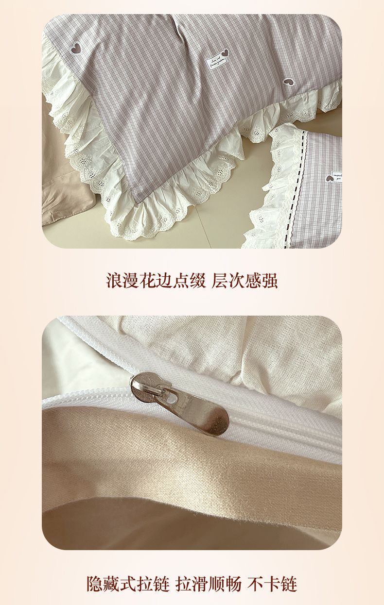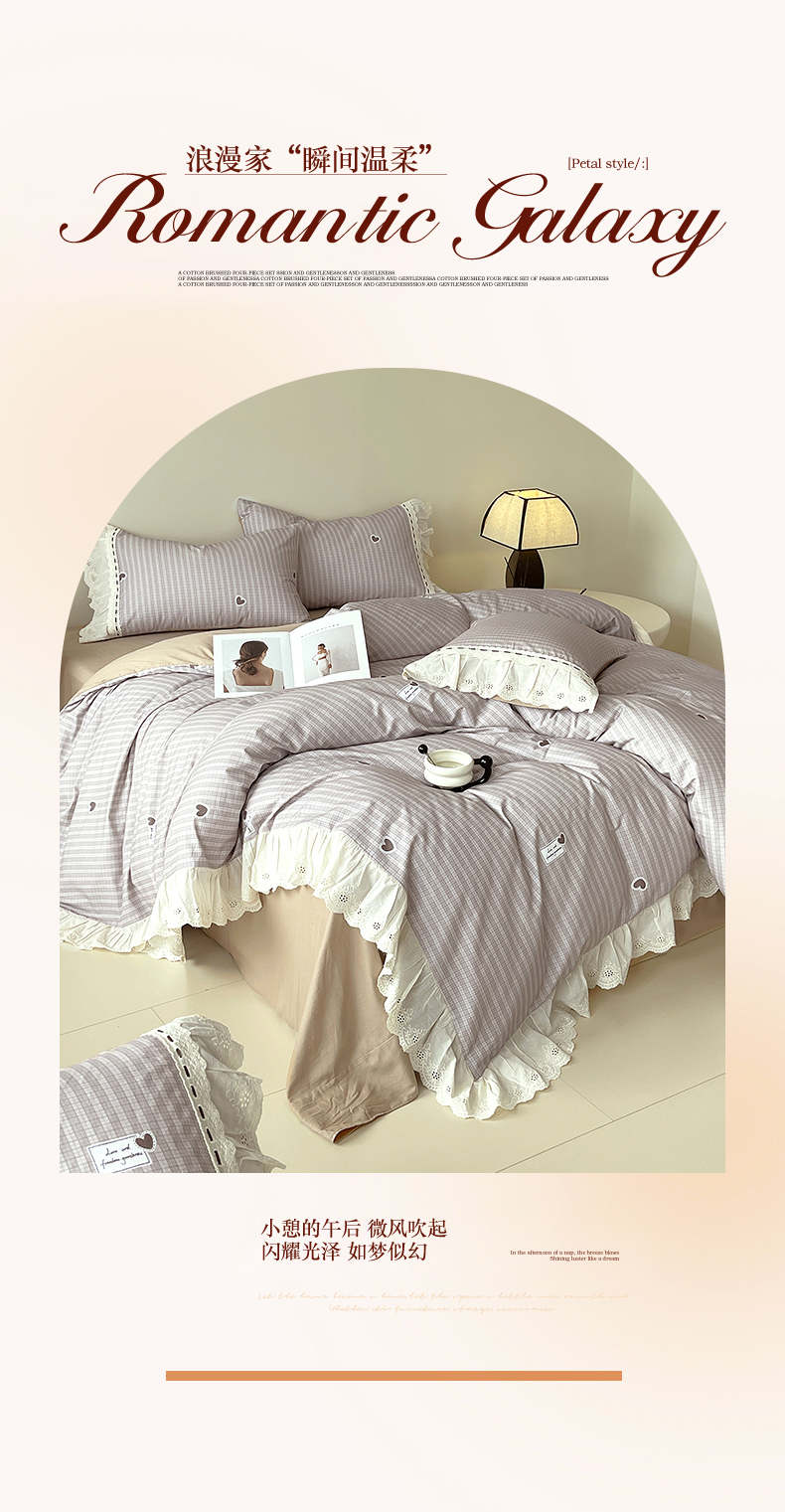 梧桐树 2025新款全棉印花四件套系列-花边款 H06露斯-咖