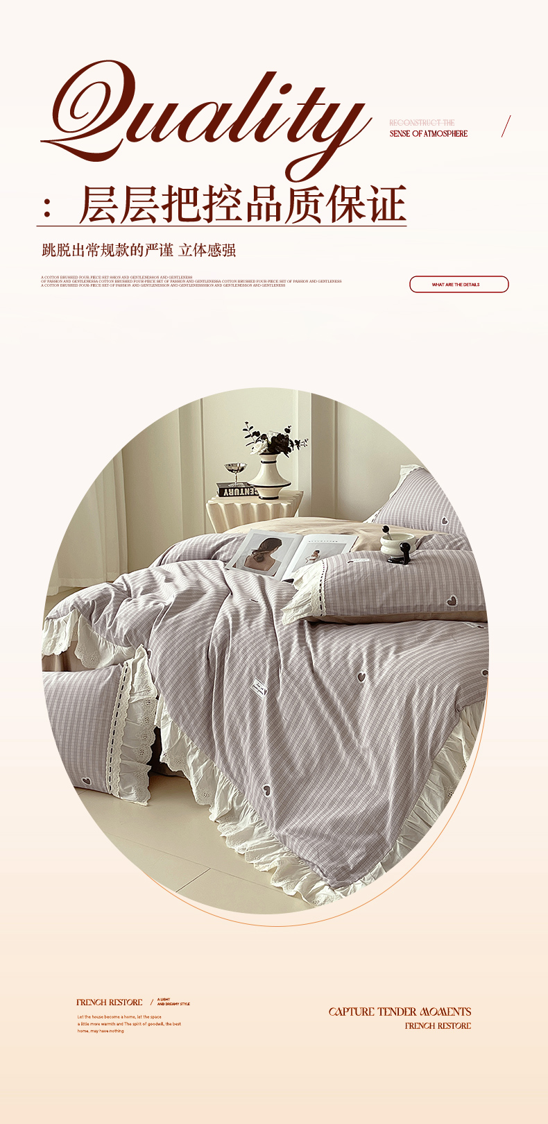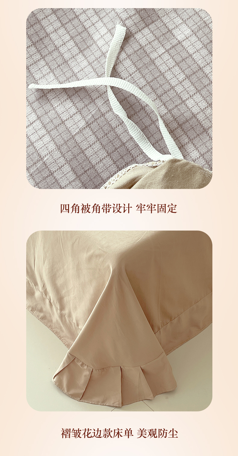 商品名称:梧桐树 2025新款全棉印花四件套系列-花边款 H06露斯-咖