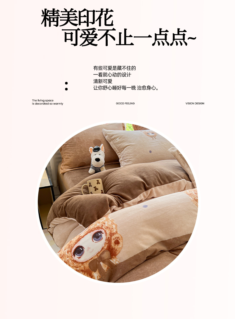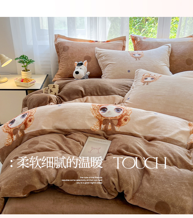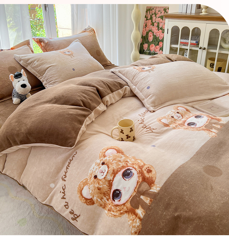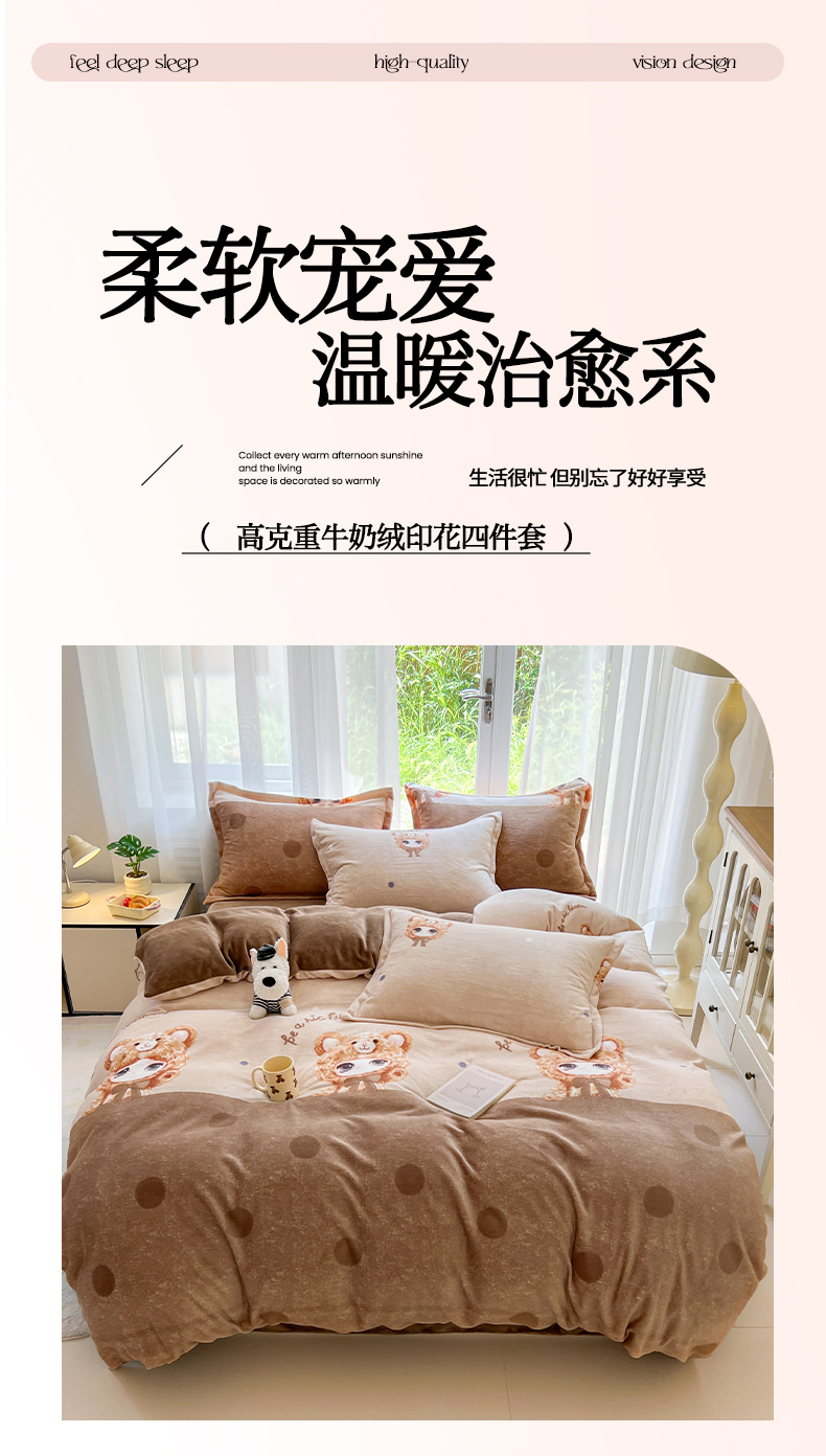 当前位置: 91家纺网 > 商品网购 > 床品套件 > 四件套 > 牛奶绒四件套 > 妖妖家纺 2025新款高克重200克牛奶绒印花四件套 元气萌宝