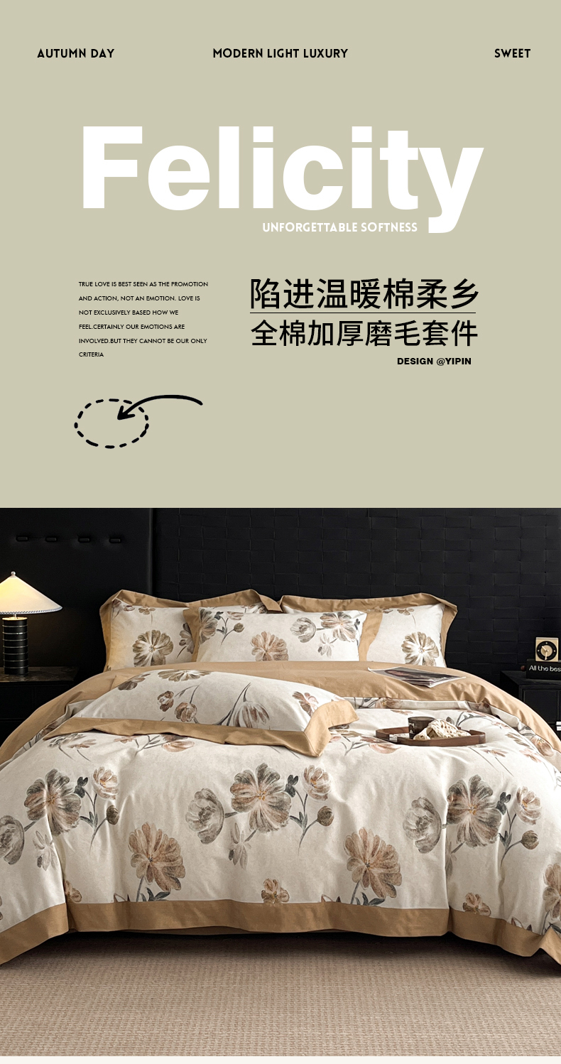 当前位置: 91家纺网 > 商品网购 > 床品套件 > 四件套 > 全棉普通四件套 > 慕晨 2025新款全棉纯棉磨毛轻奢数码印花直播热款四件套 木槿怡人