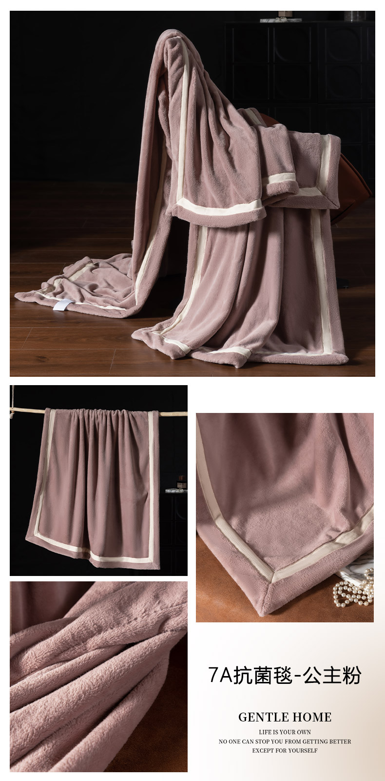 网客家纺 2025新款7A抗菌抗静电舒适百搭毛绒毯 7A抗菌毯-公主粉
