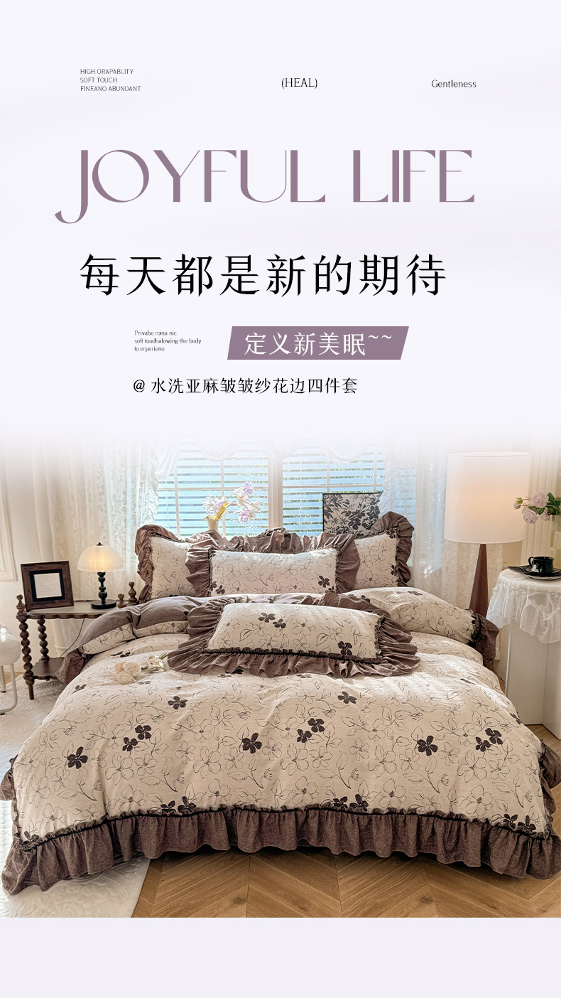 (总)唐人居 2026春夏新款皱皱水洗棉花边床盖四件套,安妮,半亩花田,宝格丽曼,彩色波点,初见,繁花,芬德拉,花影,卡地,玫瑰园,柔心花影,幸运小马,音乐派对,音乐企鹅