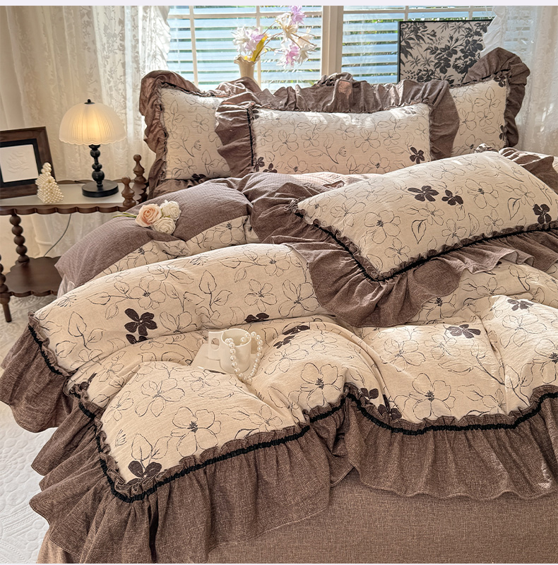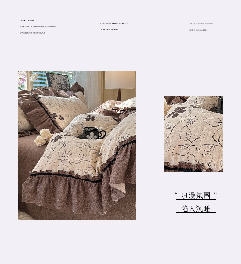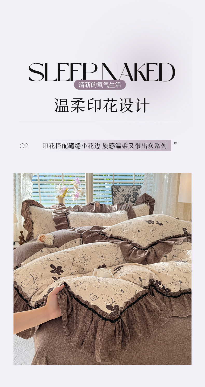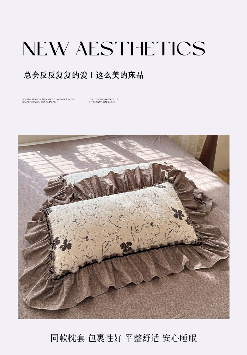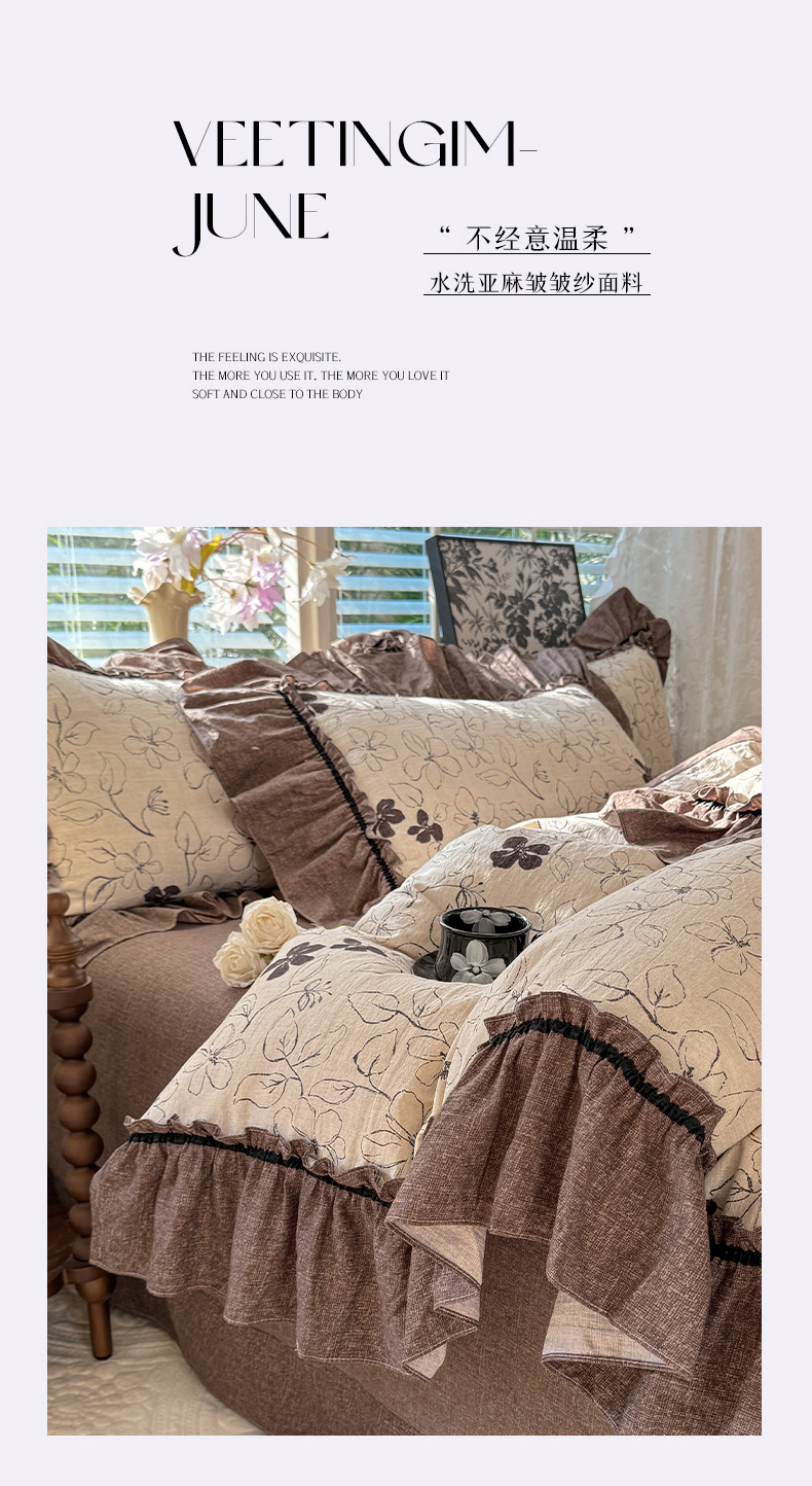 (总)唐人居 2026新款水洗棉花边床盖四件套-花影系列,花影-浅紫,花影-豆沙,花影-玫红,花影-暖橘,花影-苹果绿,花影-浅粉,花影-浅灰