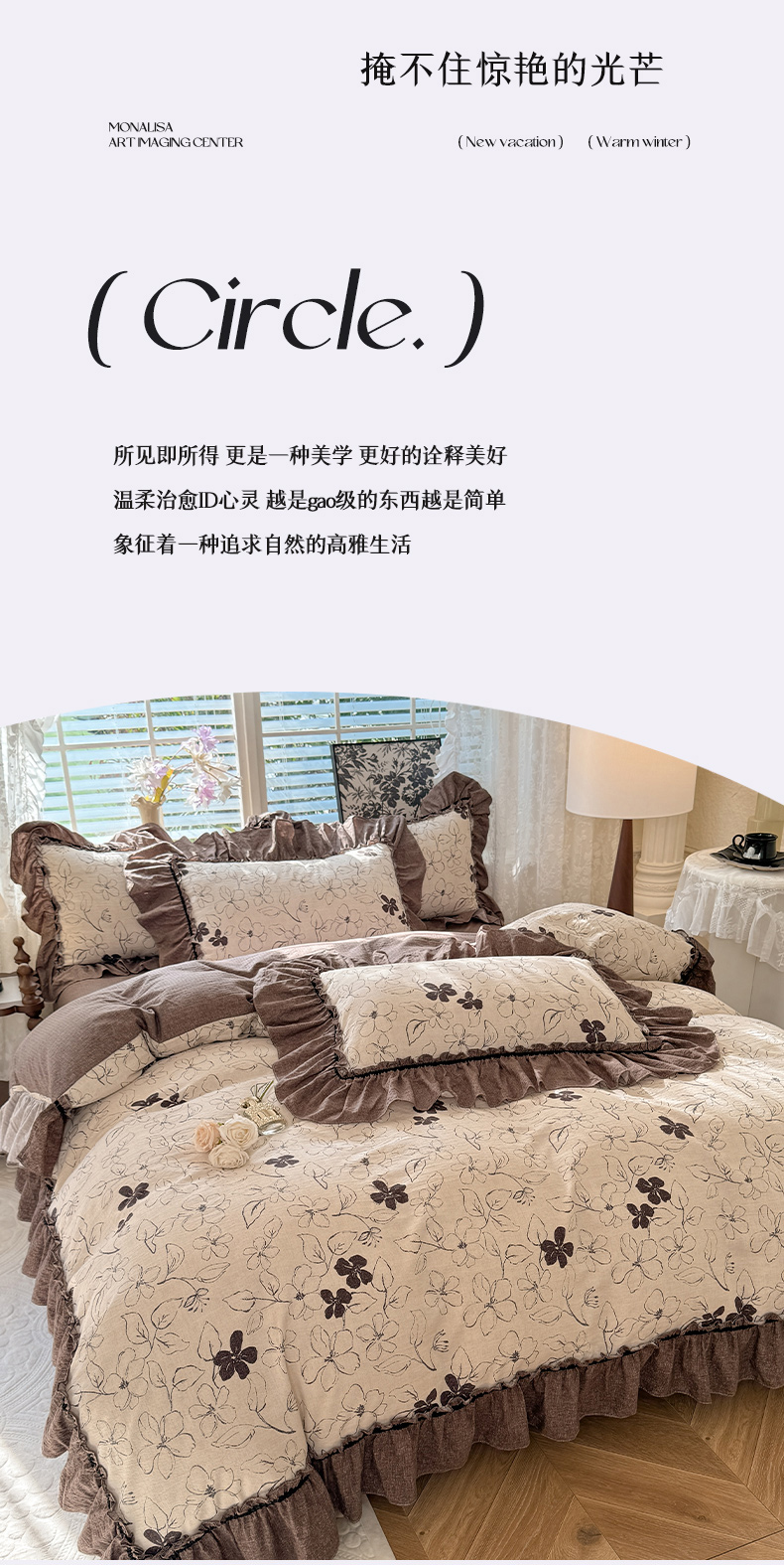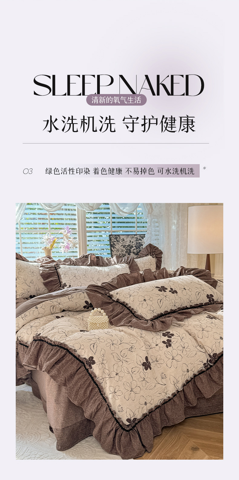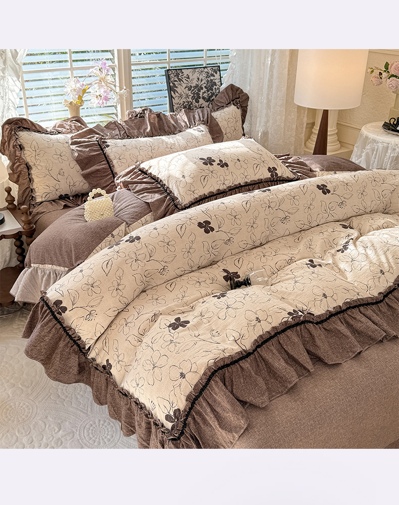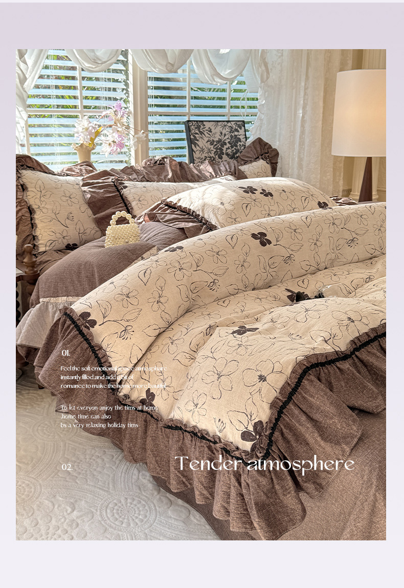 (总)唐人居 2026新款水洗棉花边床盖四件套-花影系列,花影-浅紫,花影-豆沙,花影-玫红,花影-暖橘,花影-苹果绿,花影-浅粉,花影-浅灰