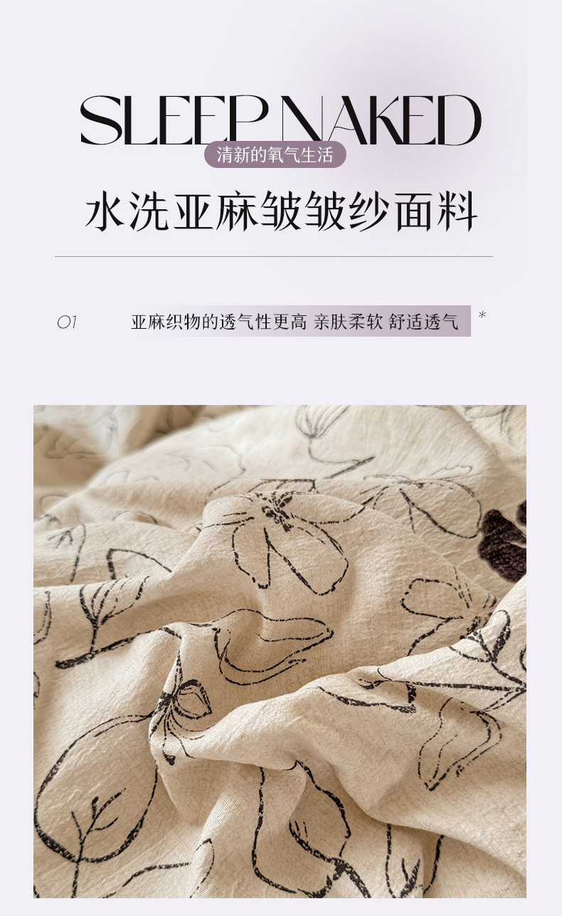 商品名称:唐人居 2025新款水洗亚麻四件套 芳华