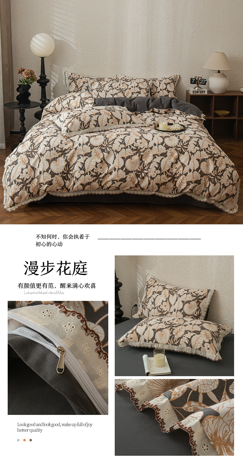 当前位置: 91家纺网 > 商品网购 > 床品套件 > 四件套 > 普通磨毛四件套 > 优米家纺 2025新款A类加厚全棉纯棉磨毛提花四件套(提供买家秀) 满园花开