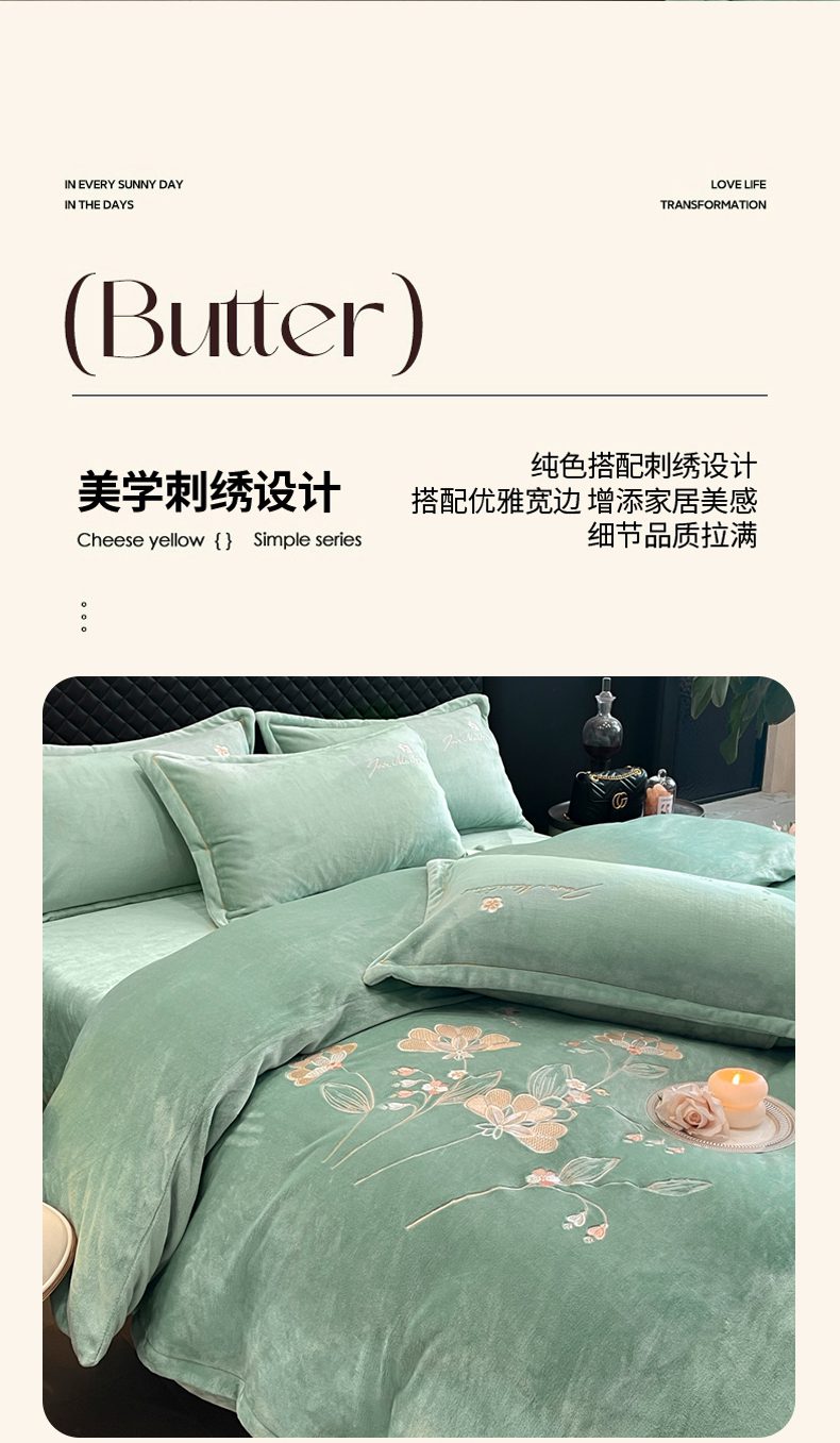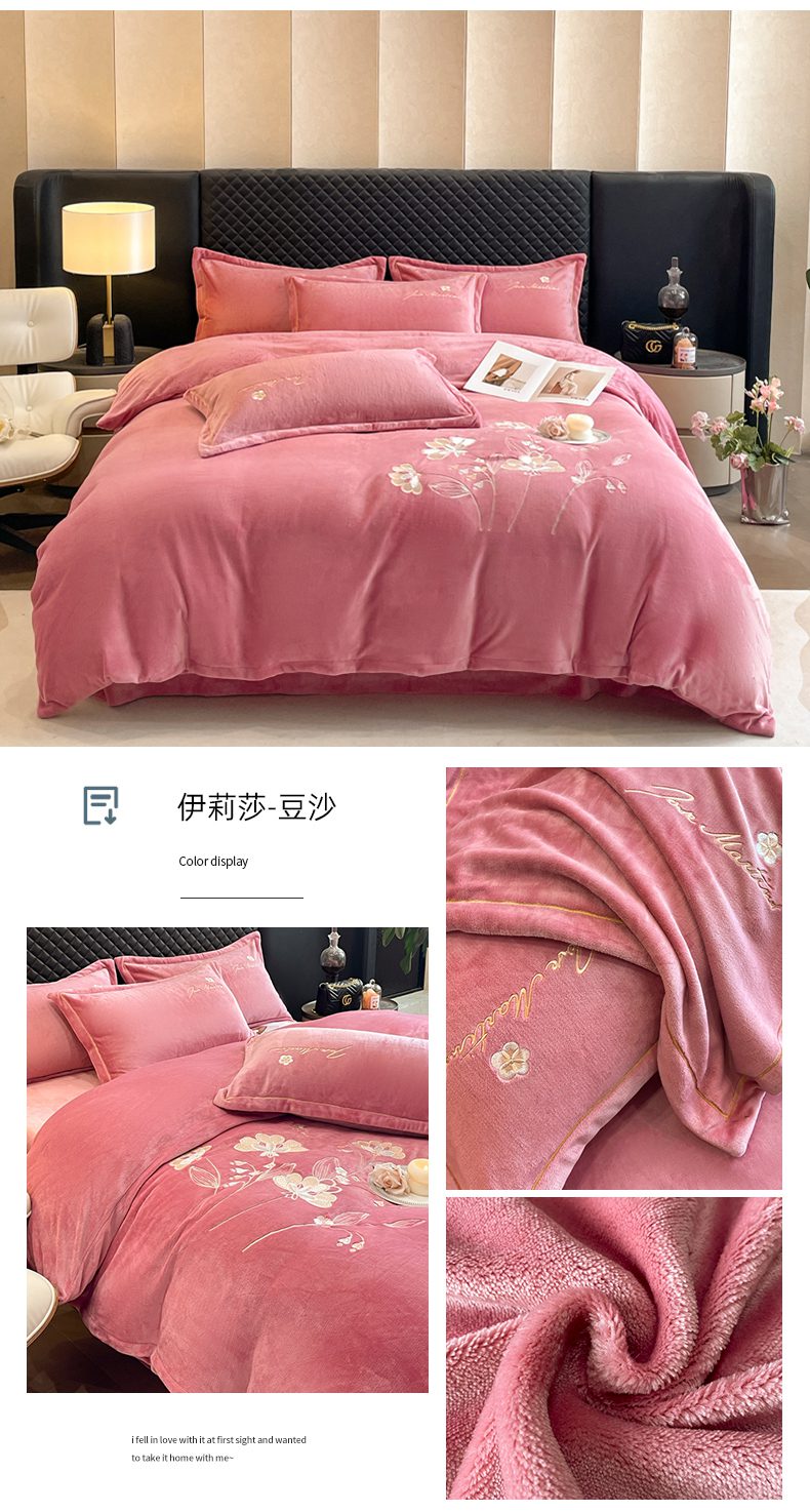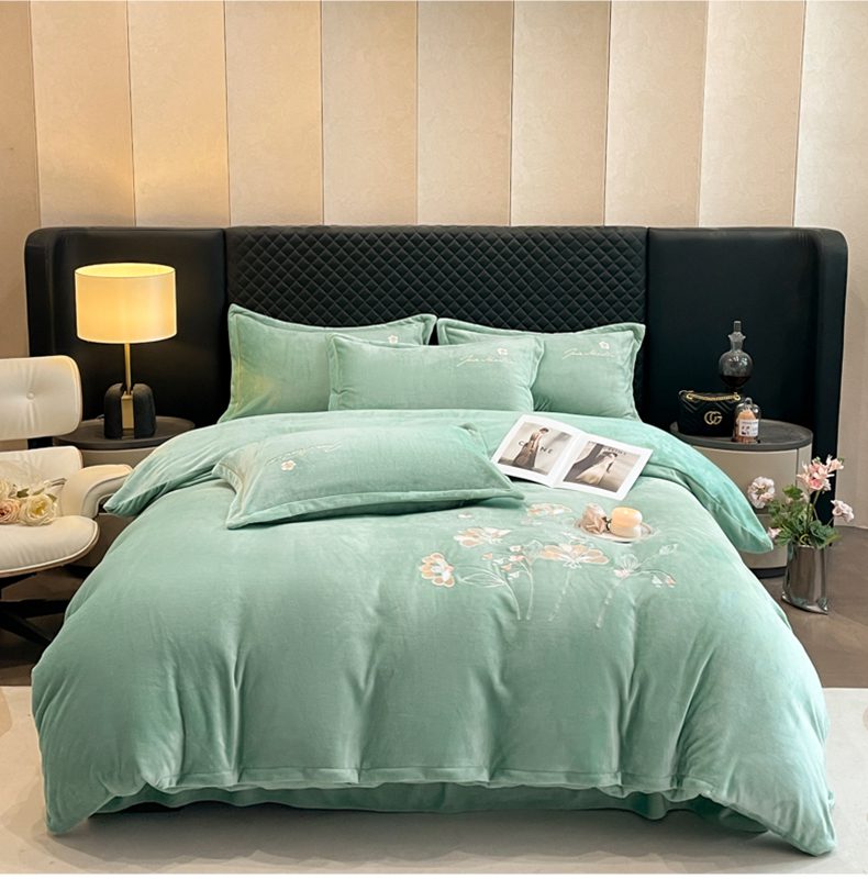 畅畅家纺 2025新款冬季牛奶绒绣花绒四件套 伊莉莎-湖兰