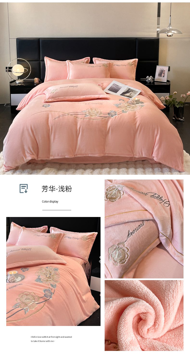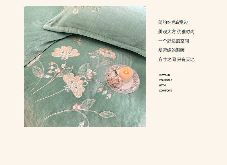 商品名称:畅畅家纺 2025新款冬季牛奶绒绣花绒四件套 伊莉莎-湖兰