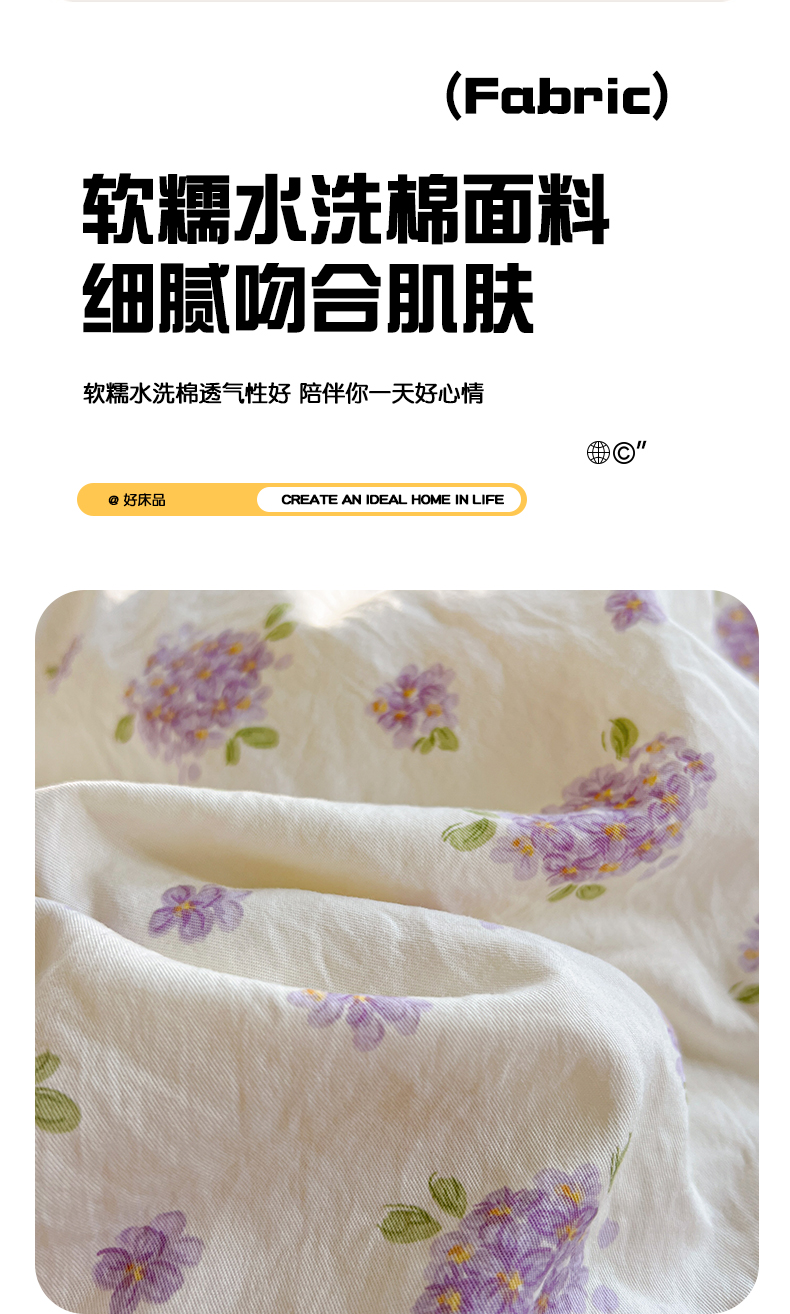 当前位置: 91家纺网 > 商品网购 > 床品套件 > 四件套 > 其它四件套 > 优选 2025新款加厚爆款小布袋韩国古法高克重水洗棉床单学生三件套床笠款四件套 薰衣草田