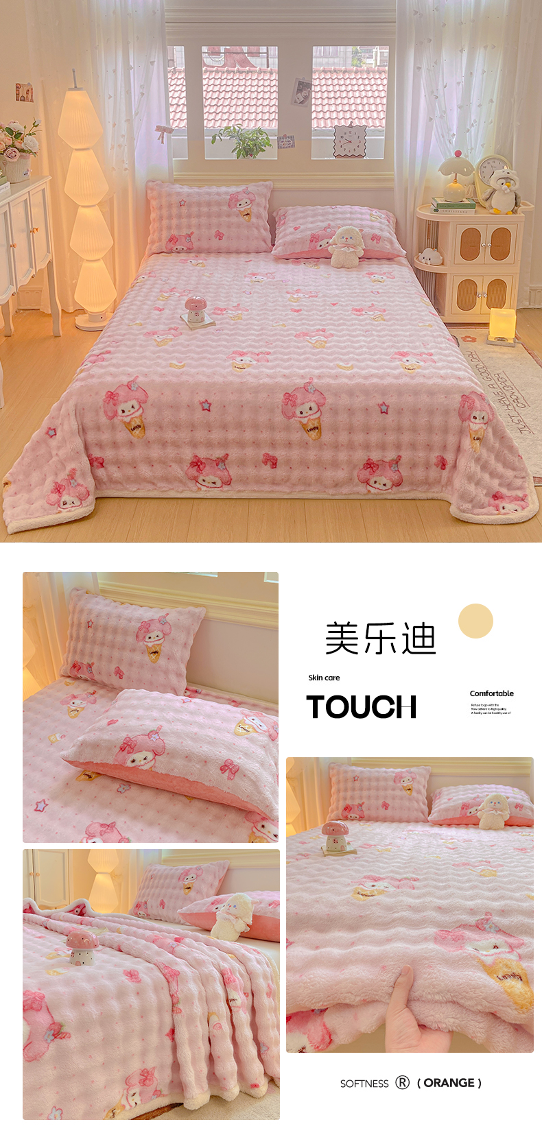 商品名称:耐思家纺 2025新款泡泡牛奶绒印花单床单单品床单床单单件 泡泡-甜心粉