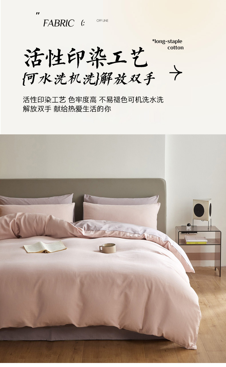 当前位置: 91家纺网 > 商品网购 > 床品套件 > 四件套 > 全棉活性四件套 > 慕尚家纺 2025新款100s全棉提花磨毛四件套 白桃烟粉+雪紫色