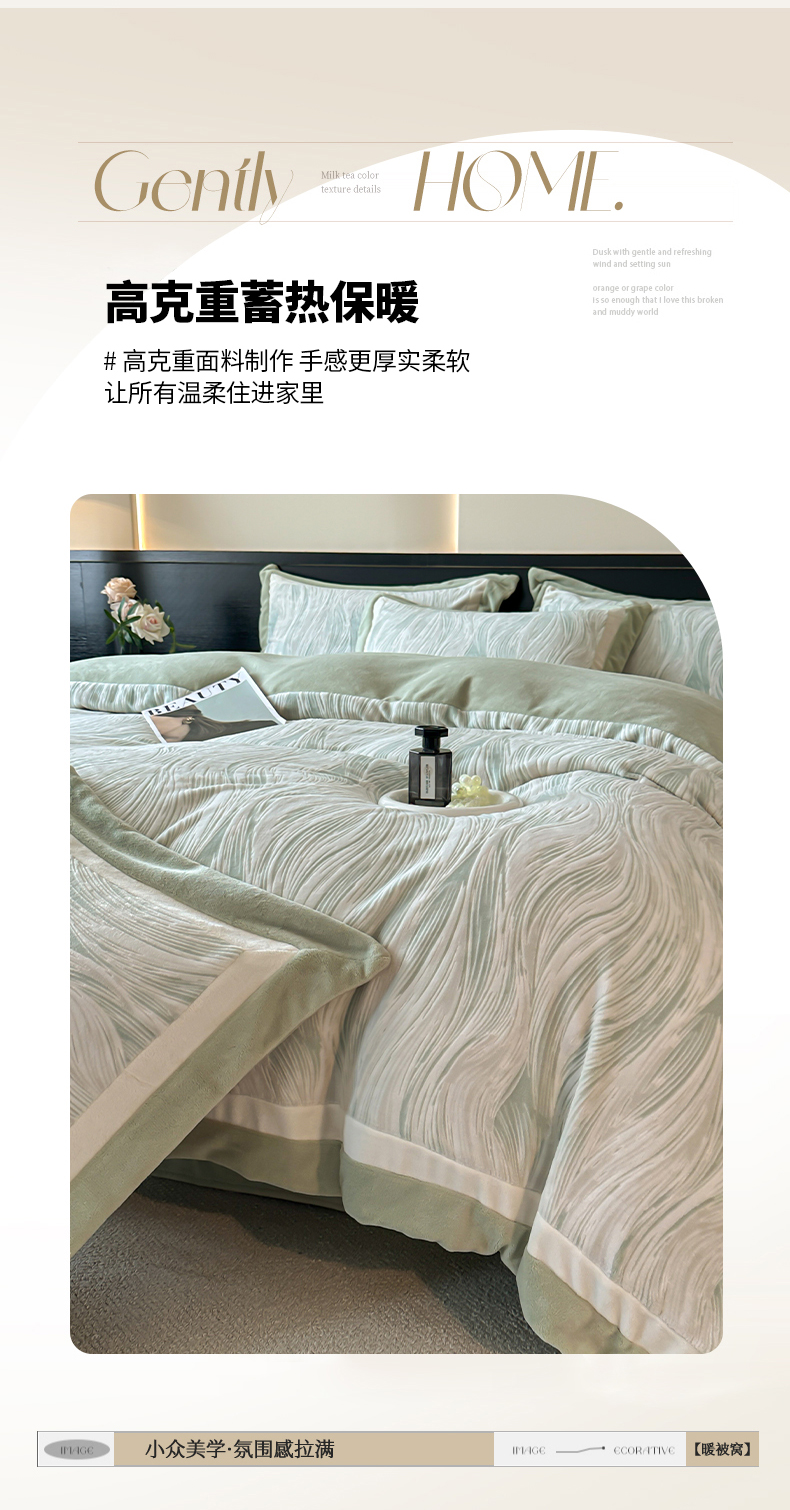 (总)金牛座家纺 2025新款立体雕花牛奶绒双拼角轻奢四件套-印象和叶影(最低售价不得低于178),印象-浅绿,印象-嫩粉,印象-灰,叶影-灰,叶影-卡其,叶影-雾蓝