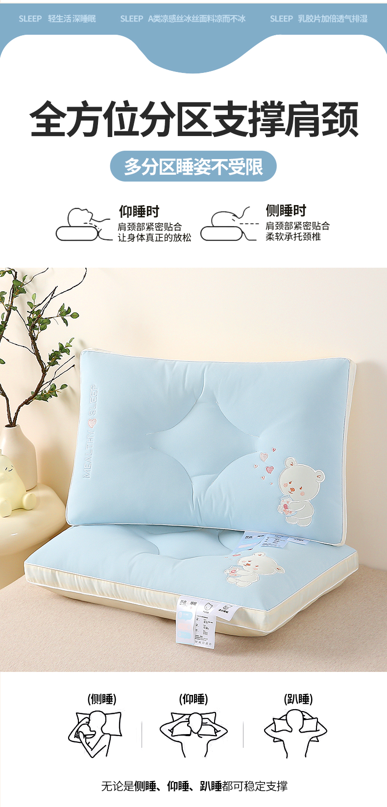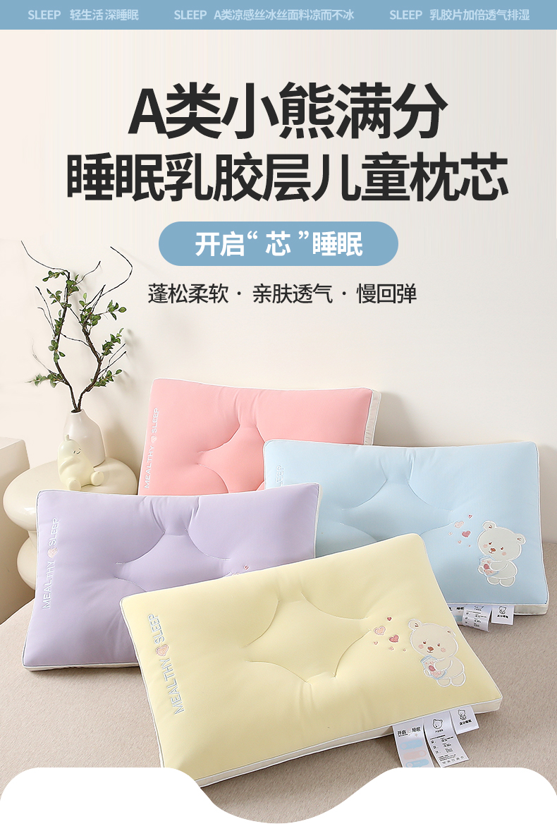 商品名称:(总)锦鲤枕芯 2024新款枕芯A类母婴级小熊满分睡眠乳胶层儿童枕头40×60cm学生枕头