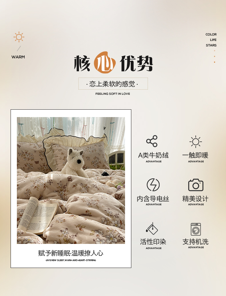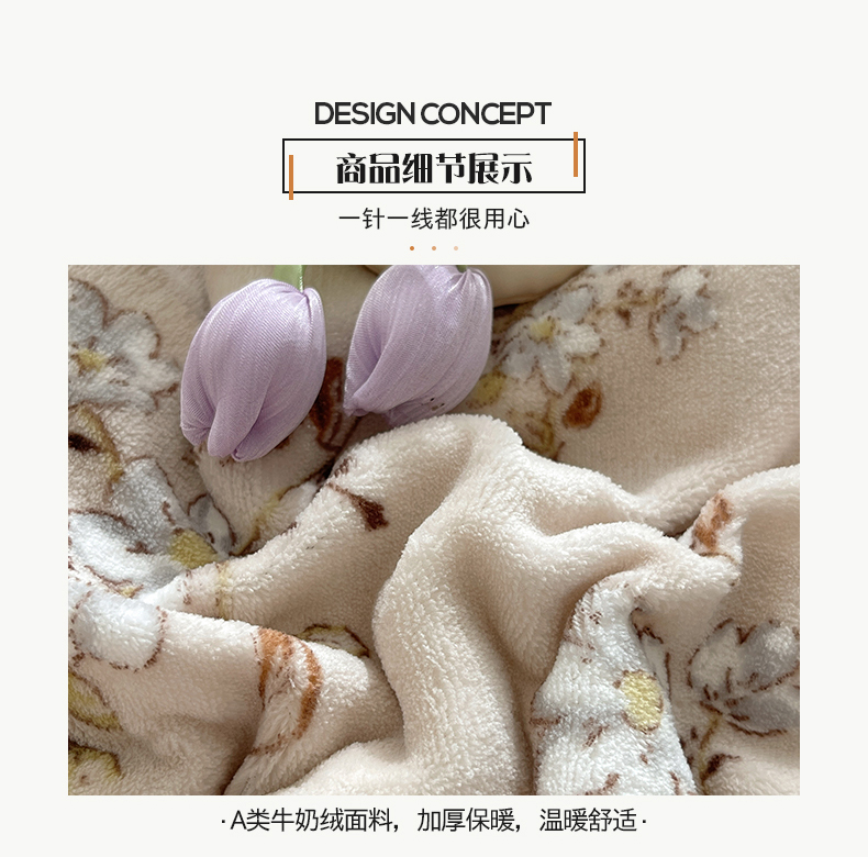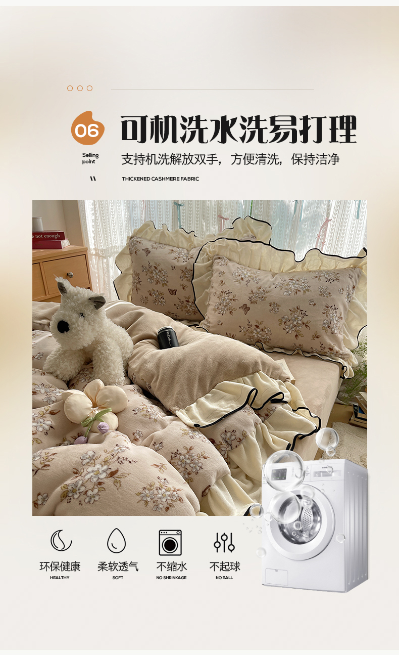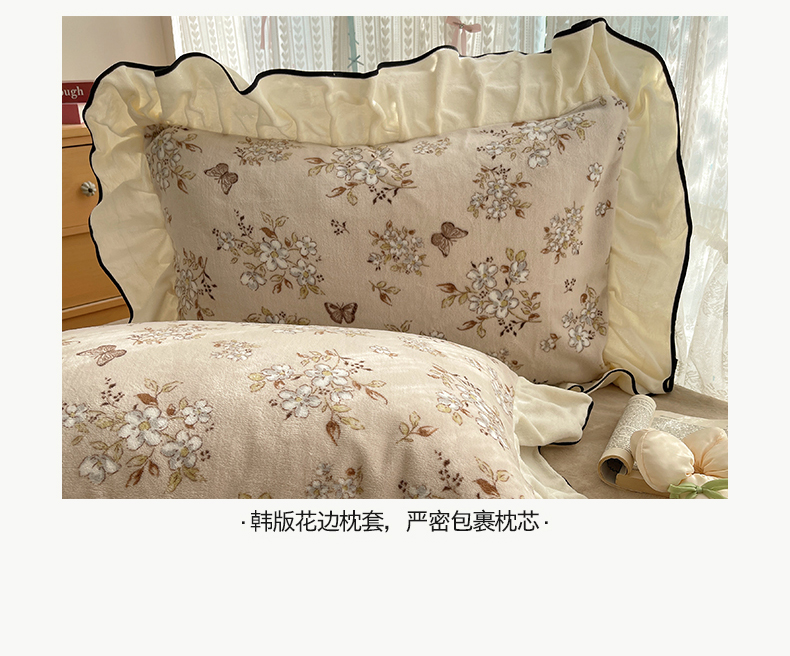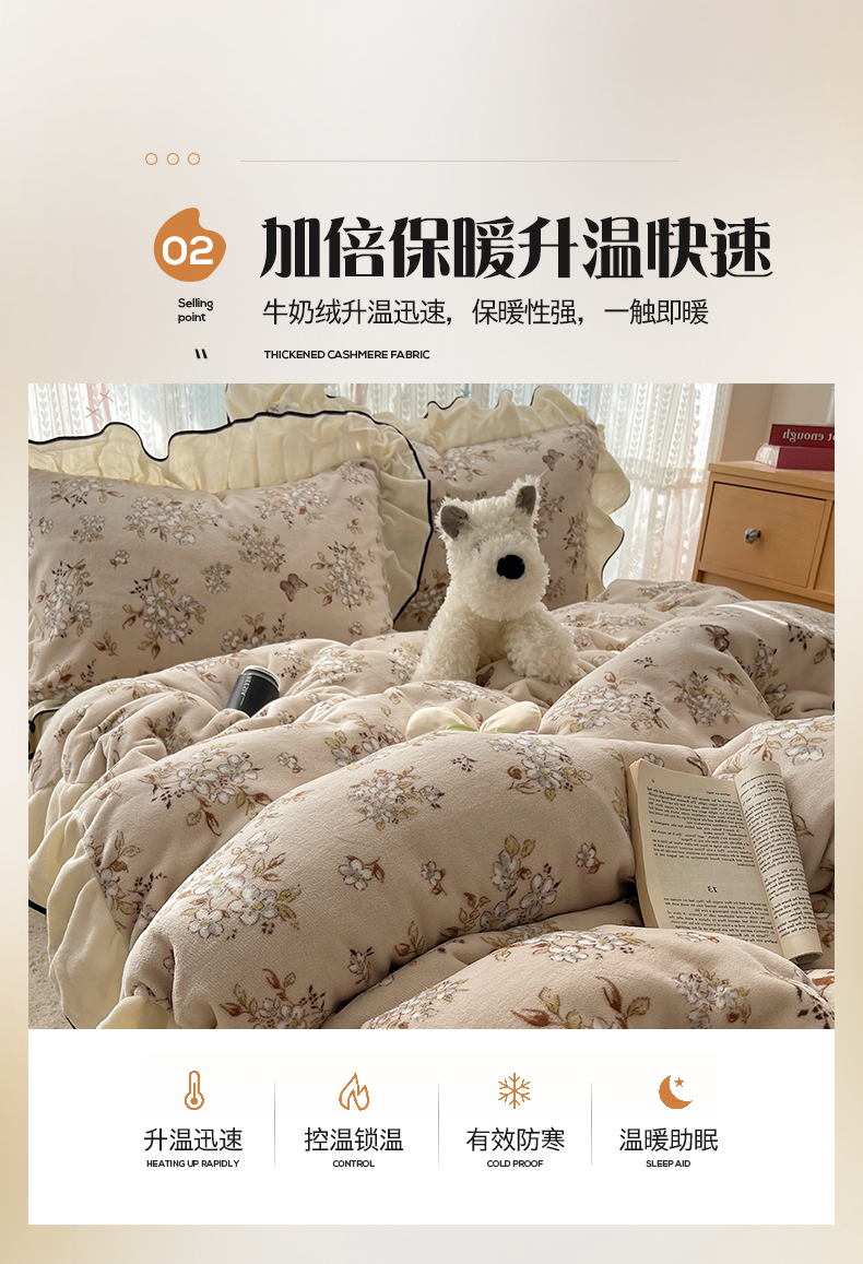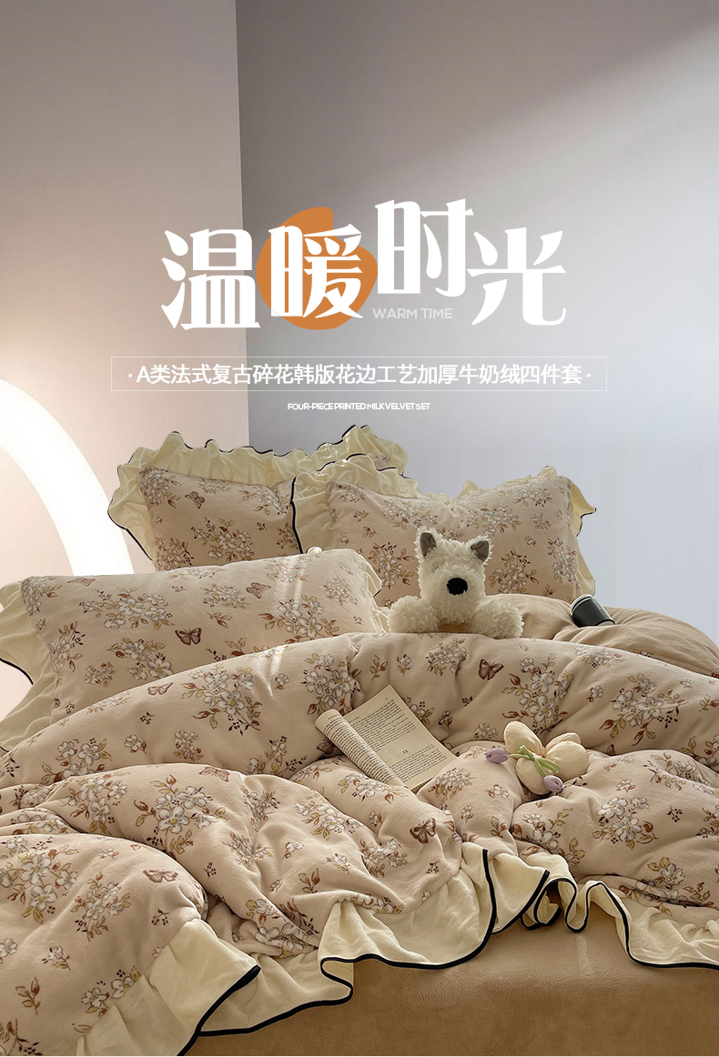 商品名称:桃子家居 2025新款A类法式复古碎花牛奶绒韩版花边工艺加厚牛奶绒四件套 绒花边-蝶樱