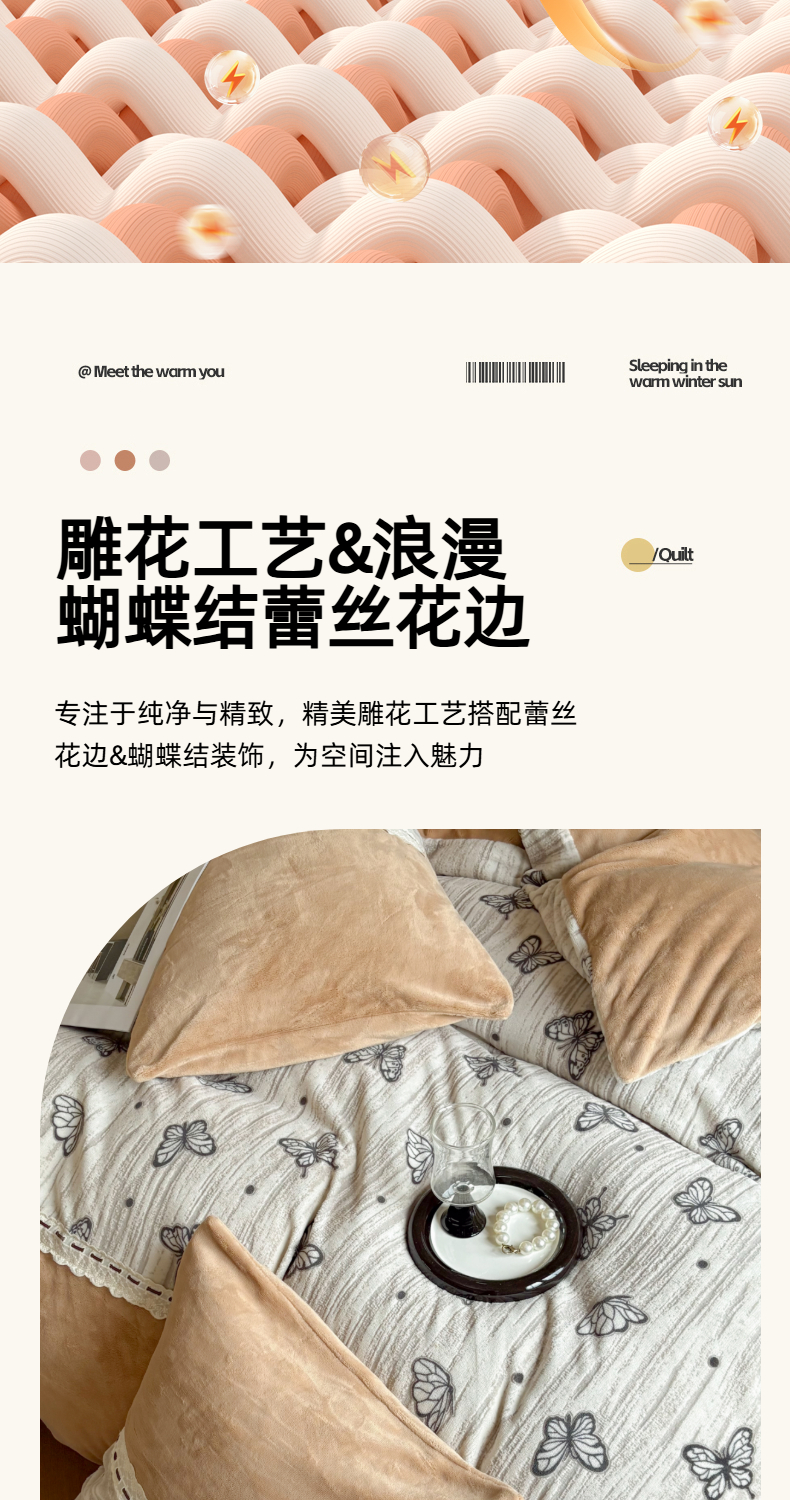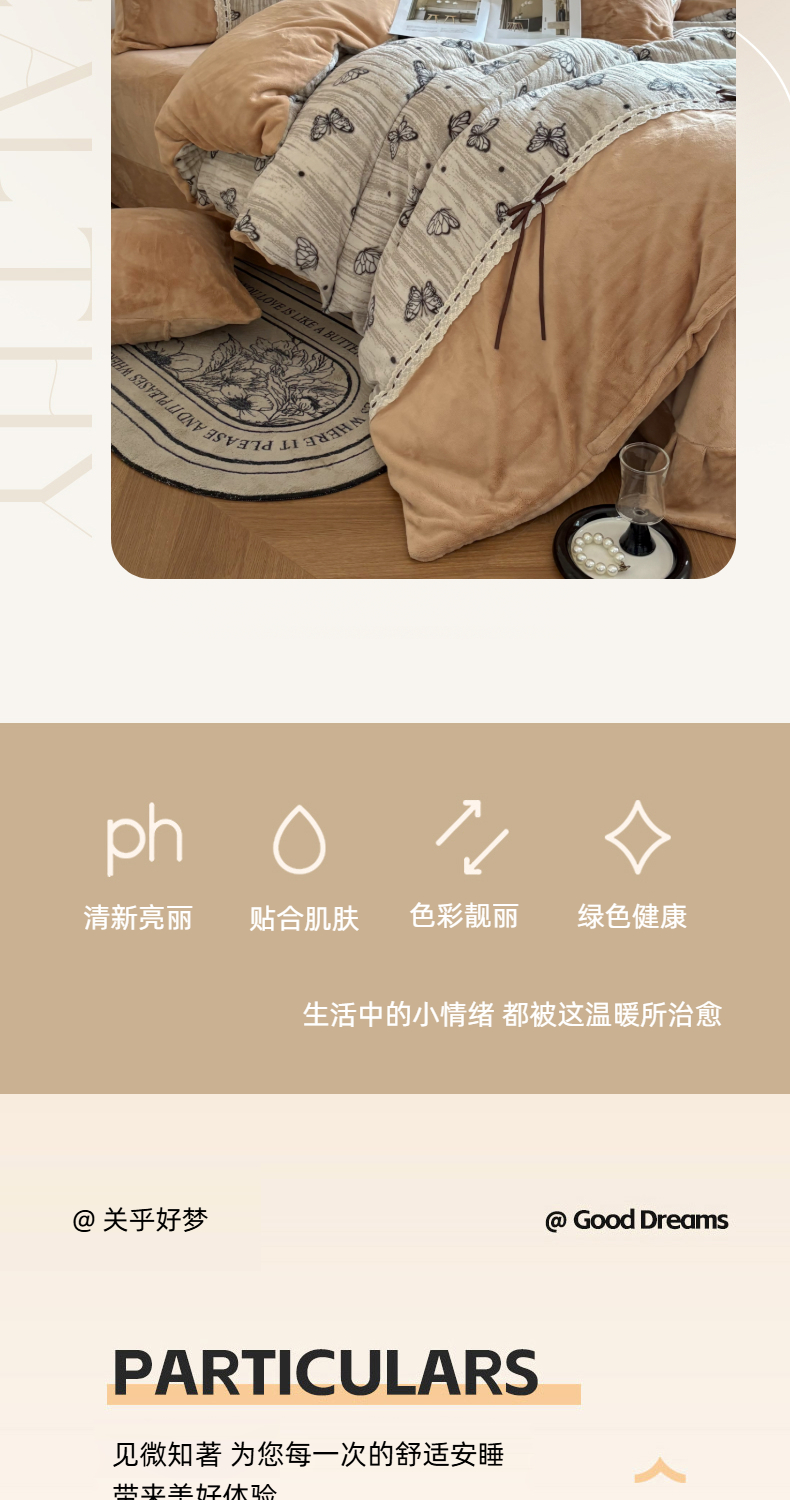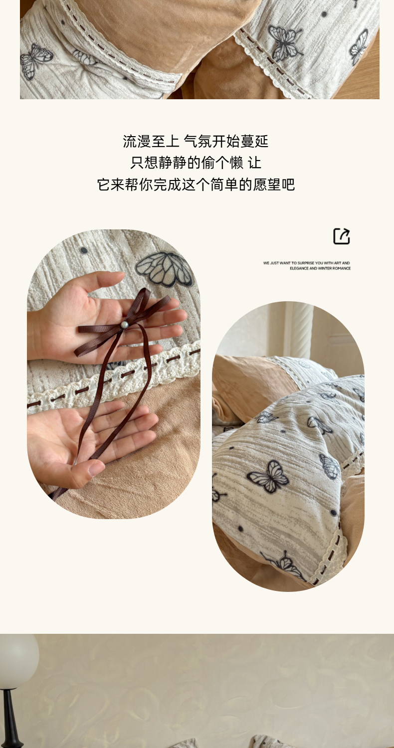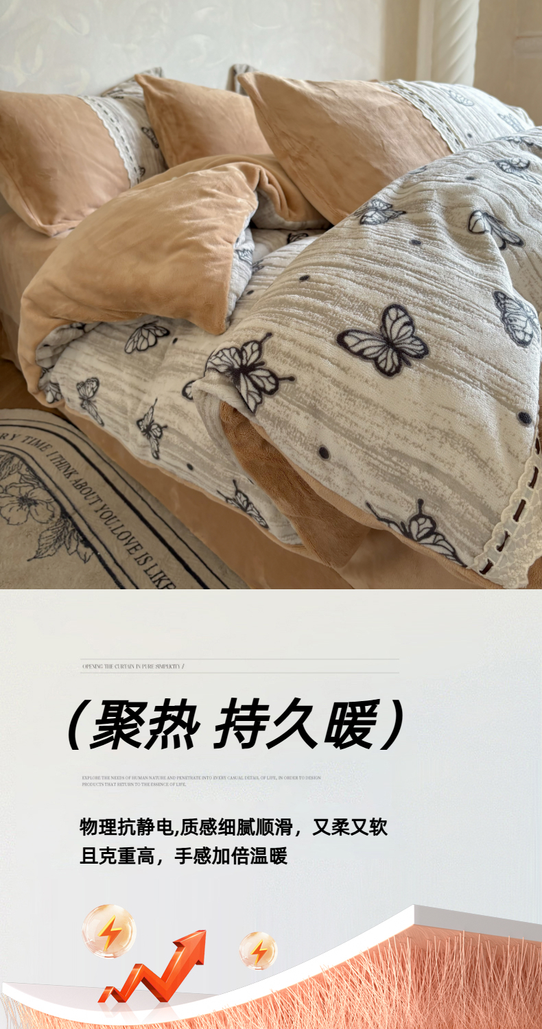 当前位置: 91家纺网 > 商品网购 > 床品套件 > 四件套 > 牛奶绒四件套 > 昊川家纺 2025新款牛奶绒雕花绒轻奢花边蝴蝶结拼接款四件套 福蝶-咖
