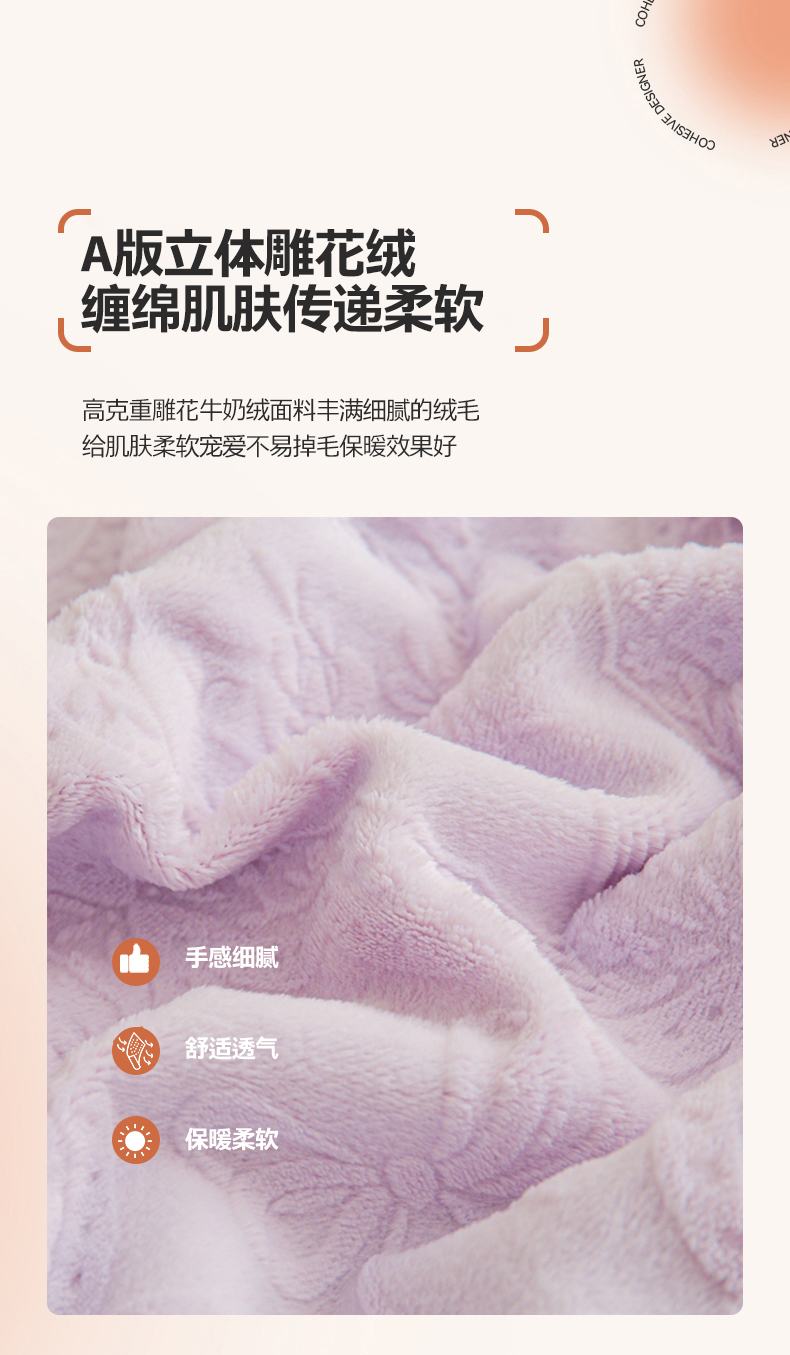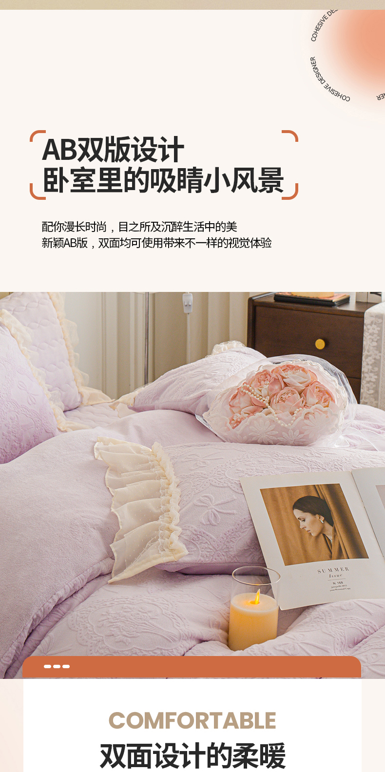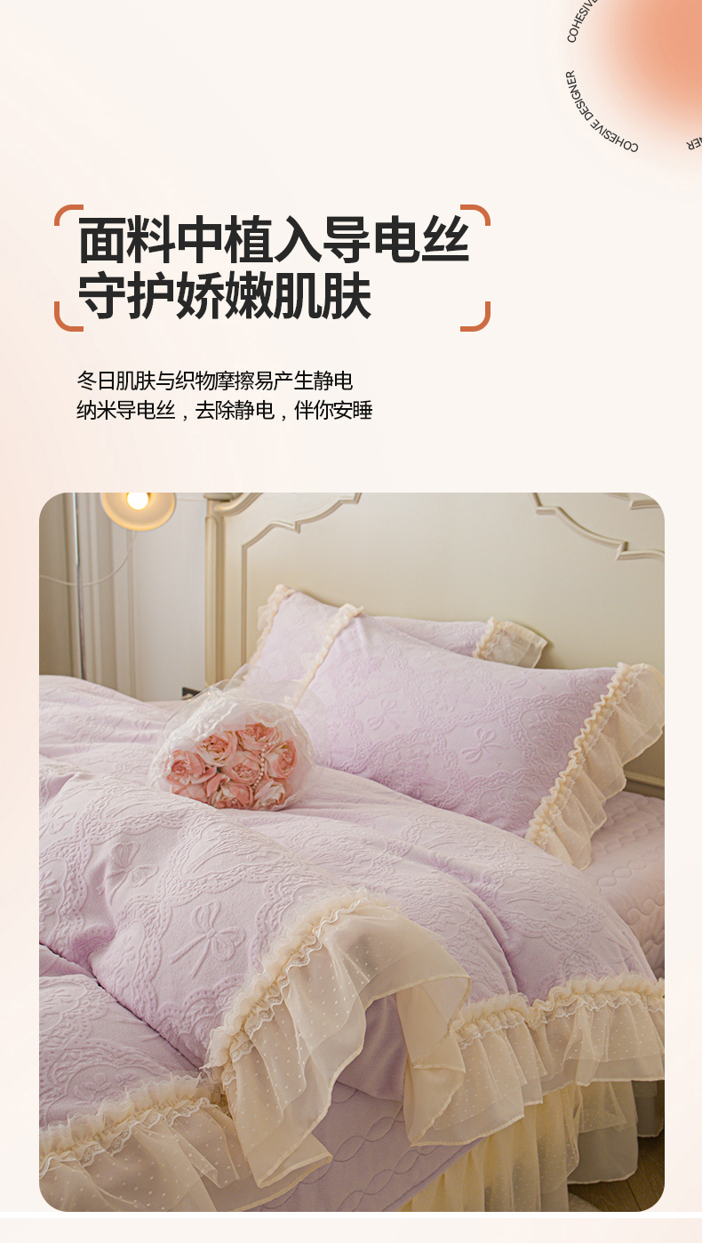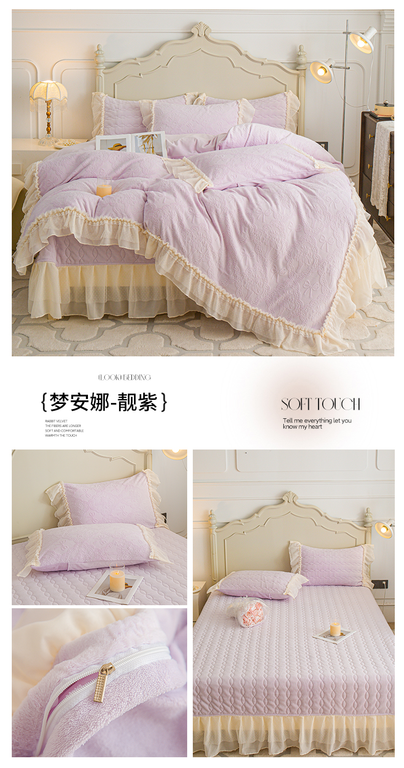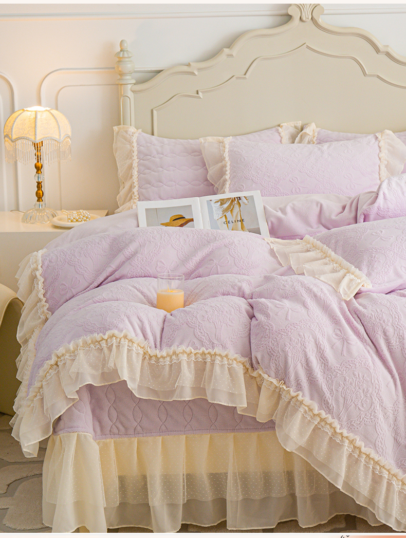 当前位置: 91家纺网 > 商品网购 > 床品套件 > 四件套 > 牛奶绒四件套 > 胜权家纺 2025秋冬新款A类全消光高克重5D雕花牛奶绒仙女风夹棉床盖四件套系列 梦安娜-靓紫