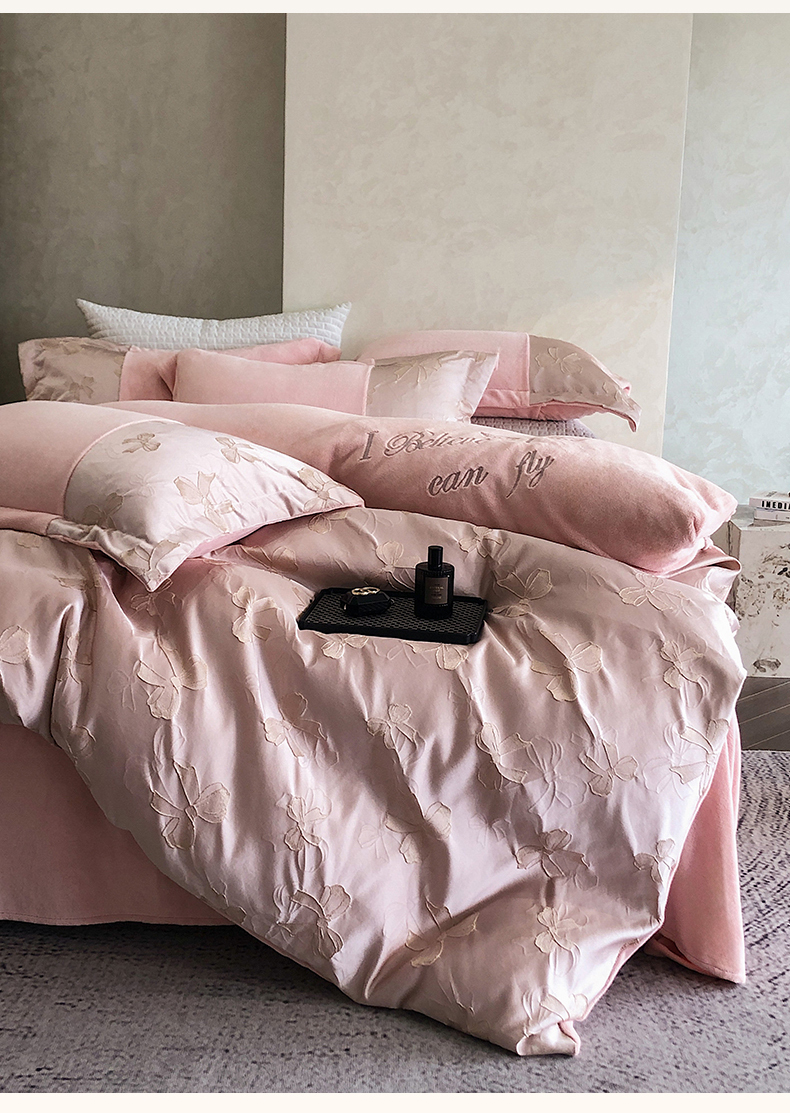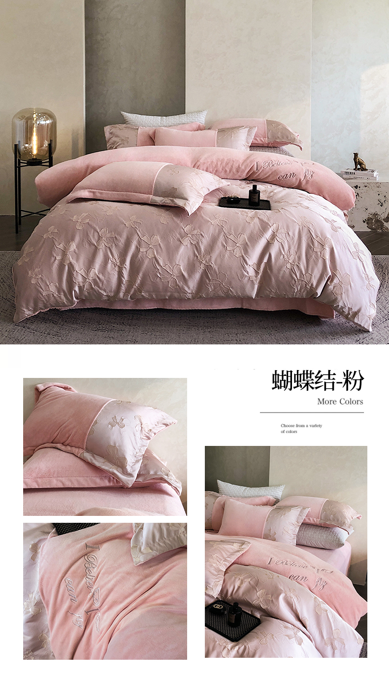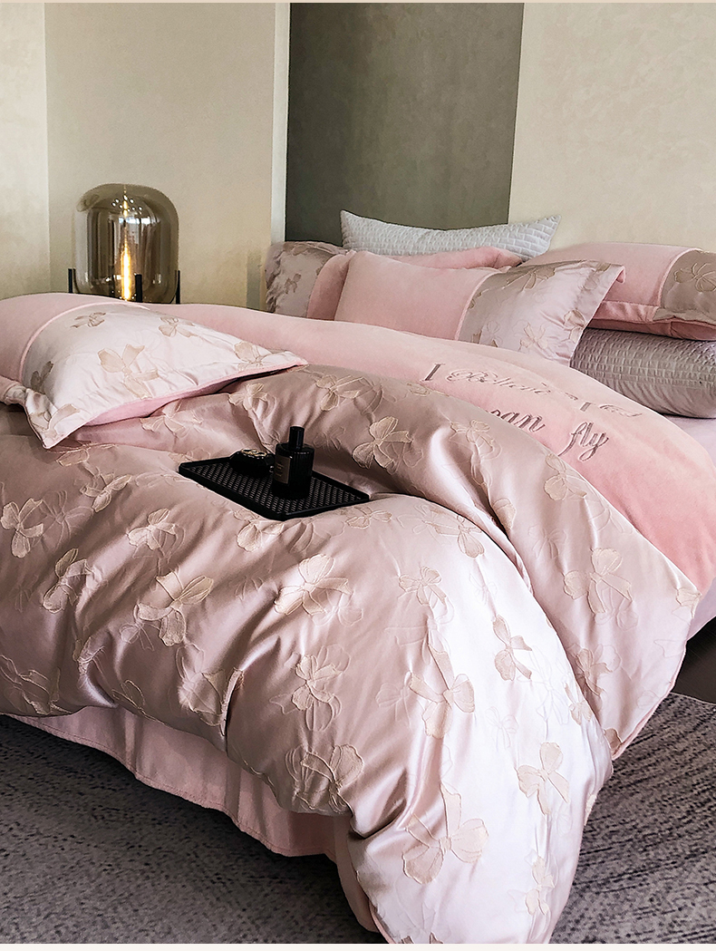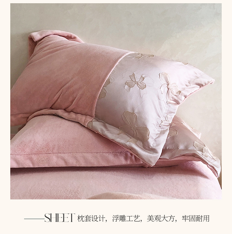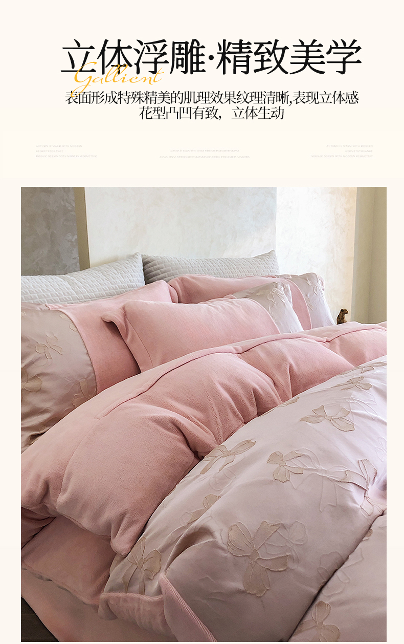 商品名称:换种生活 2025新款A类浮雕牛奶绒刺绣四件套 蝴蝶结-粉