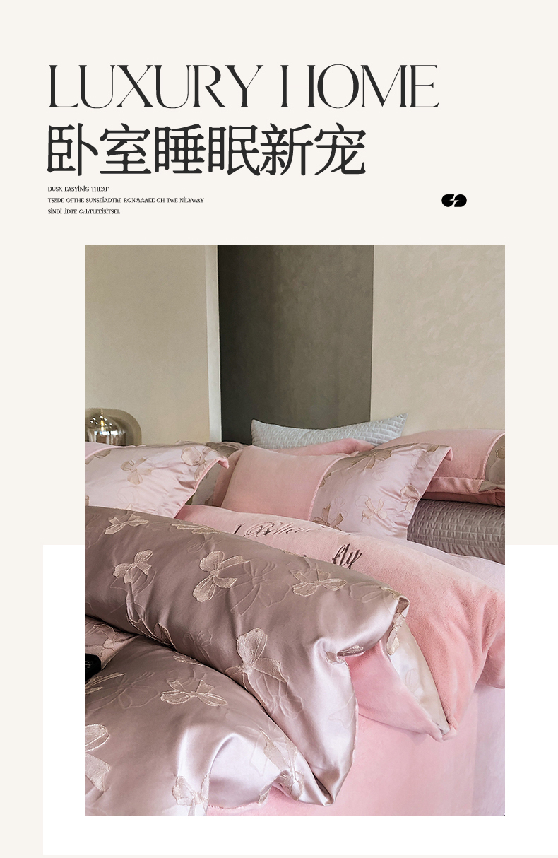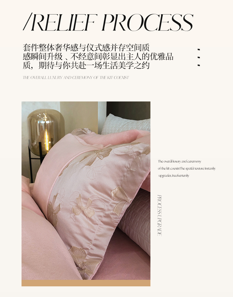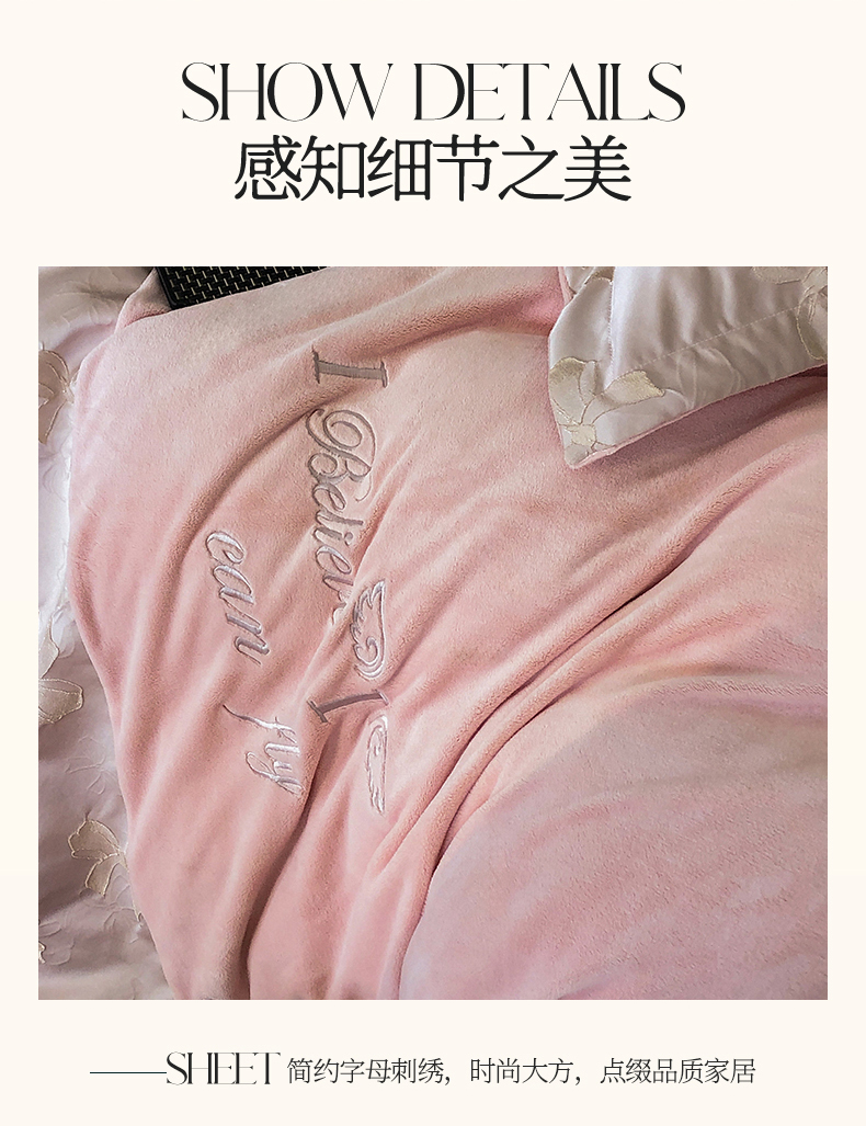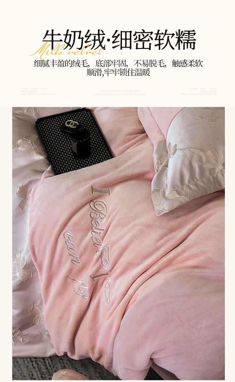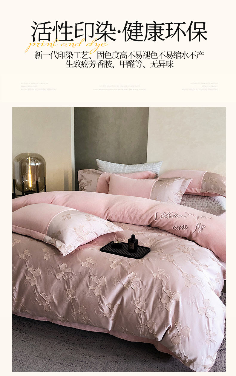 商品名称:换种生活 2025新款A类浮雕牛奶绒刺绣四件套 蝴蝶结-粉