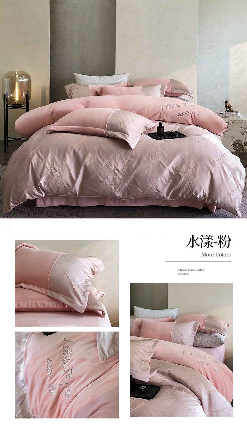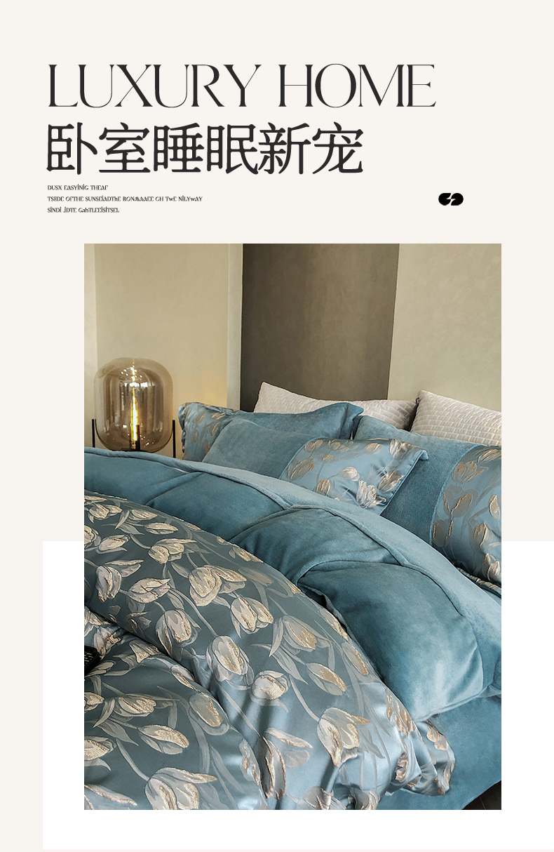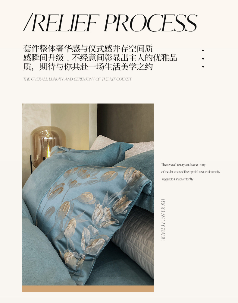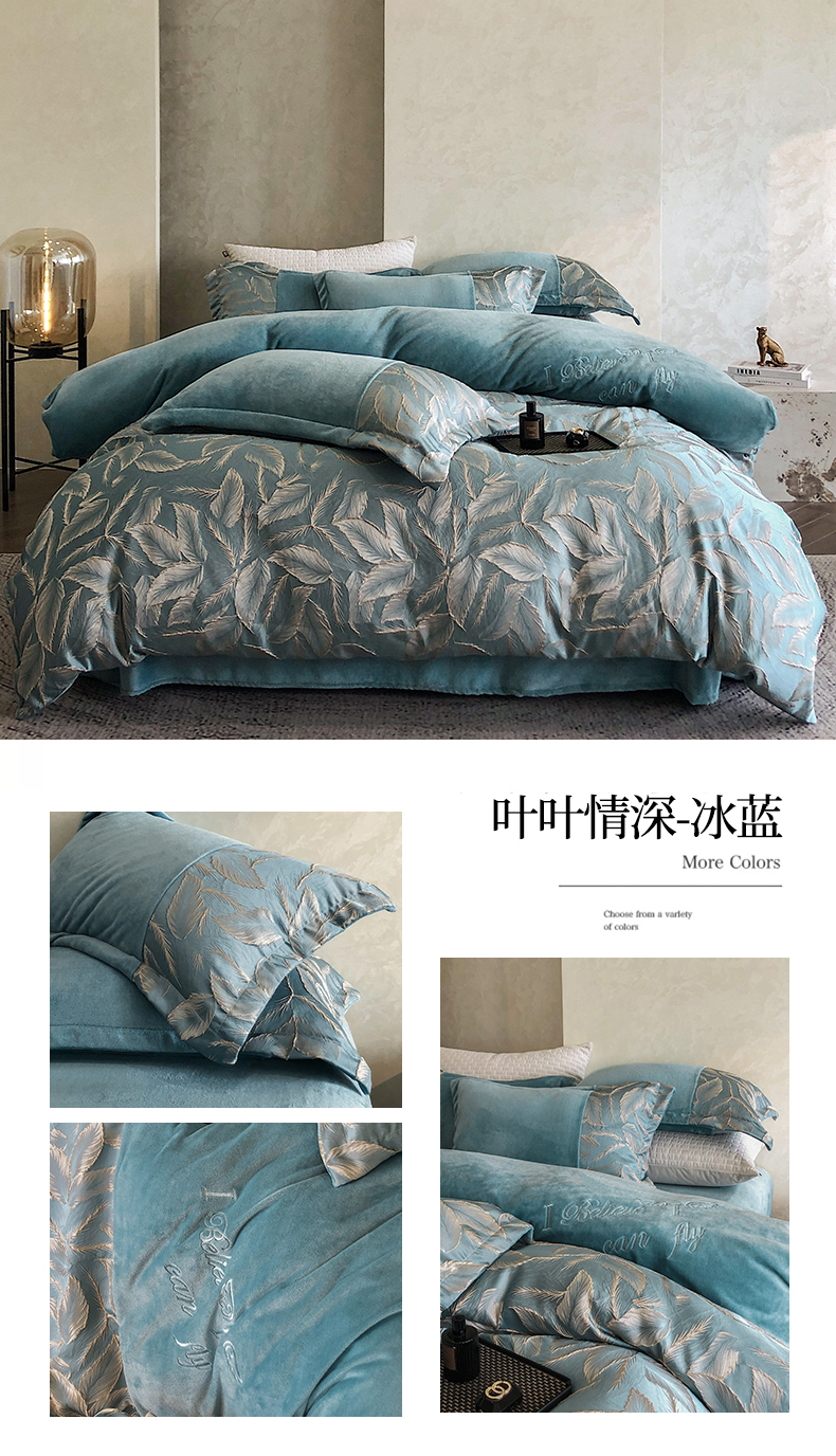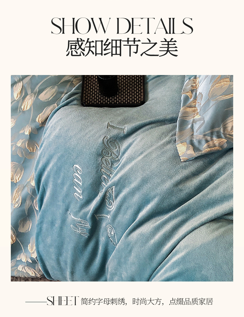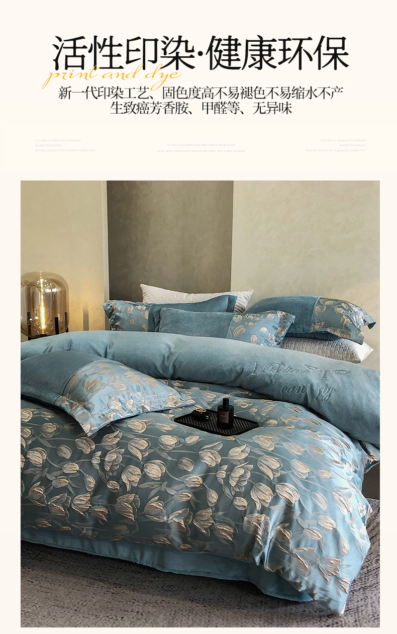 商品名称:换种生活 2025新款A类浮雕牛奶绒刺绣四件套 郁金香-冰蓝