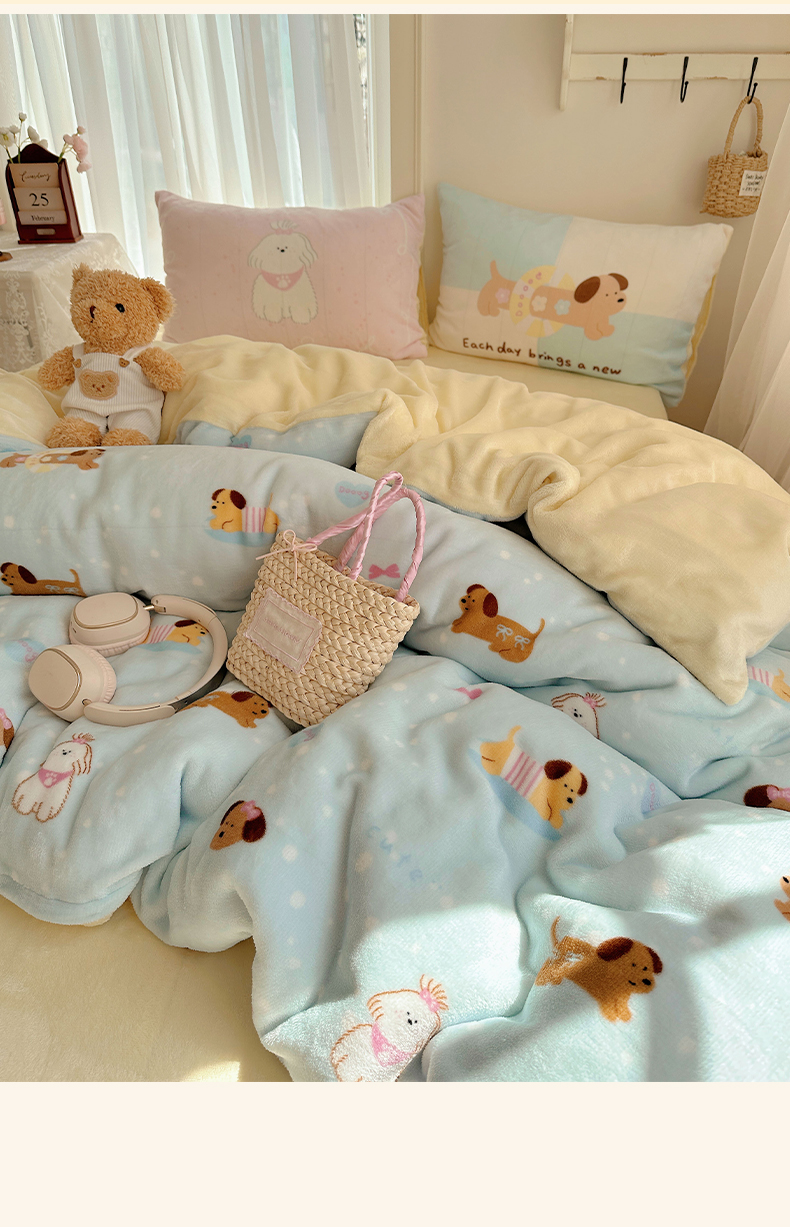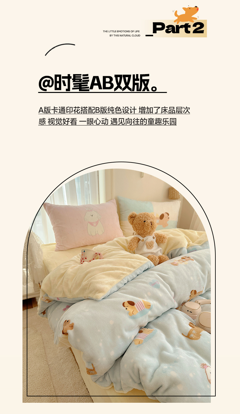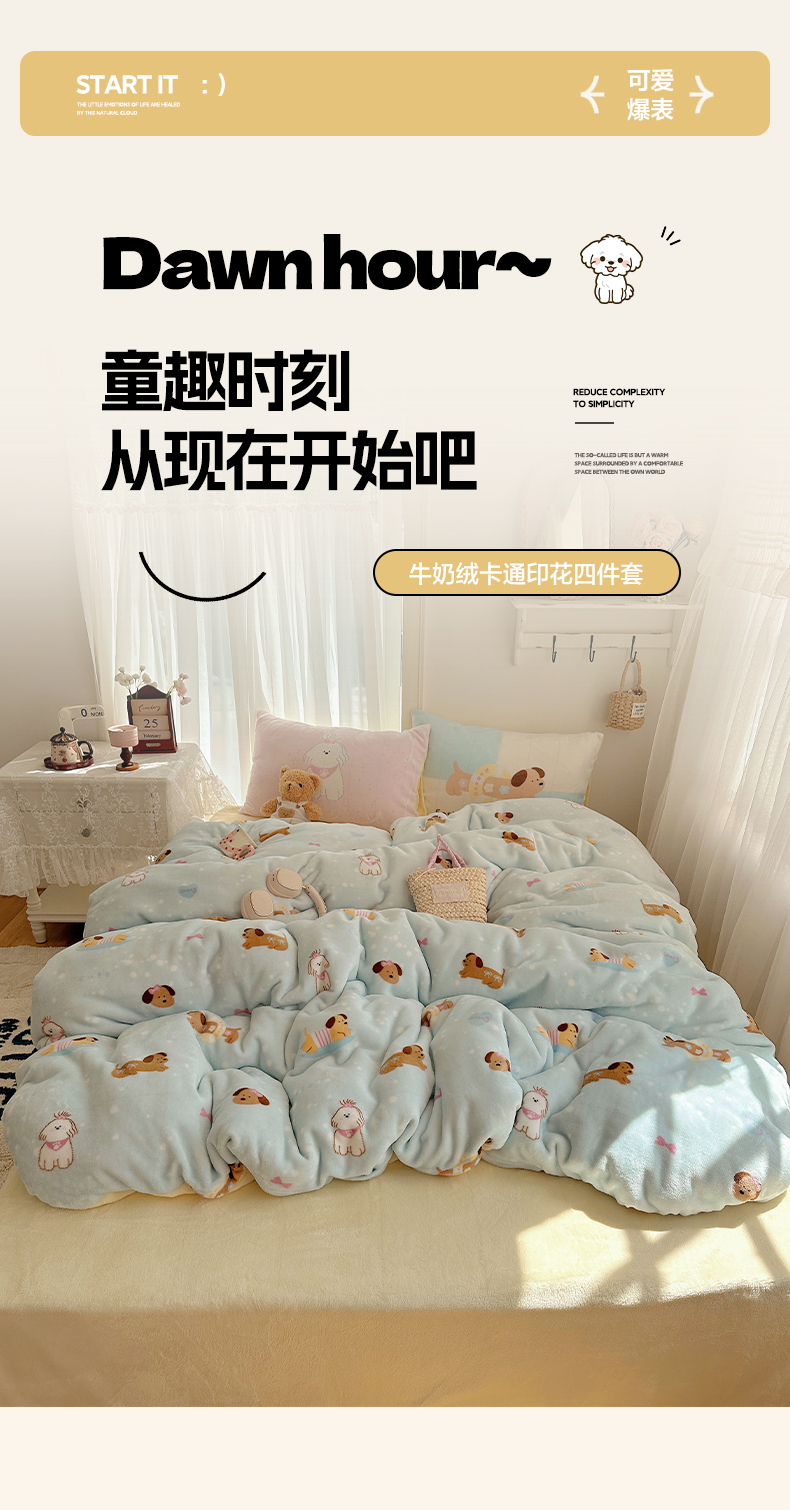 (总)美乐迪家纺 2025秋冬新款牛奶绒四件套,香肠狗,茶画熊,烘培熊,黄油小狗,蓝色小狗,洛丽塔小猫,猫咪日记,墨点小狗,拼接小狗,圣诞狗狗,甜品小兔,甜心派对,头套小兔,小猫的家,许愿小狗