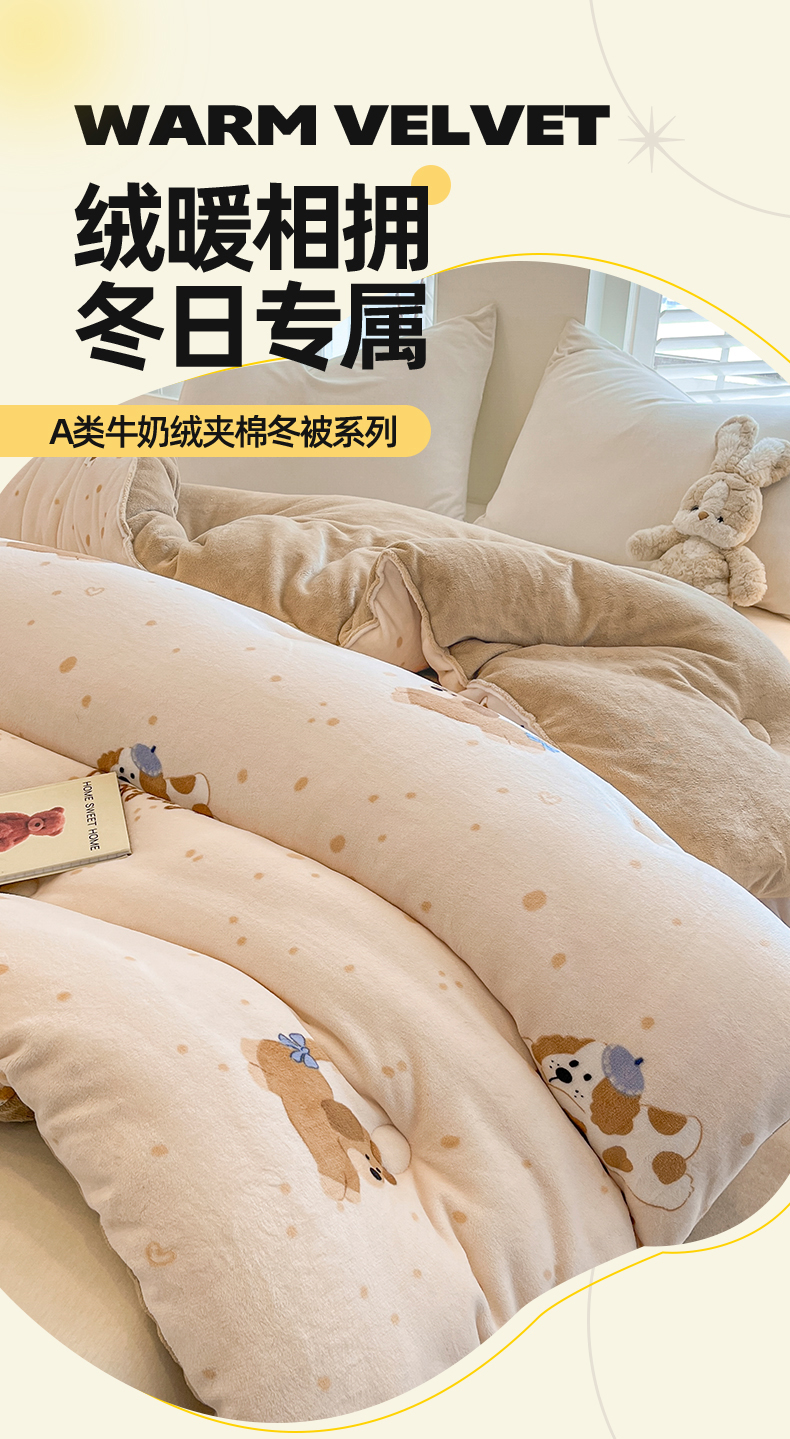 商品名称:换种生活 2025新款A类牛奶绒夹棉冬被被子被芯 欢乐小狗
