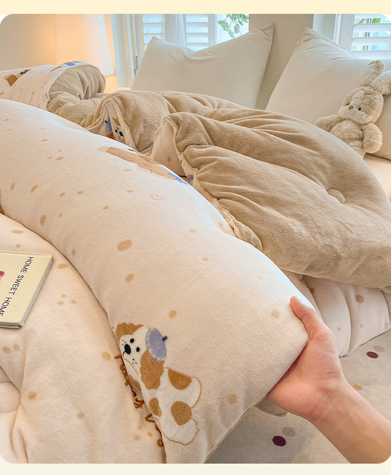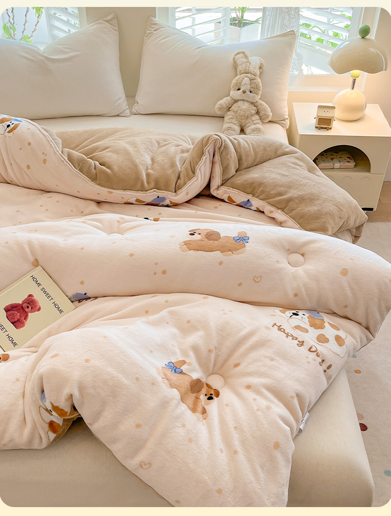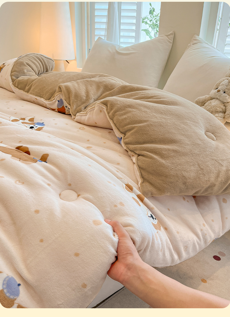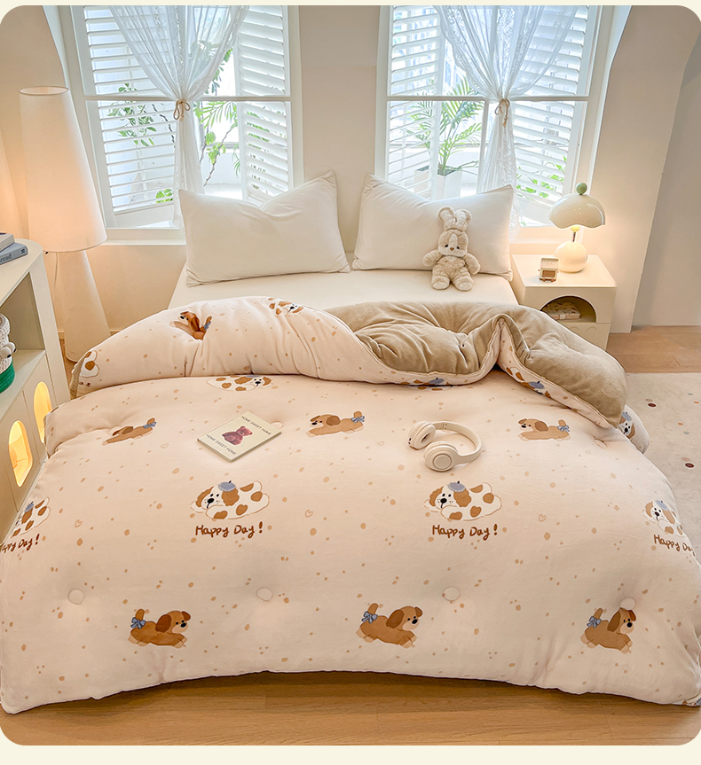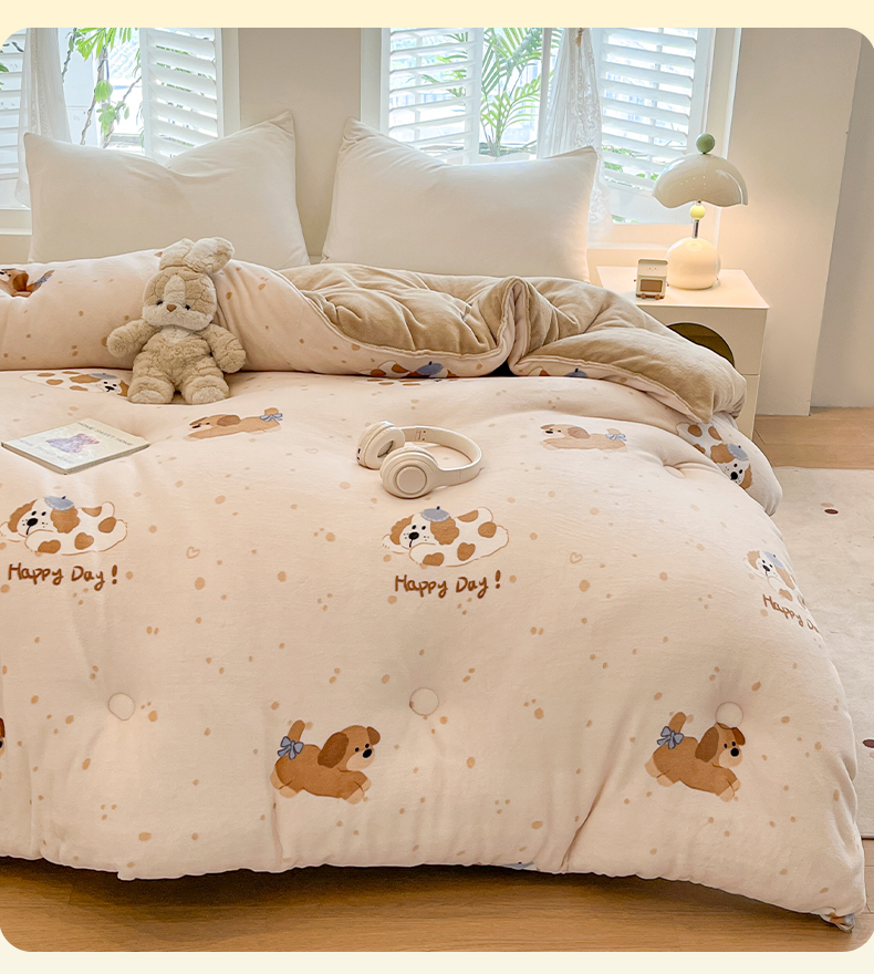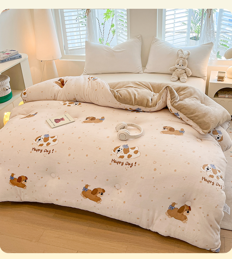 换种生活 2025新款A类牛奶绒夹棉冬被被子被芯 欢乐小狗
