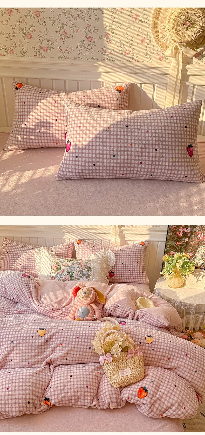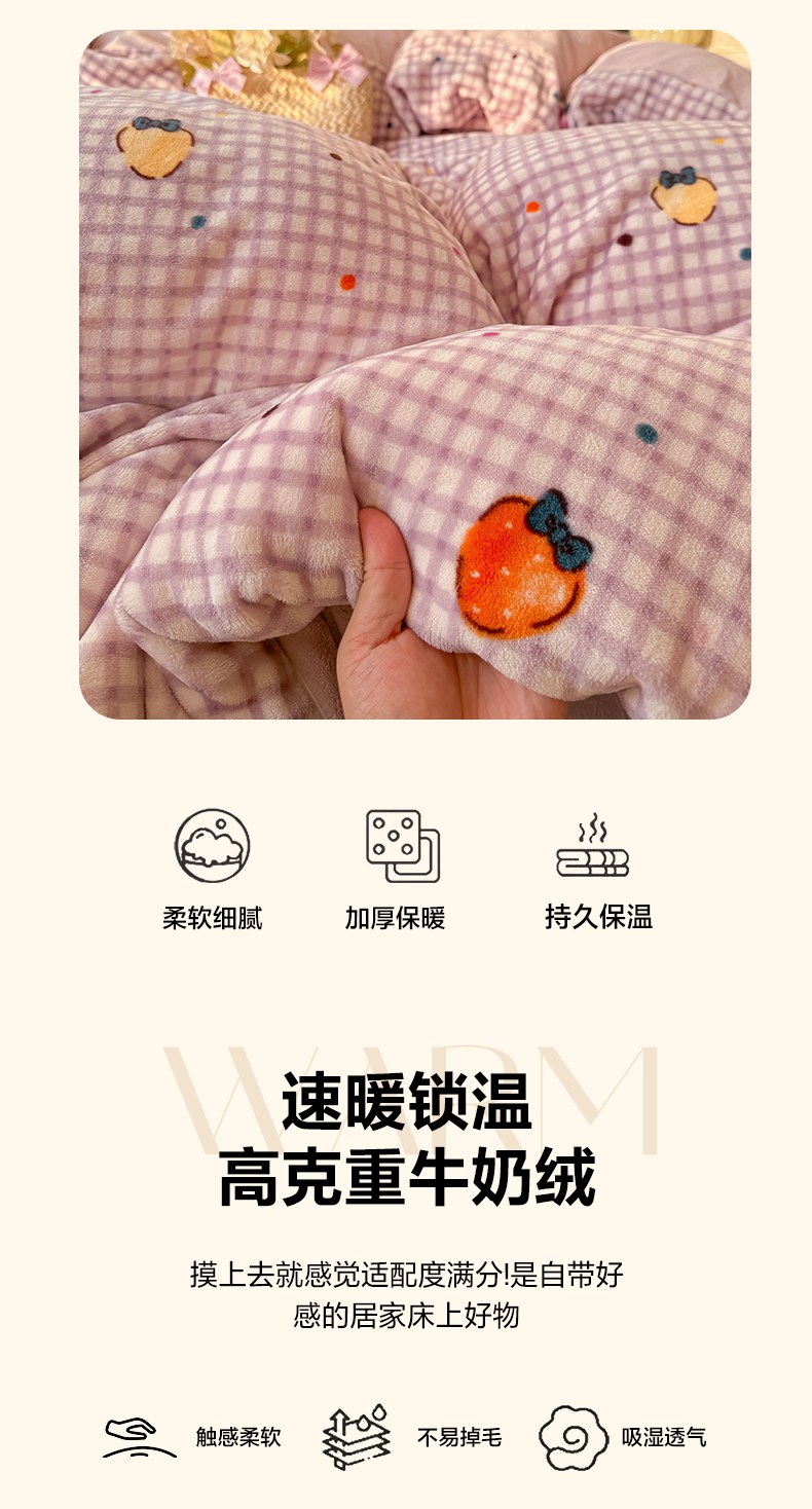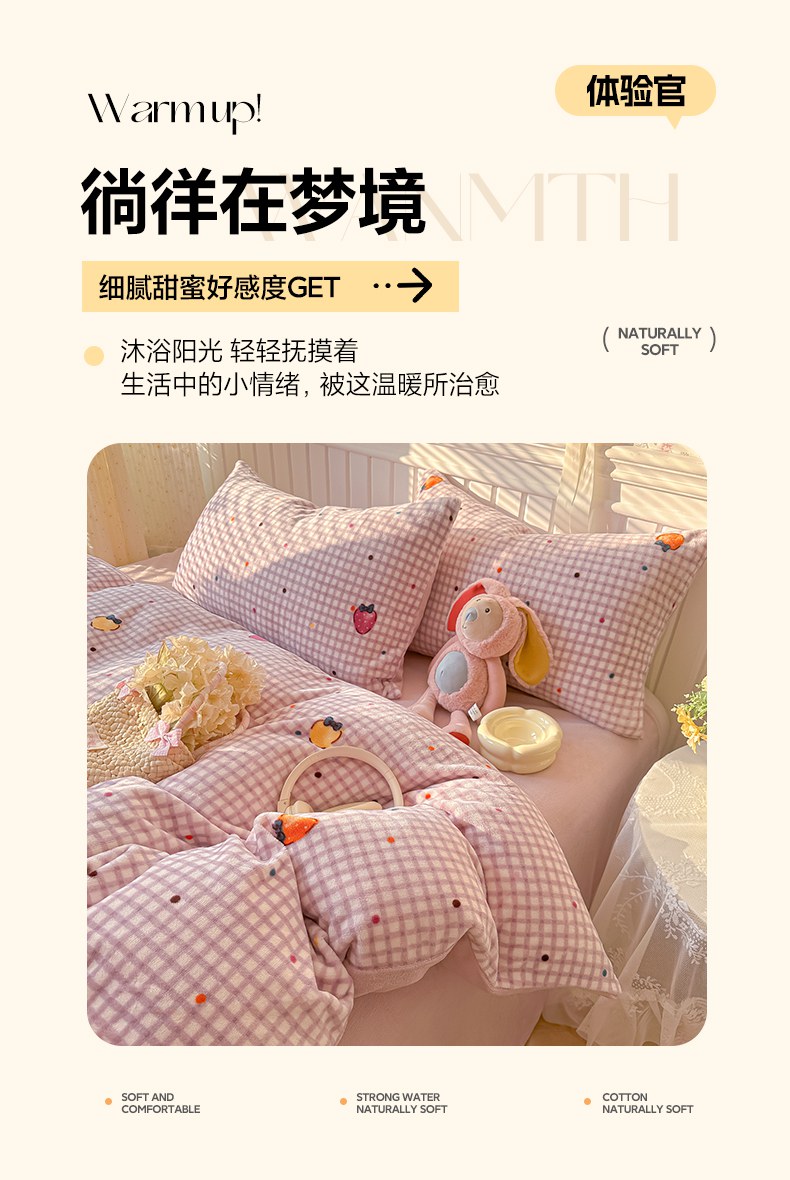 当前位置: 91家纺网 > 商品网购 > 床品套件 > 四件套 > 牛奶绒四件套 > 韩巢家纺 2025新款高克重印花牛奶绒床品四件套 彩色草莓