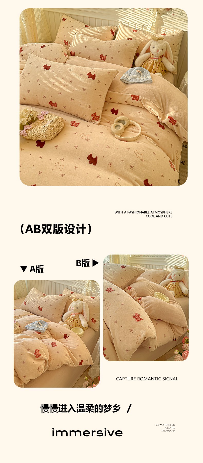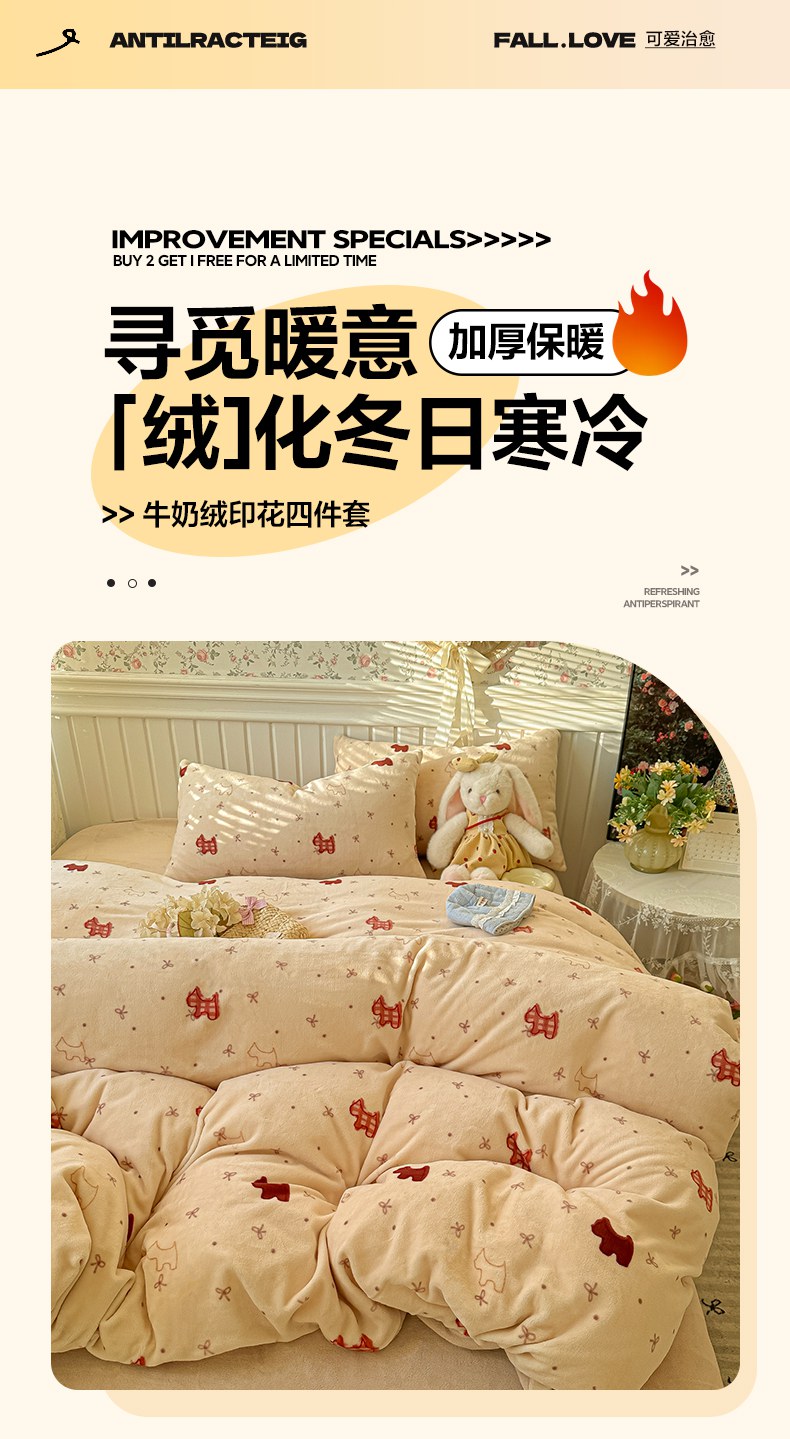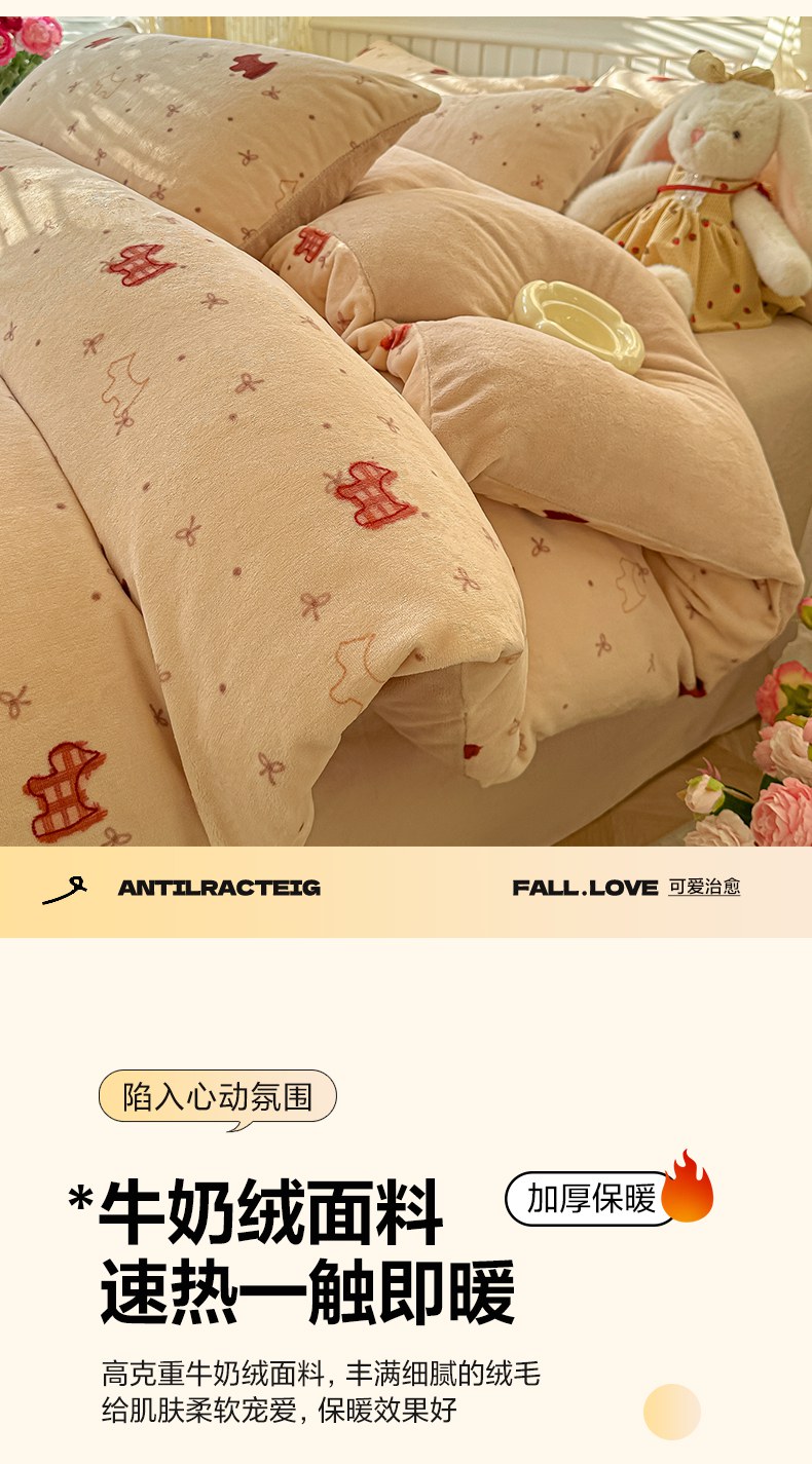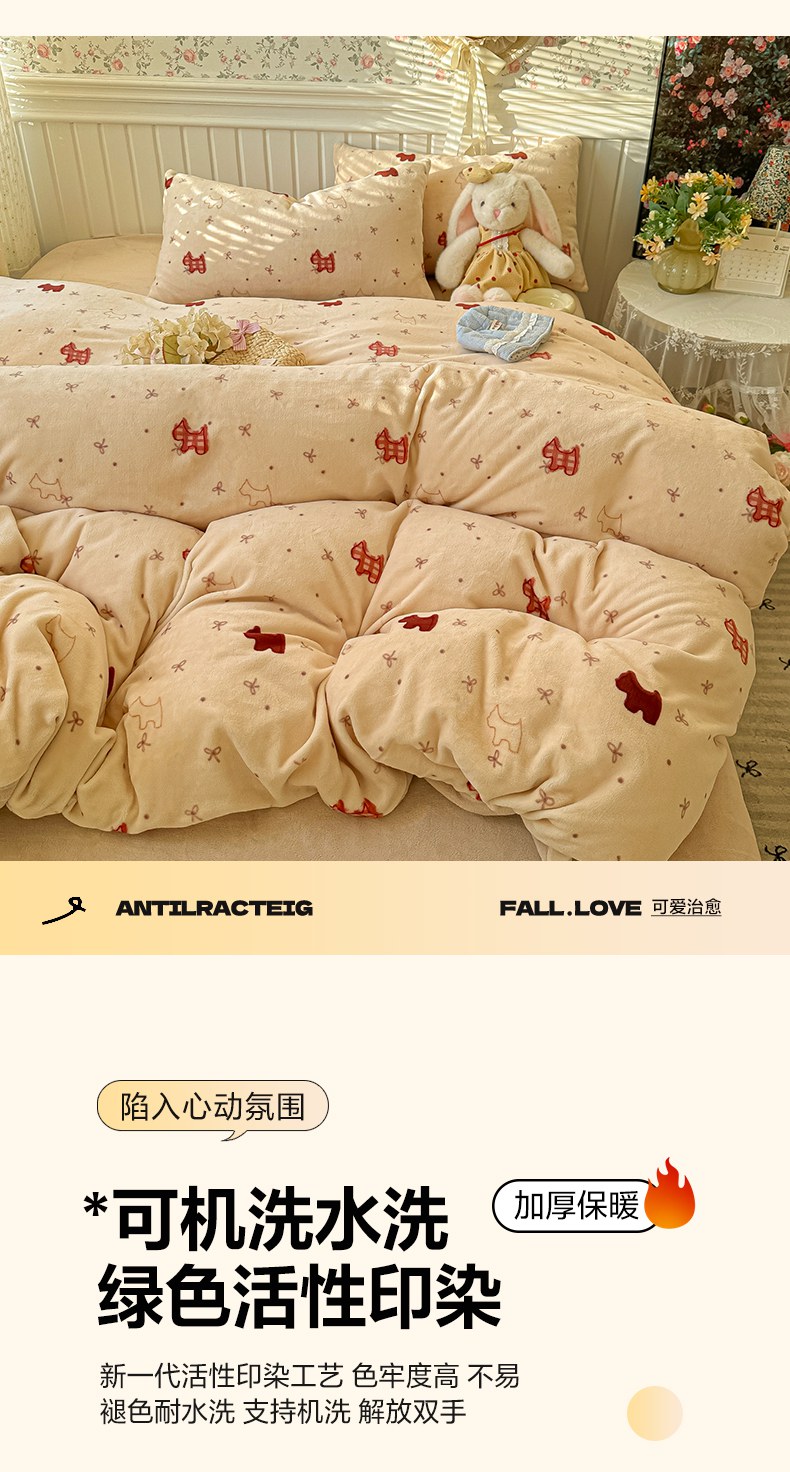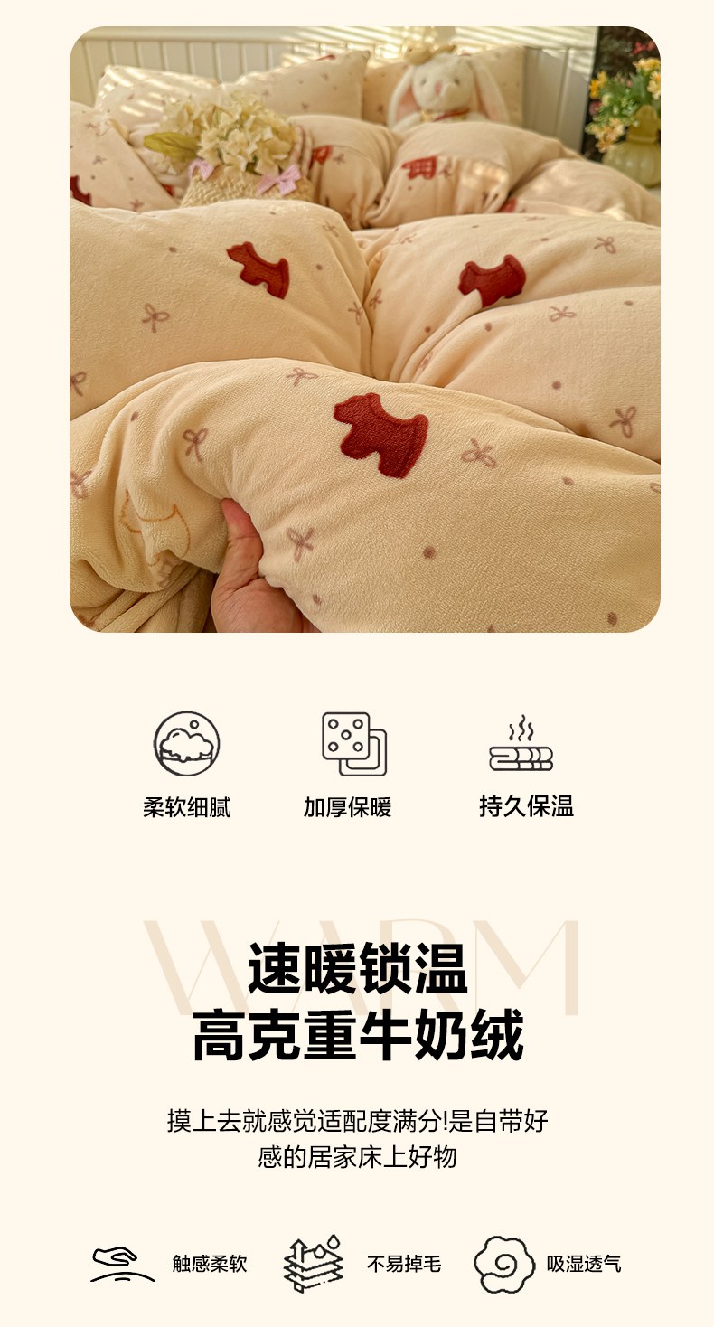 当前位置: 91家纺网 > 商品网购 > 床品套件 > 四件套 > 牛奶绒四件套 > 韩巢家纺 2025新款高克重印花牛奶绒床品四件套 奶油小狗