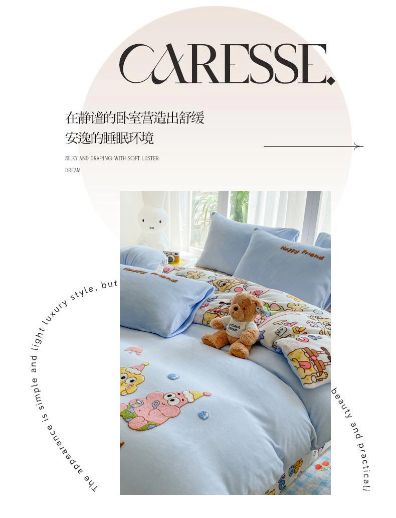 (总)茉礼 2025新款A类卡通加厚毛巾绣牛奶绒四件套,布偶猫,粉格kt,柠檬狗,蓝格kt