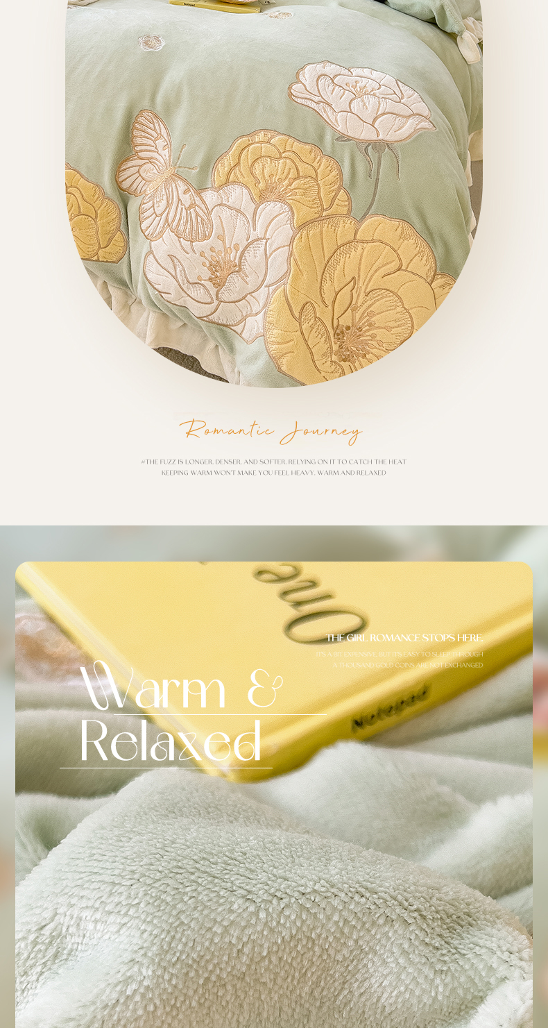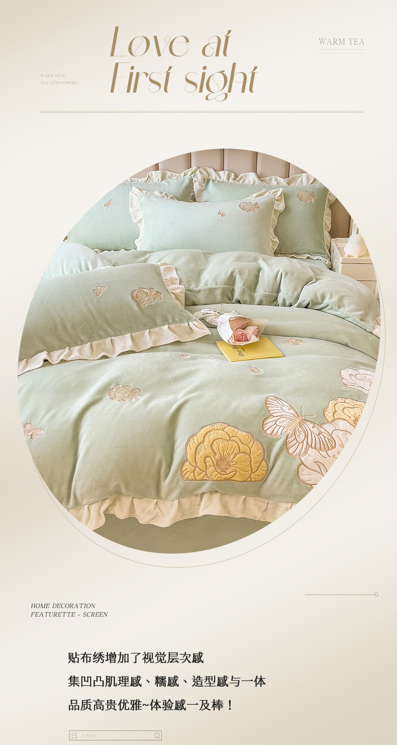 曲之慕 2025新款韩版牛奶绒花朵贴布绣四件套 花韵-抹茶绿
