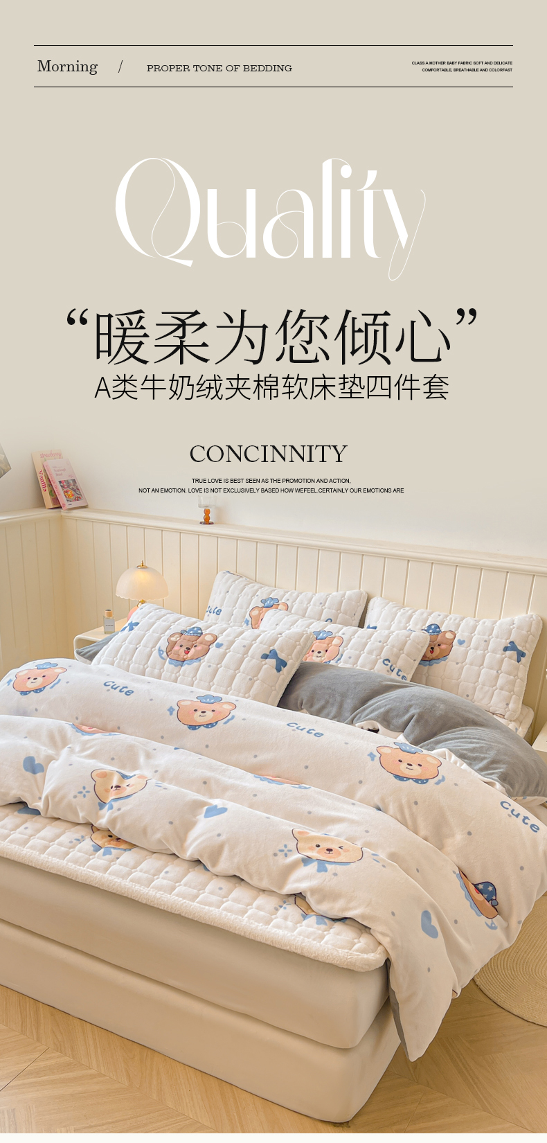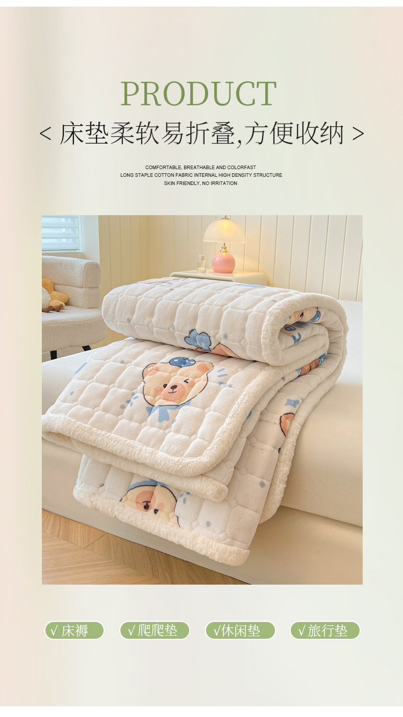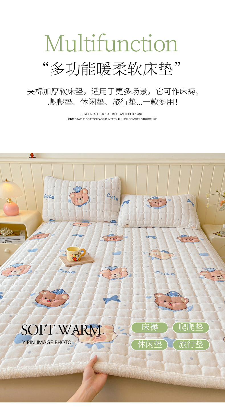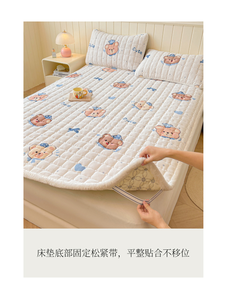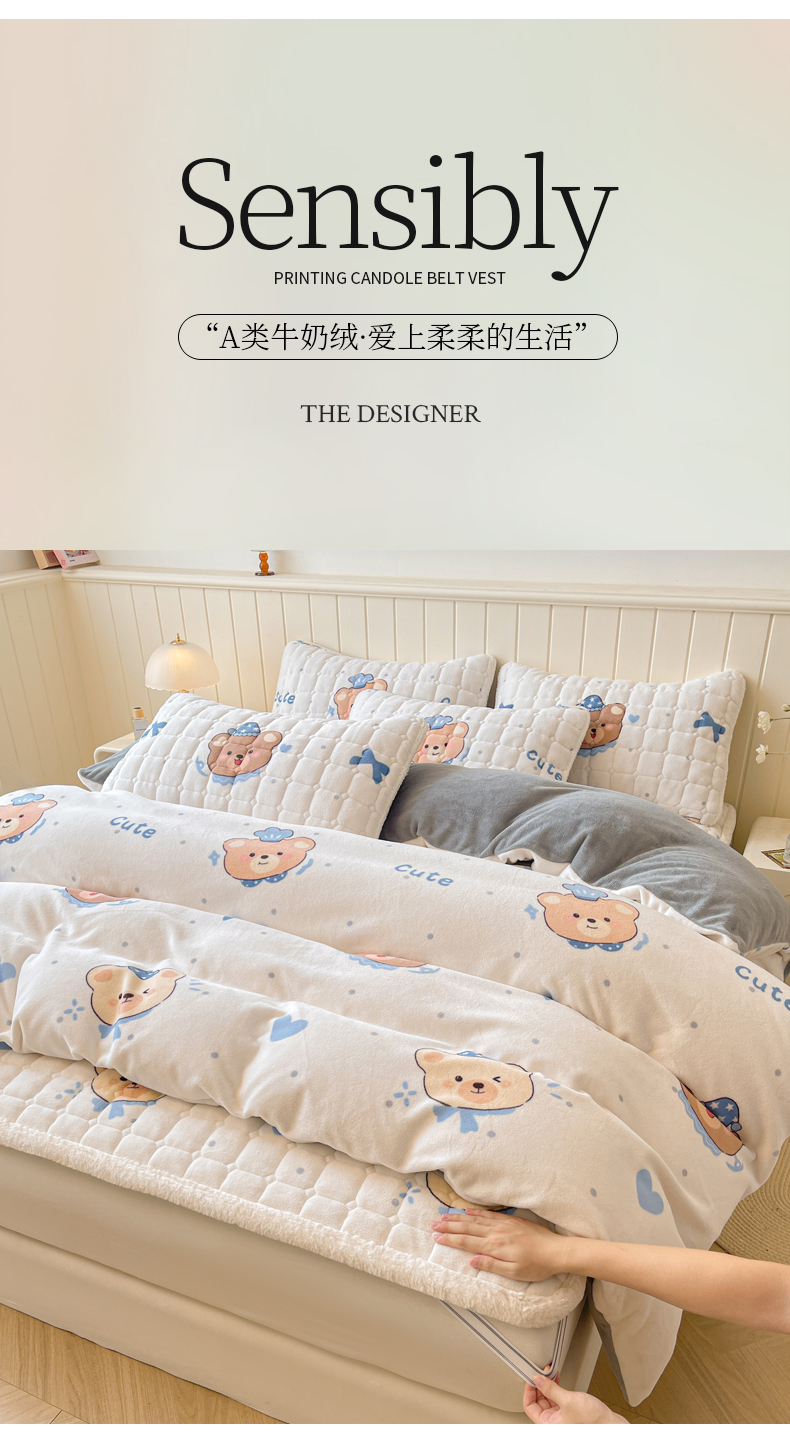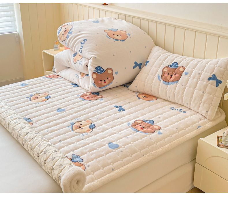 商品名称:LIFE.丽芙 2025秋冬新款A类牛奶绒加厚夹棉床褥垫+被套组合四件套 动感小熊