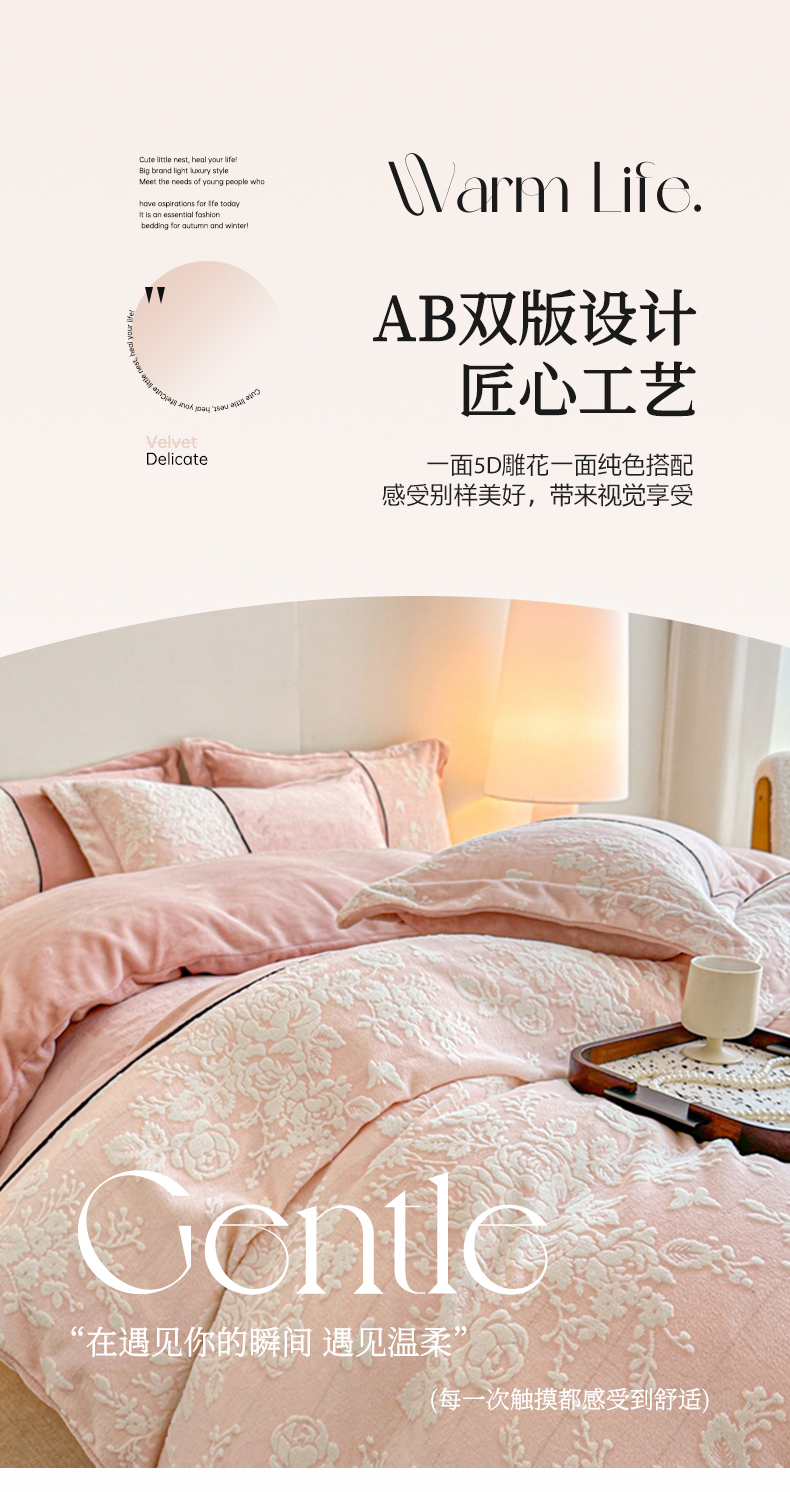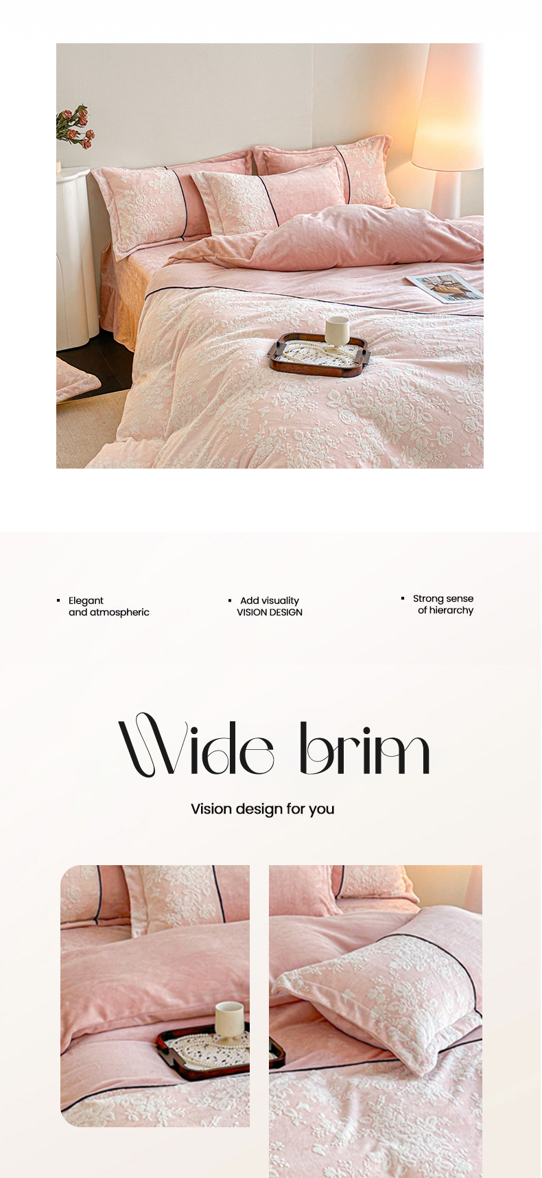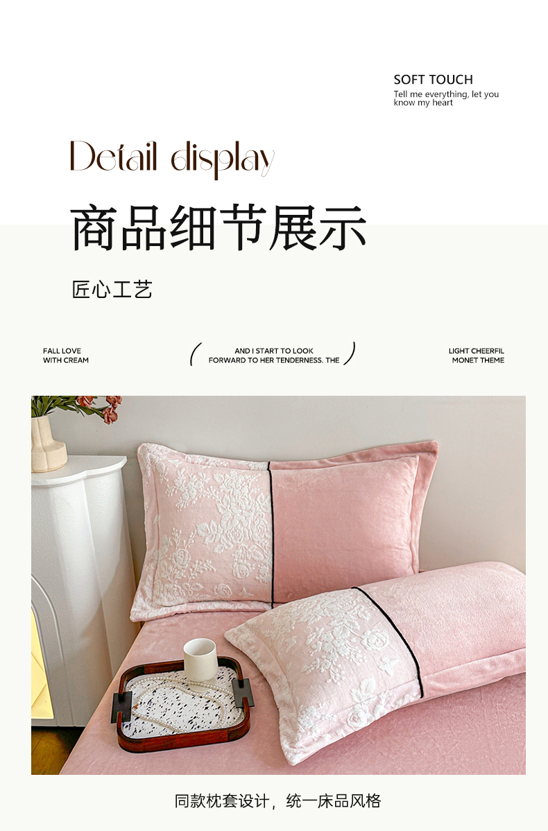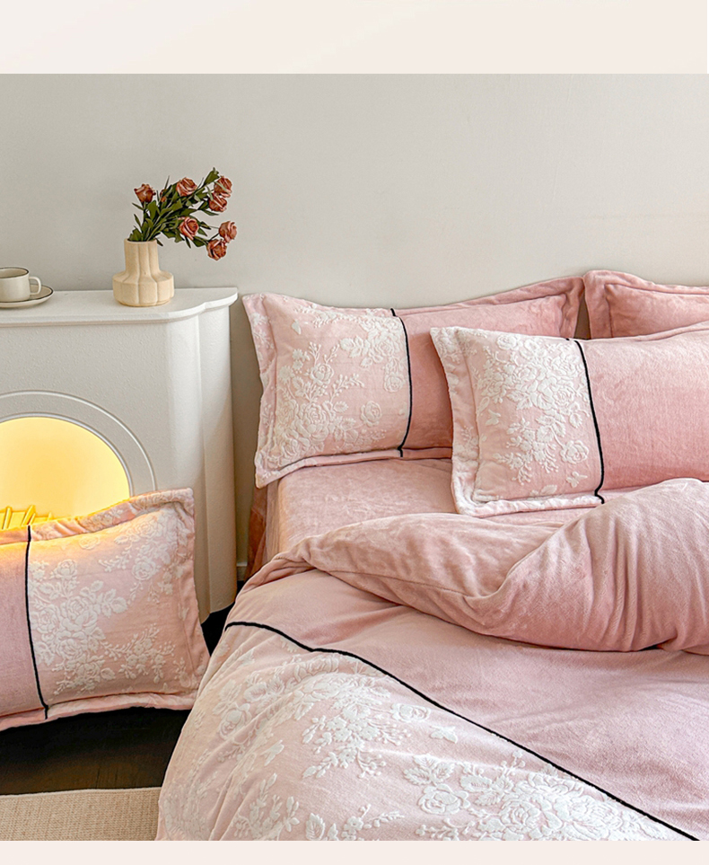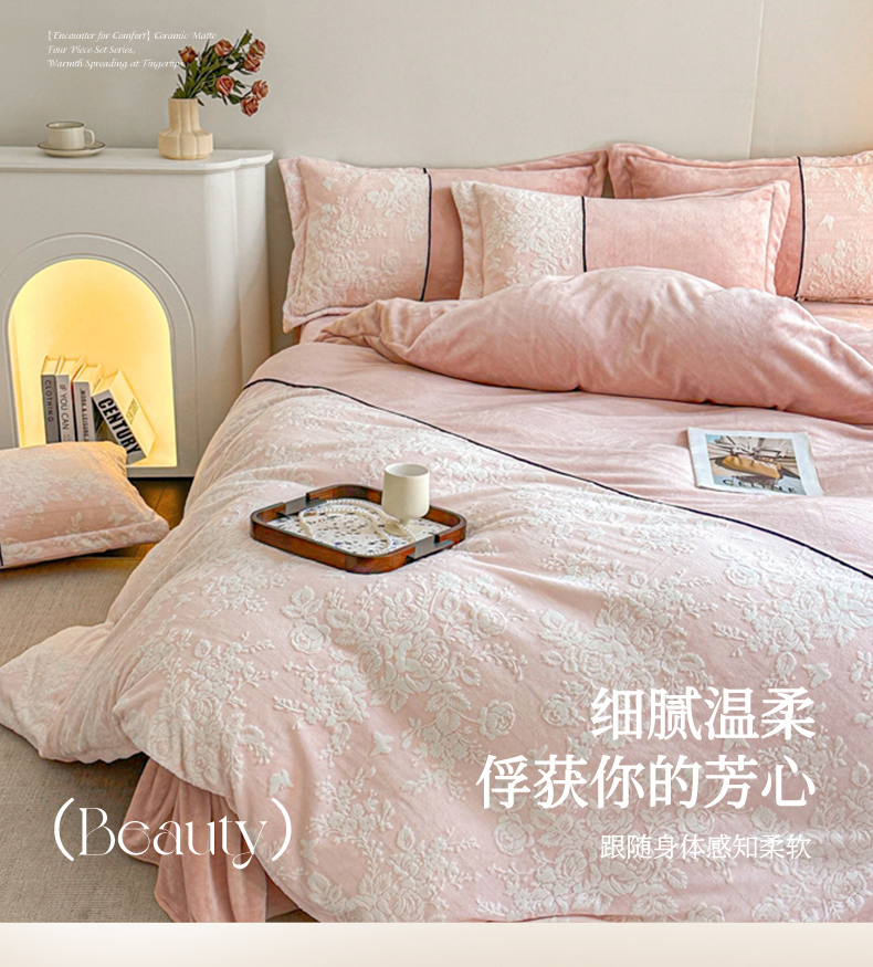 诺梵家纺 2025新款拼接雕花牛奶绒四件套 邂逅-粉