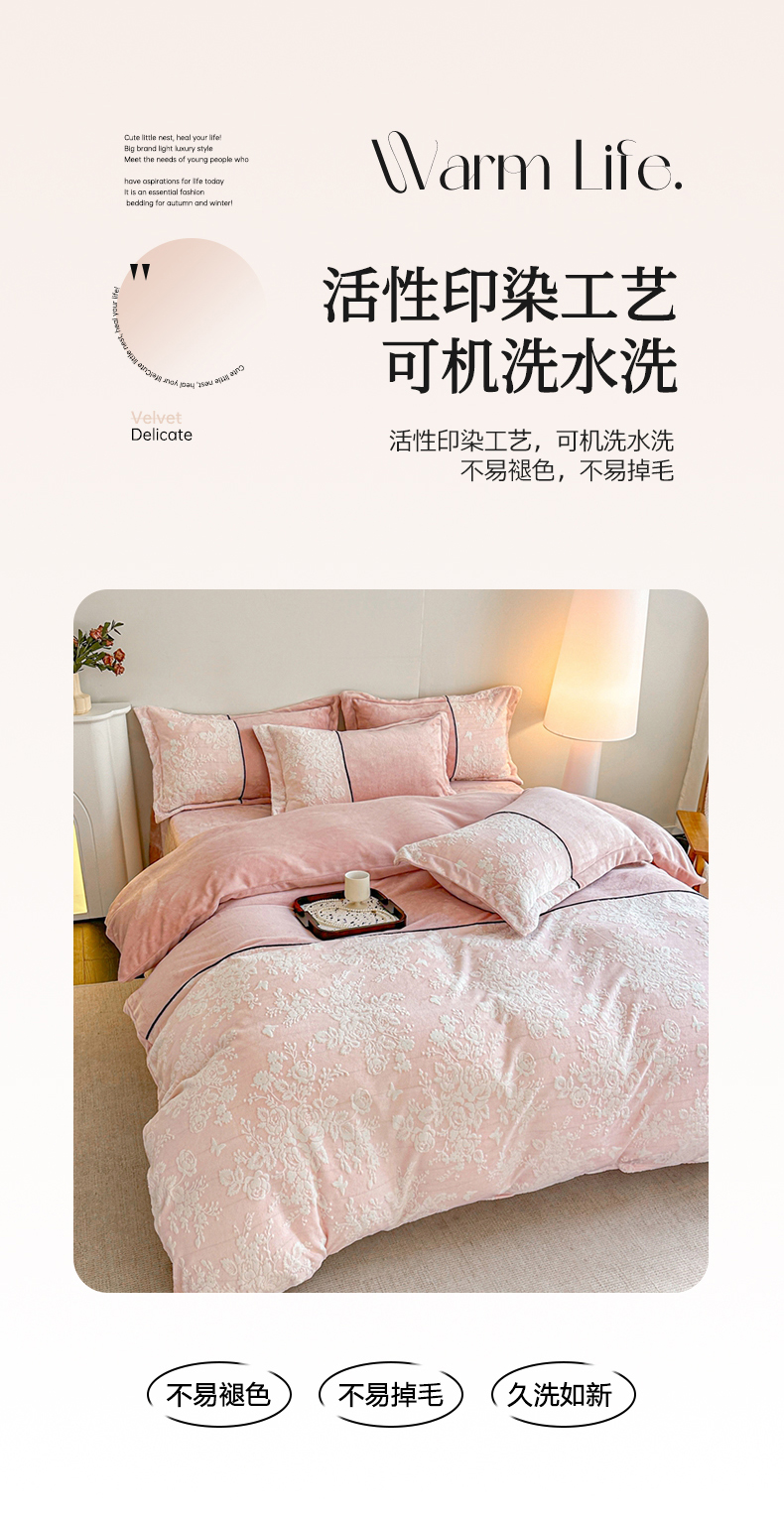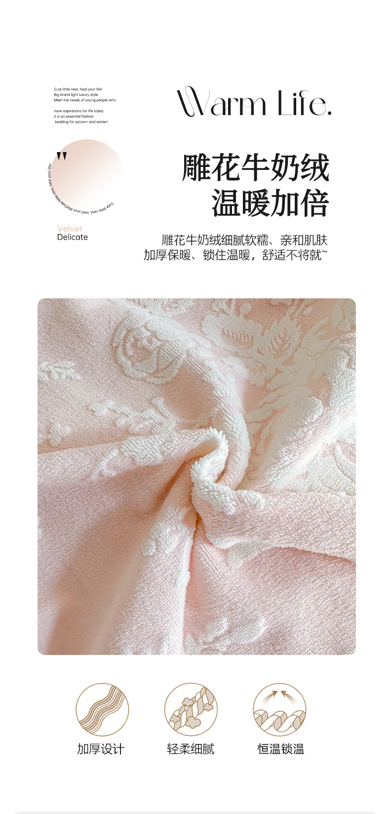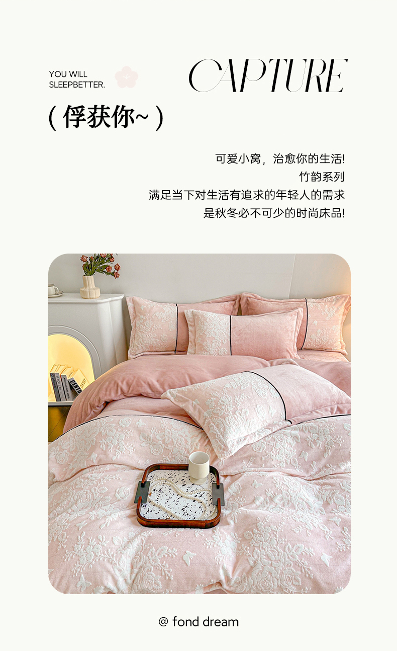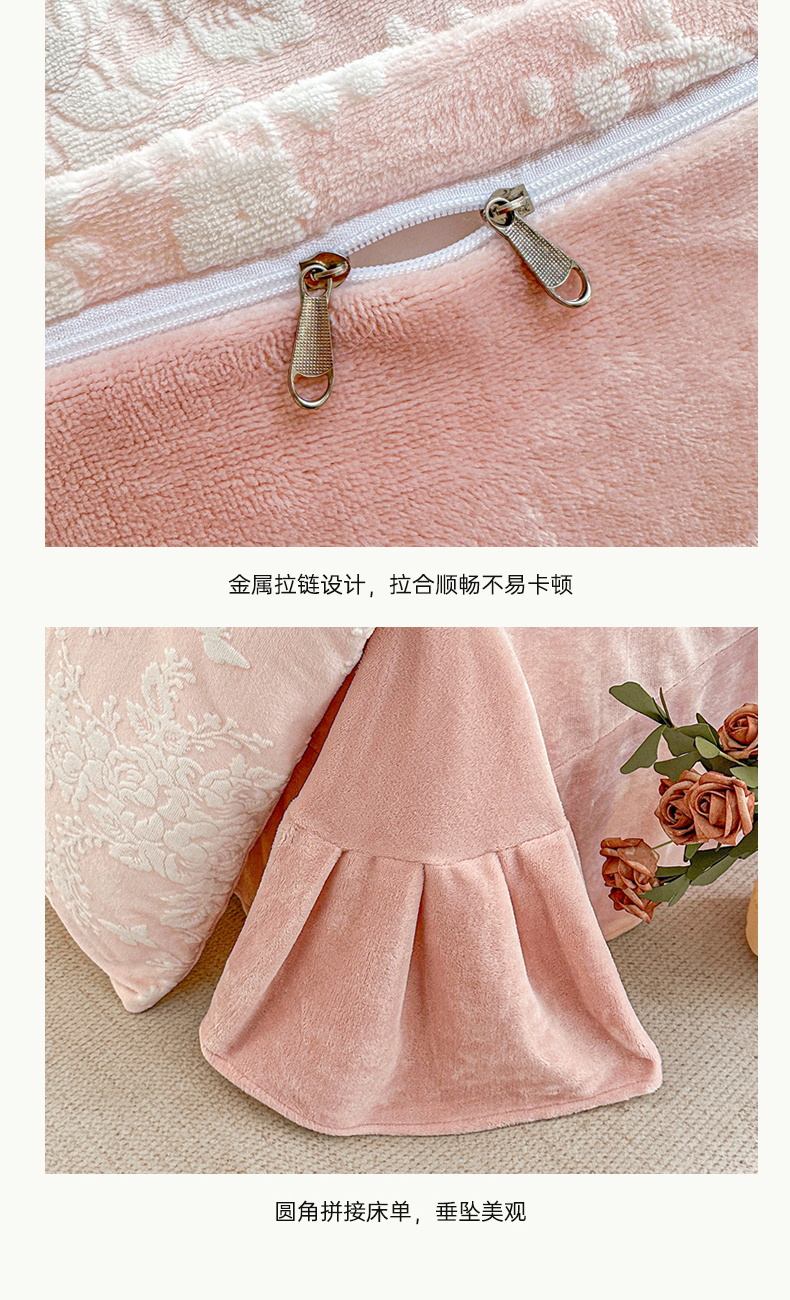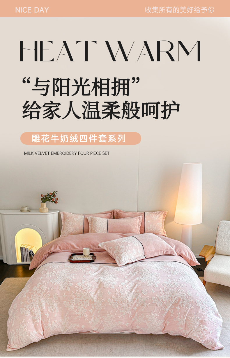 诺梵家纺 2025新款拼接雕花牛奶绒四件套 邂逅-粉
