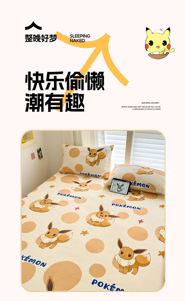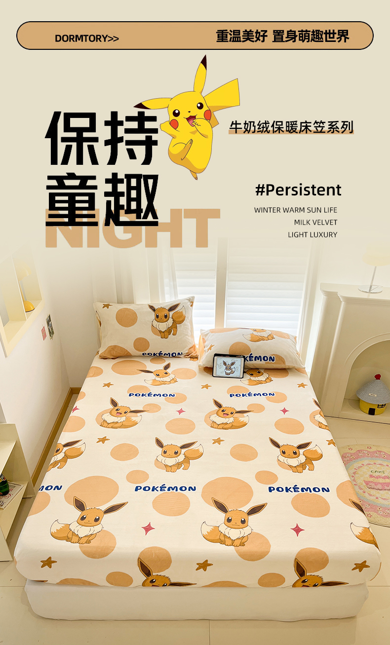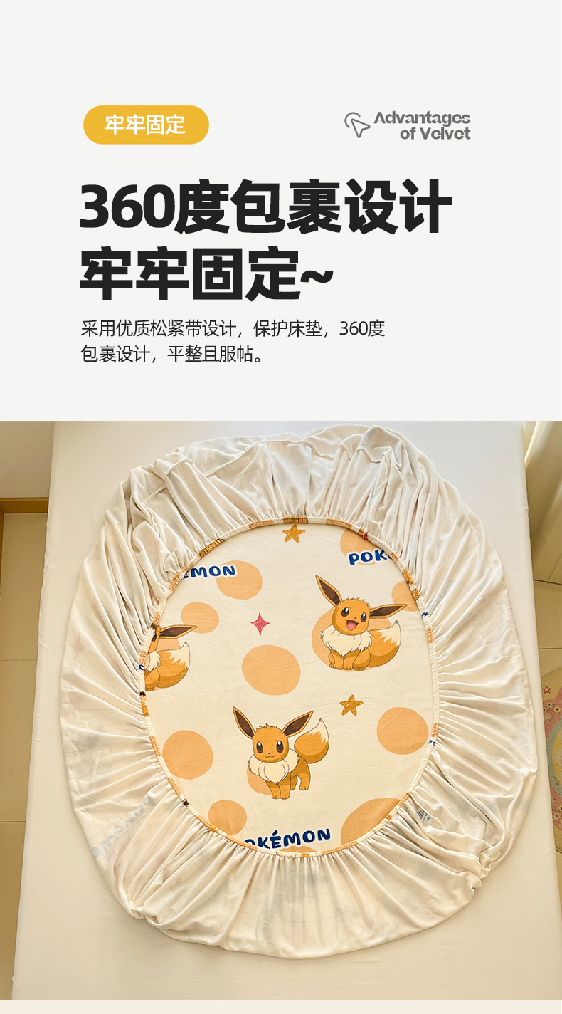 金爱家 2025新款牛奶绒保暖床笠床笠单件单床笠 绒单品-泡泡伊布